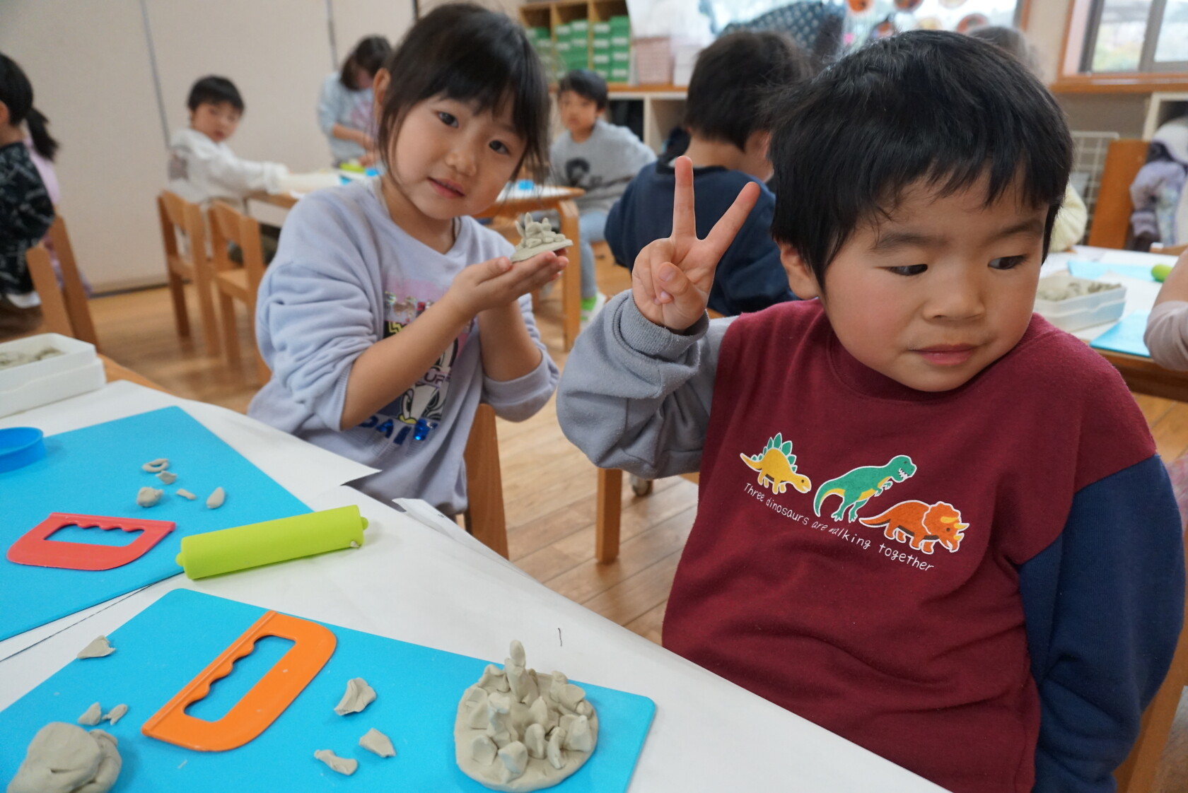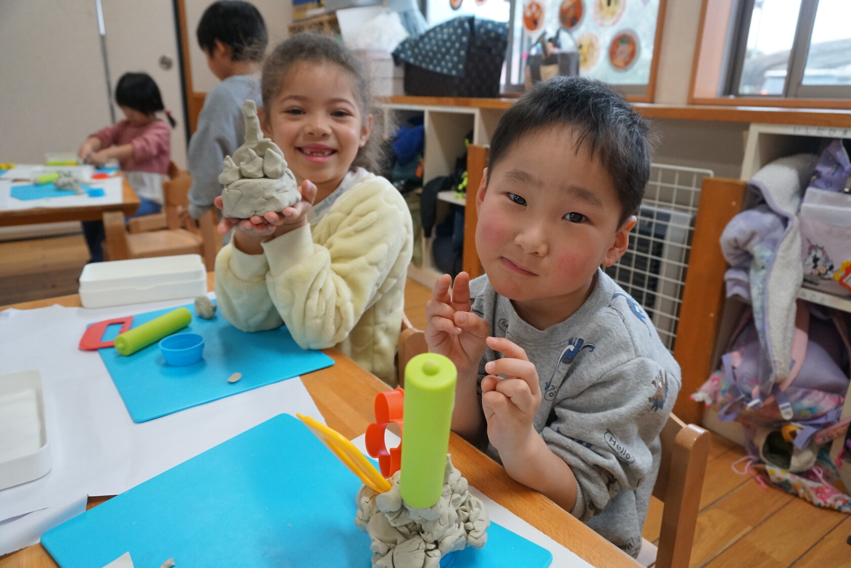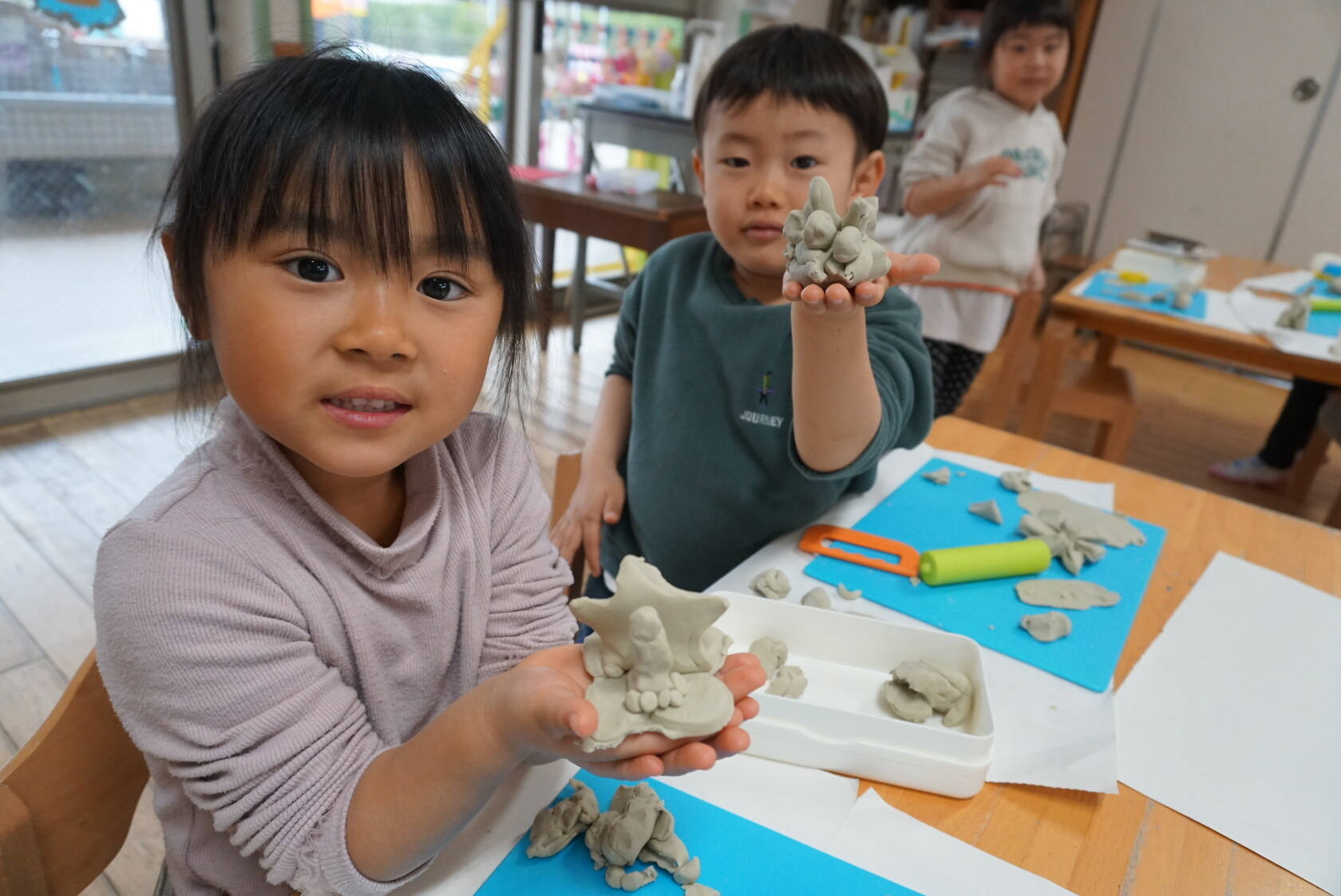 今日のできごと(ゆり) 公開済み: 2024年2月19日更新: 2024年2月19日 今日は、粘土遊びをしました。立体的な物を作れるようになり、思い思いの物を作っていました。 そして、みんなで志村先生のお誕生日をお祝いして、それぞれケーキを作りました😆✨