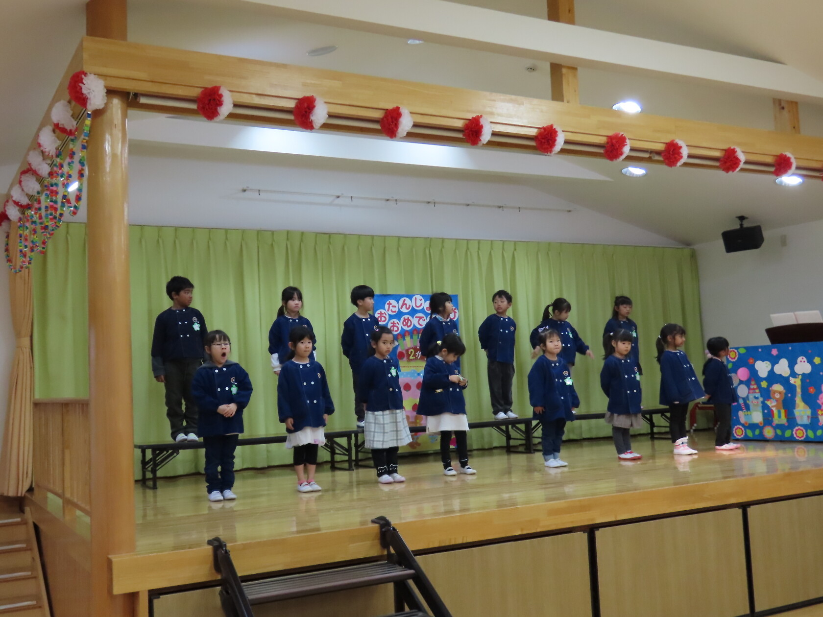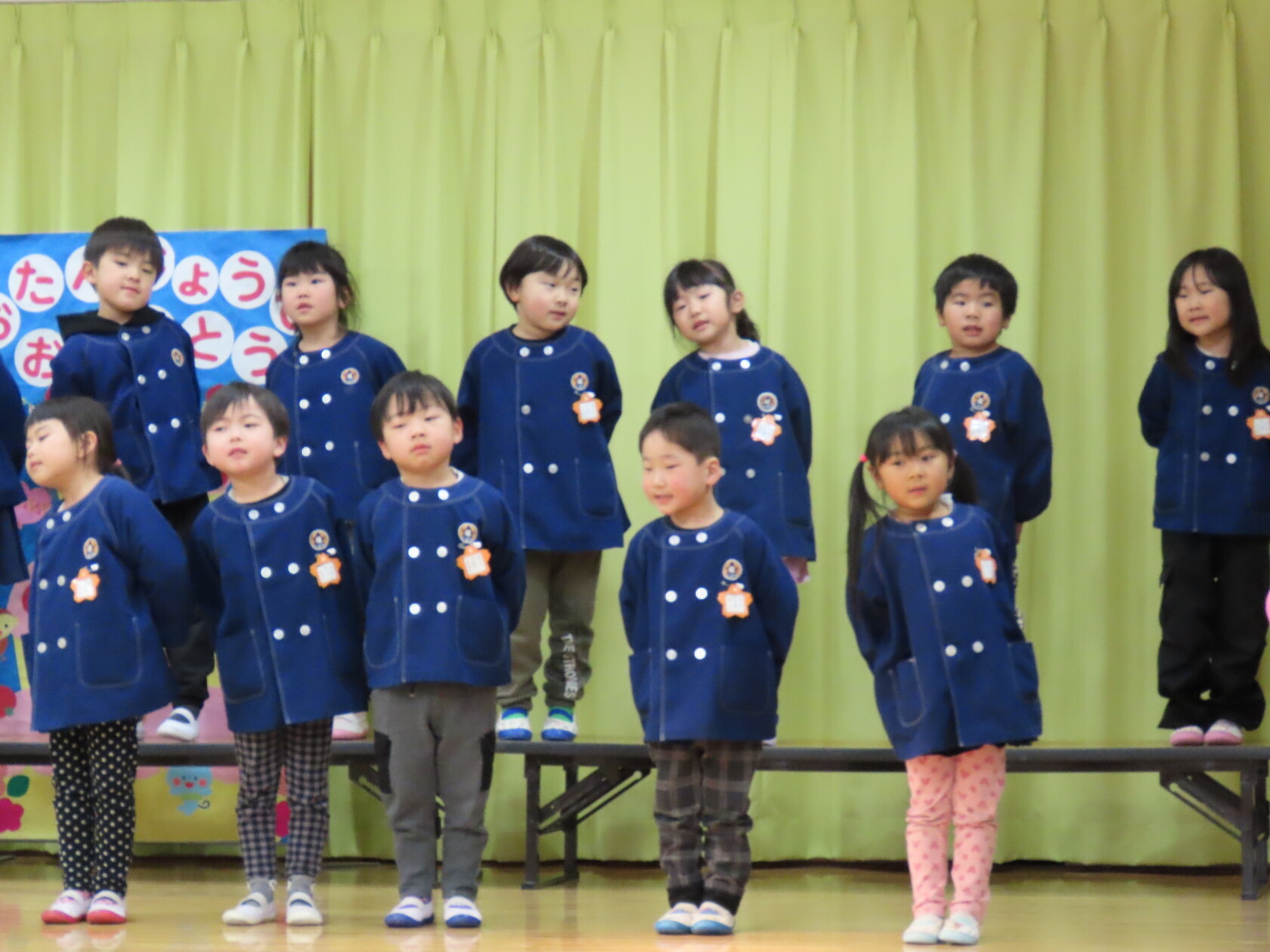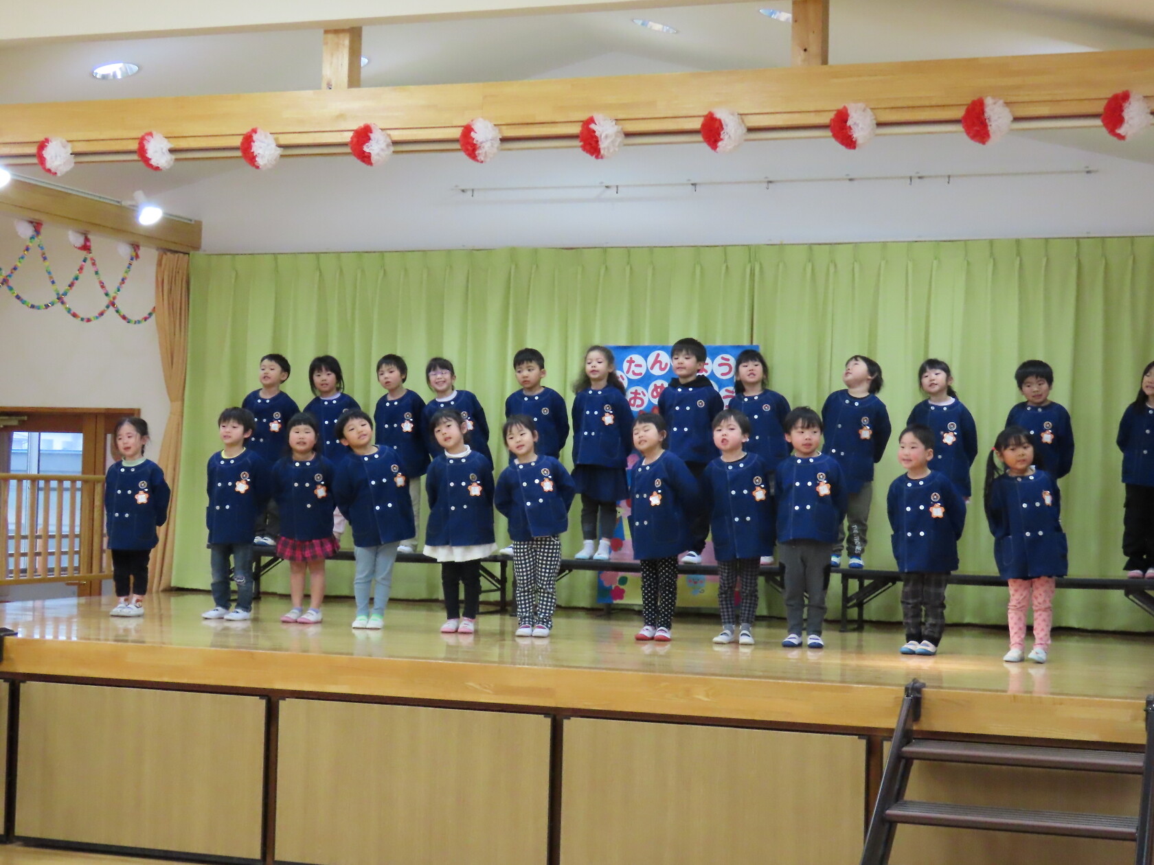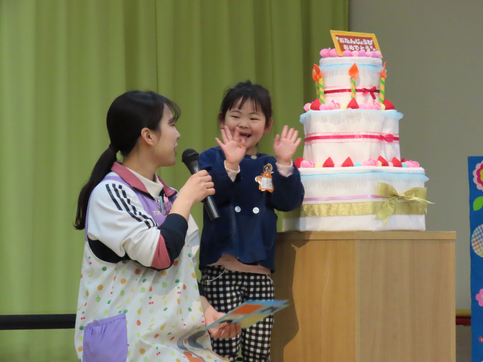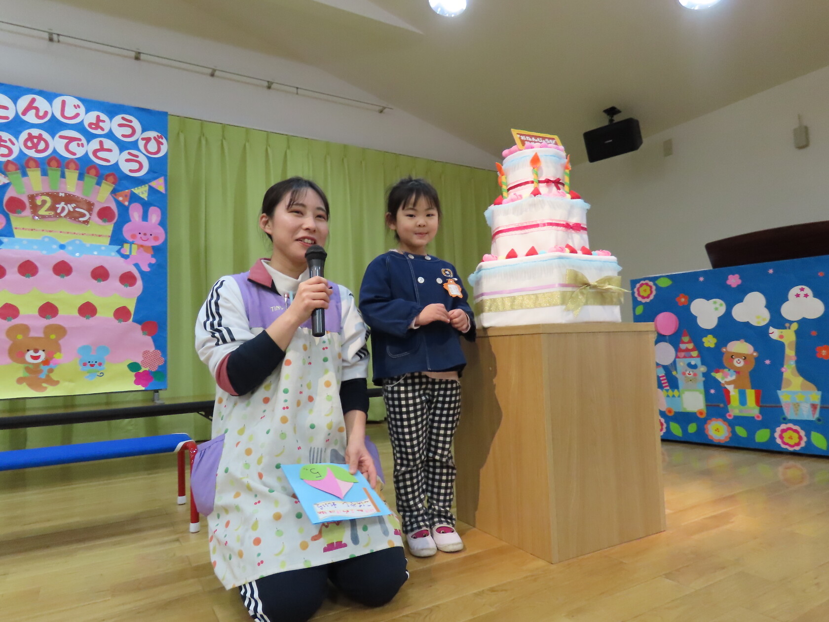お誕生会(未満児) 公開済み: 2024年2月21日更新: 2024年2月21日 今日は2月生まれのお誕生会がありました🎂 以上児はゆり組さんの女の子1人でした💕名前が呼ばれるとニコニコの笑顔で返事が出来ました!! また、お誕生カードのプレゼントでは恥ずかしながらもお名前や好きな食べ物などを言う事が出来ました✨ お歌のプレゼントでは、すみれ組「北風小僧の寒太郎」「そうだったらいいのにな」 ゆり組「ともだち讃歌」「夢わかば」ひまわり組「たいせつなたからもの」「こころねっこ」でした。 2月生まれのお友達はお誕生日おめでとうございます🎵