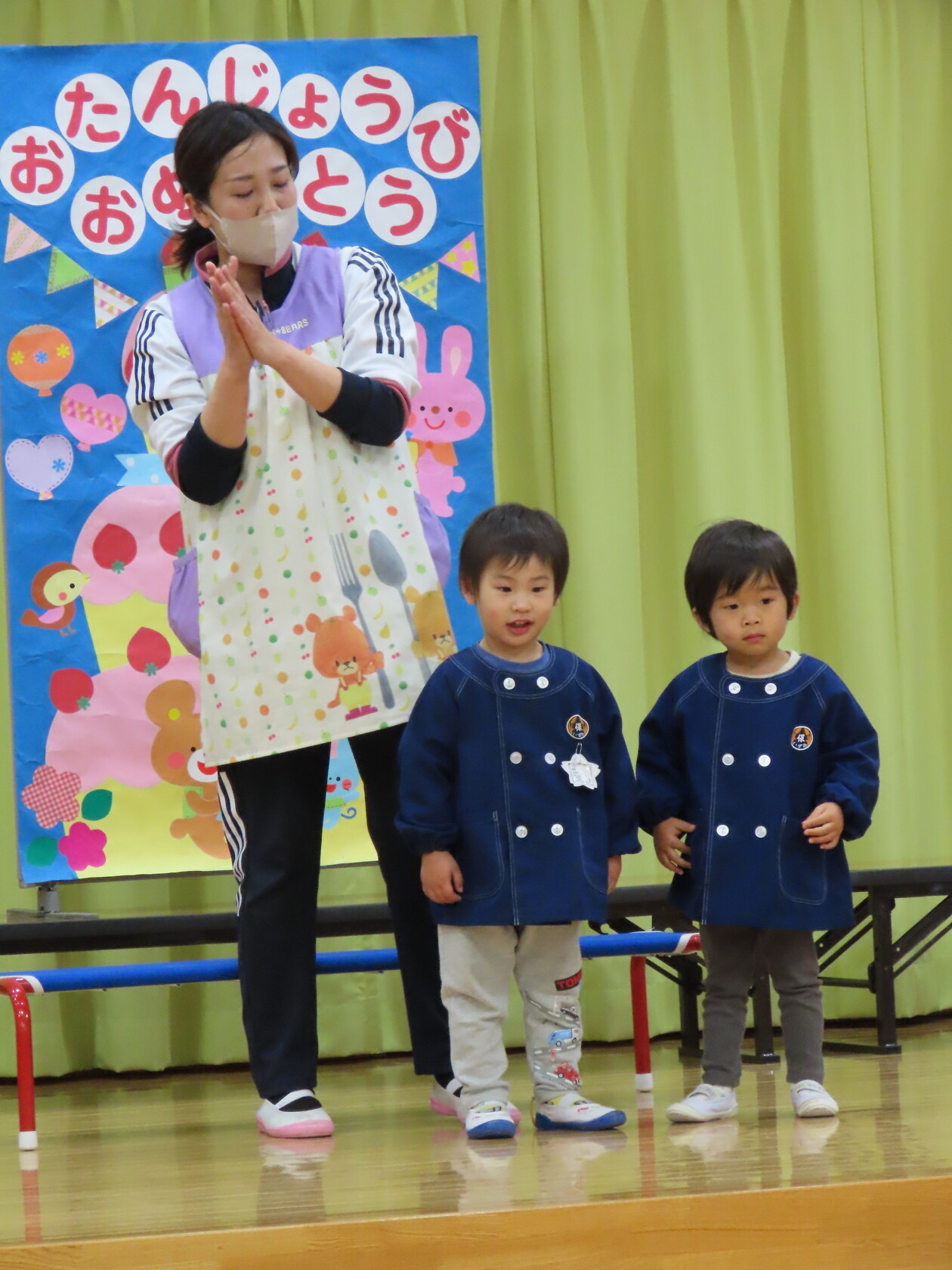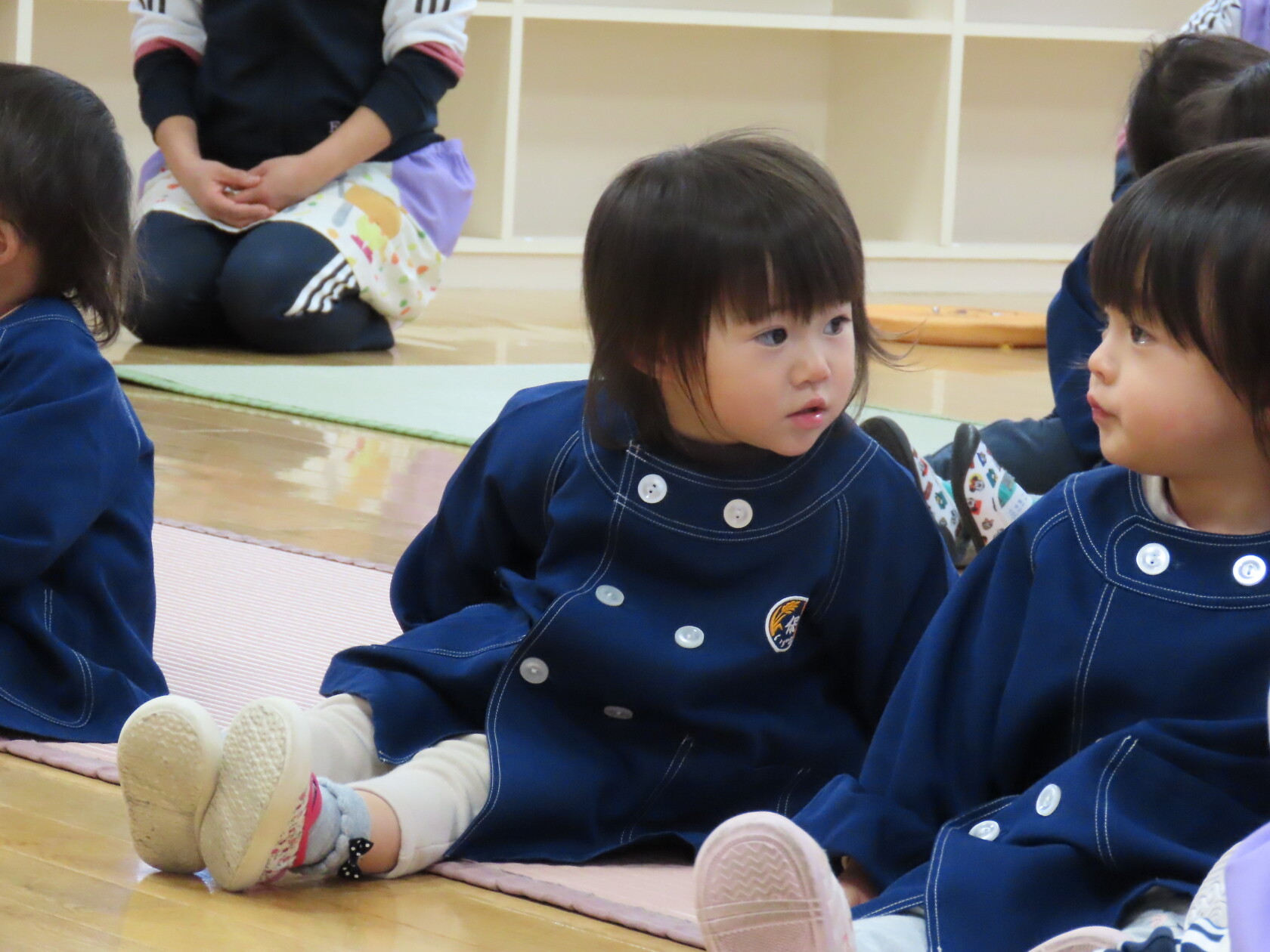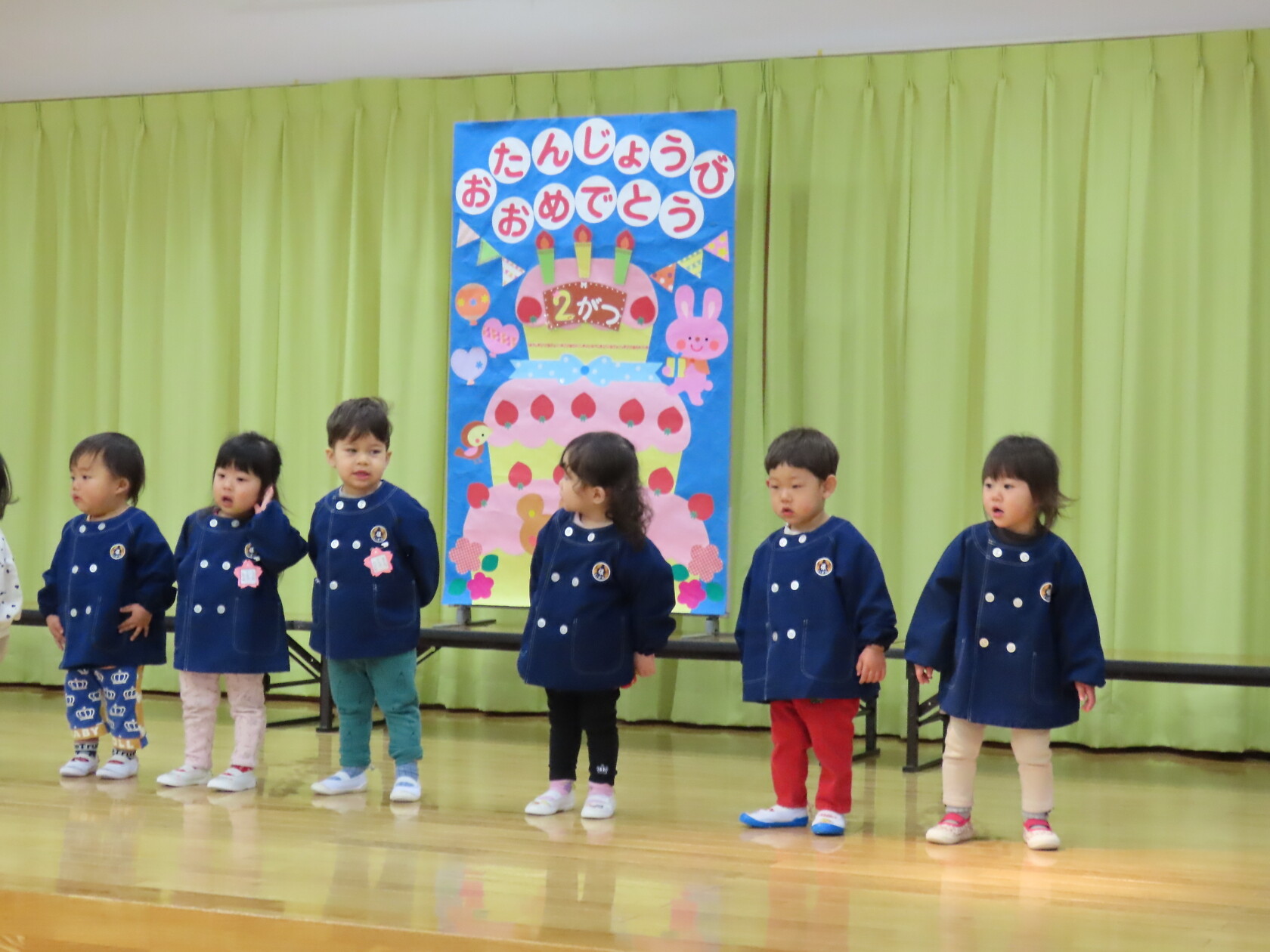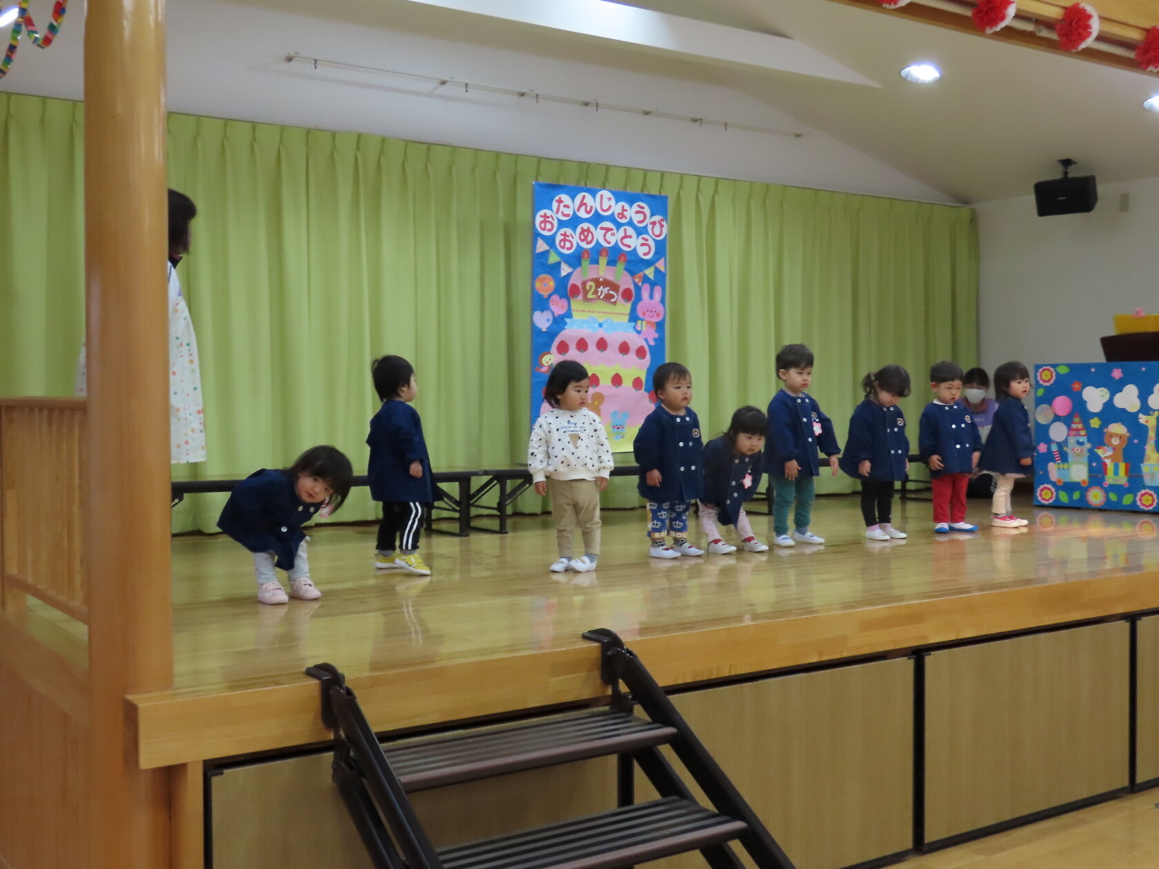 2歳児の2名のお友達は、今日のお誕生会を楽しみに待っていました。