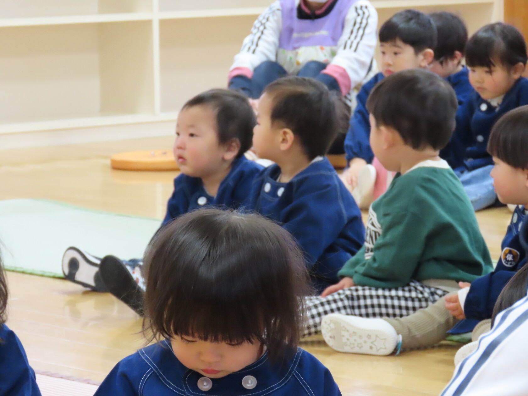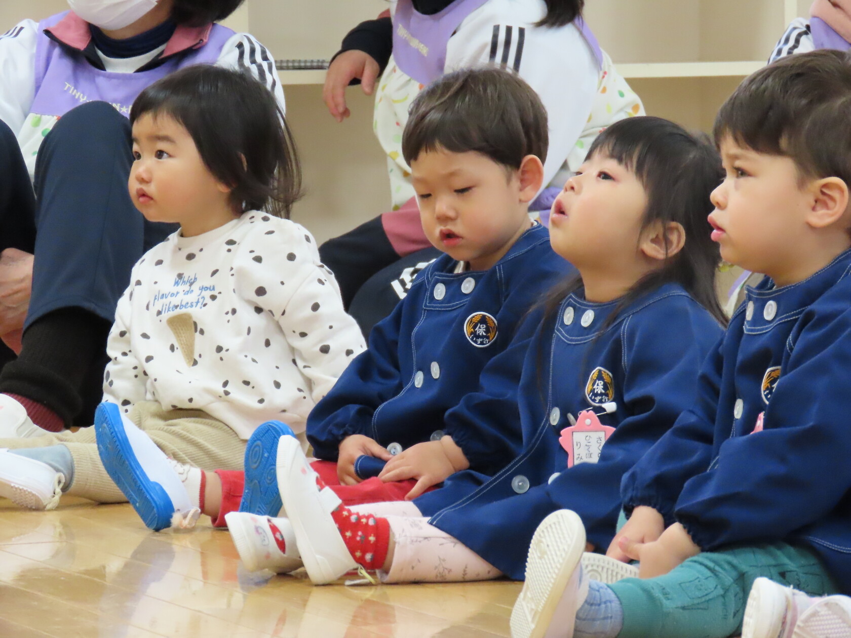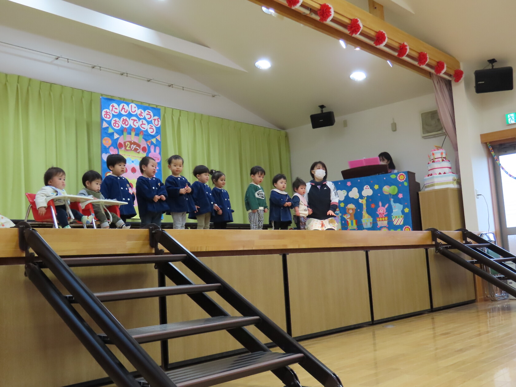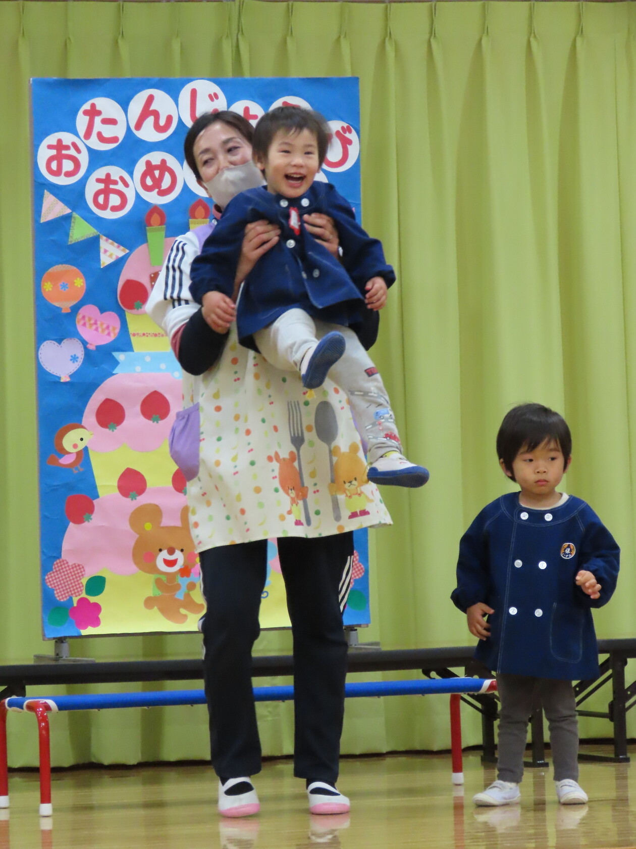 2歳児の2名のお友達は、今日のお誕生会を楽しみに待っていました。