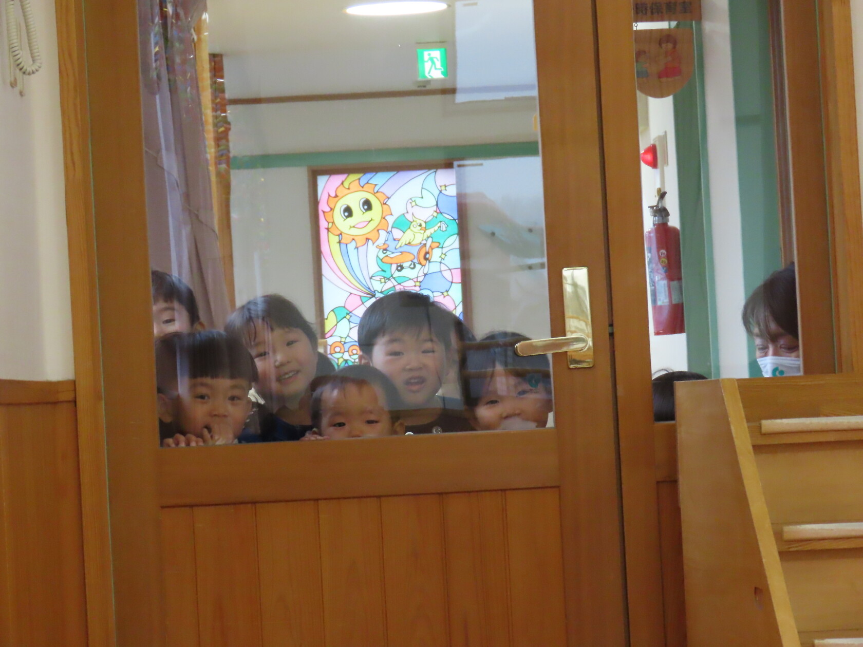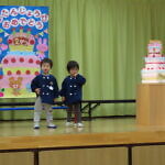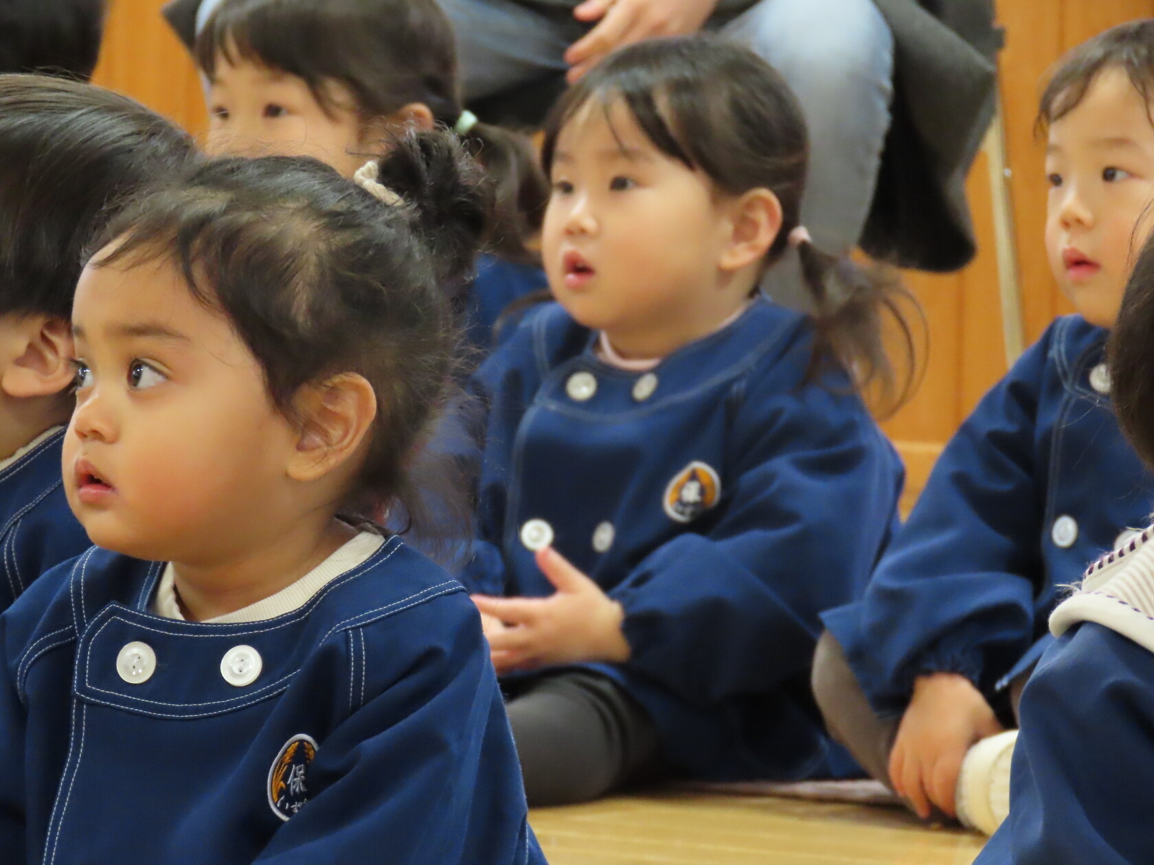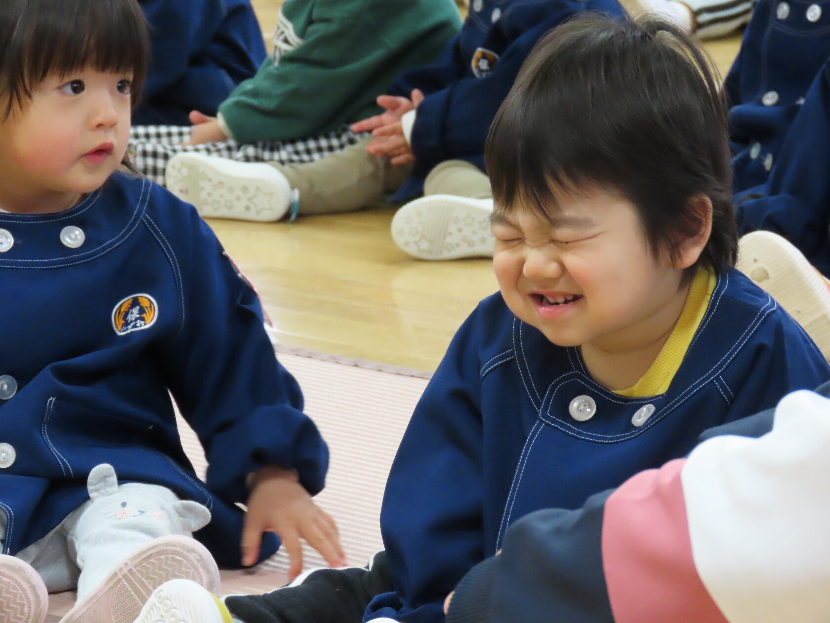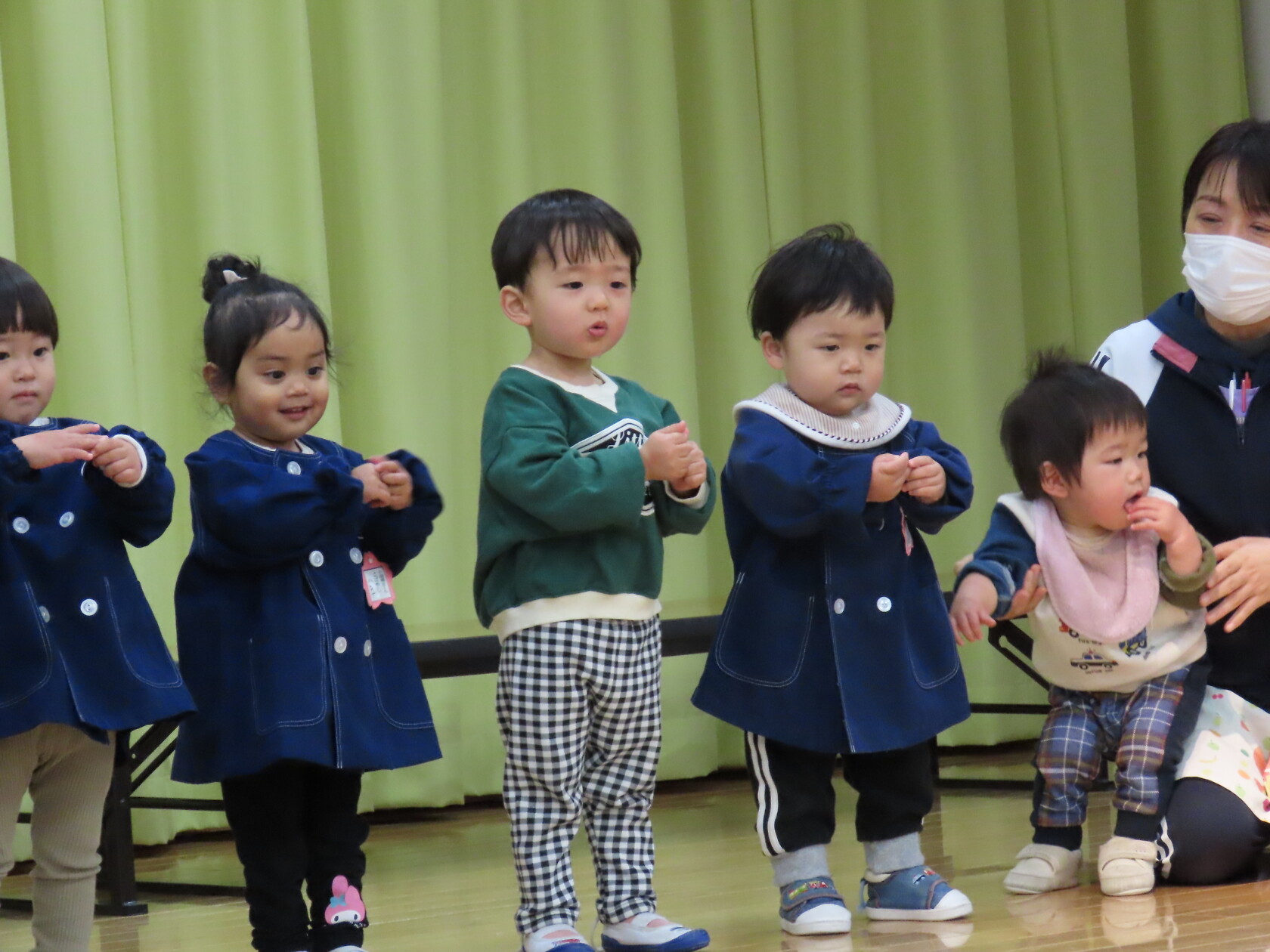 2歳児の2名のお友達は、今日のお誕生会を楽しみに待っていました。