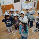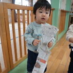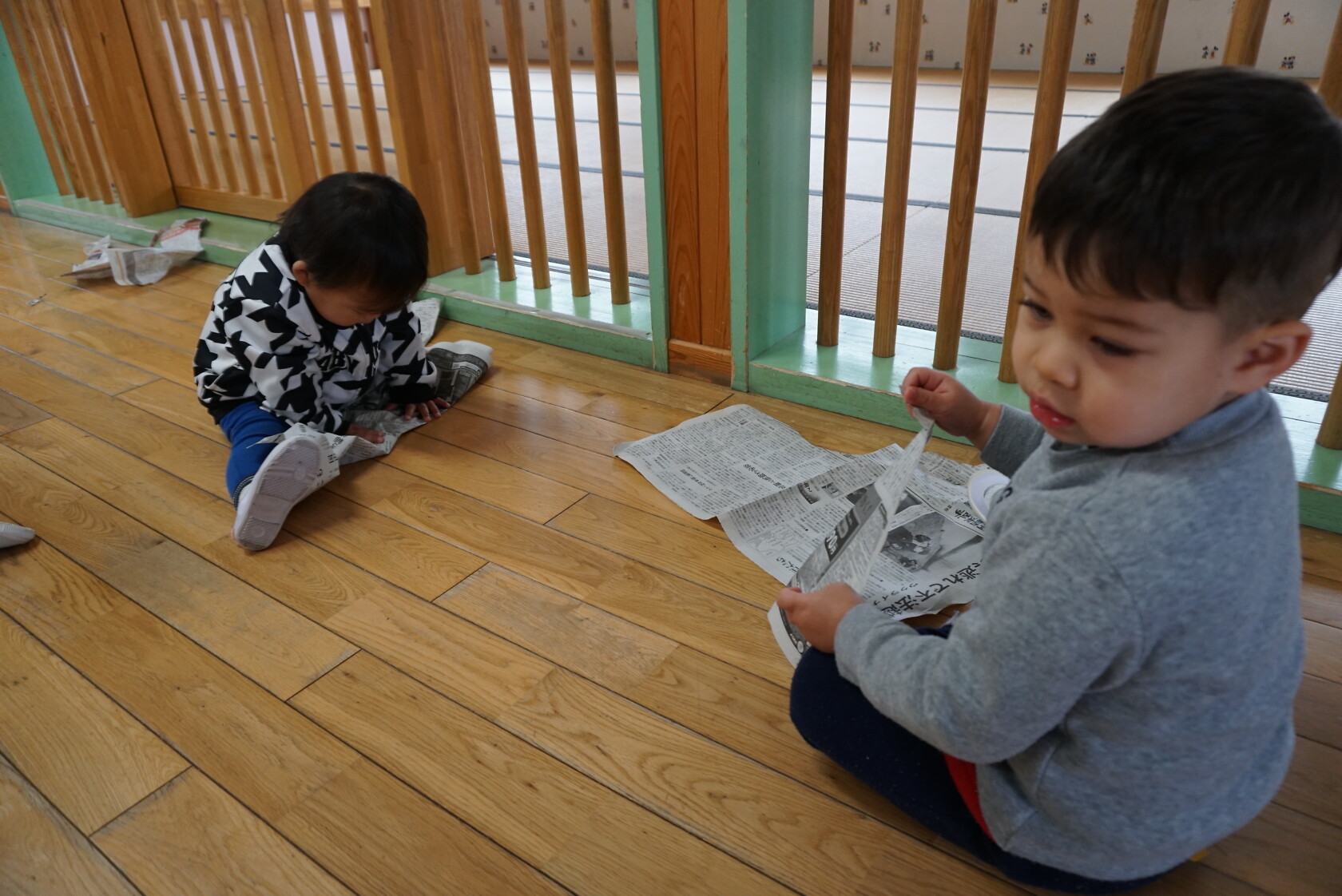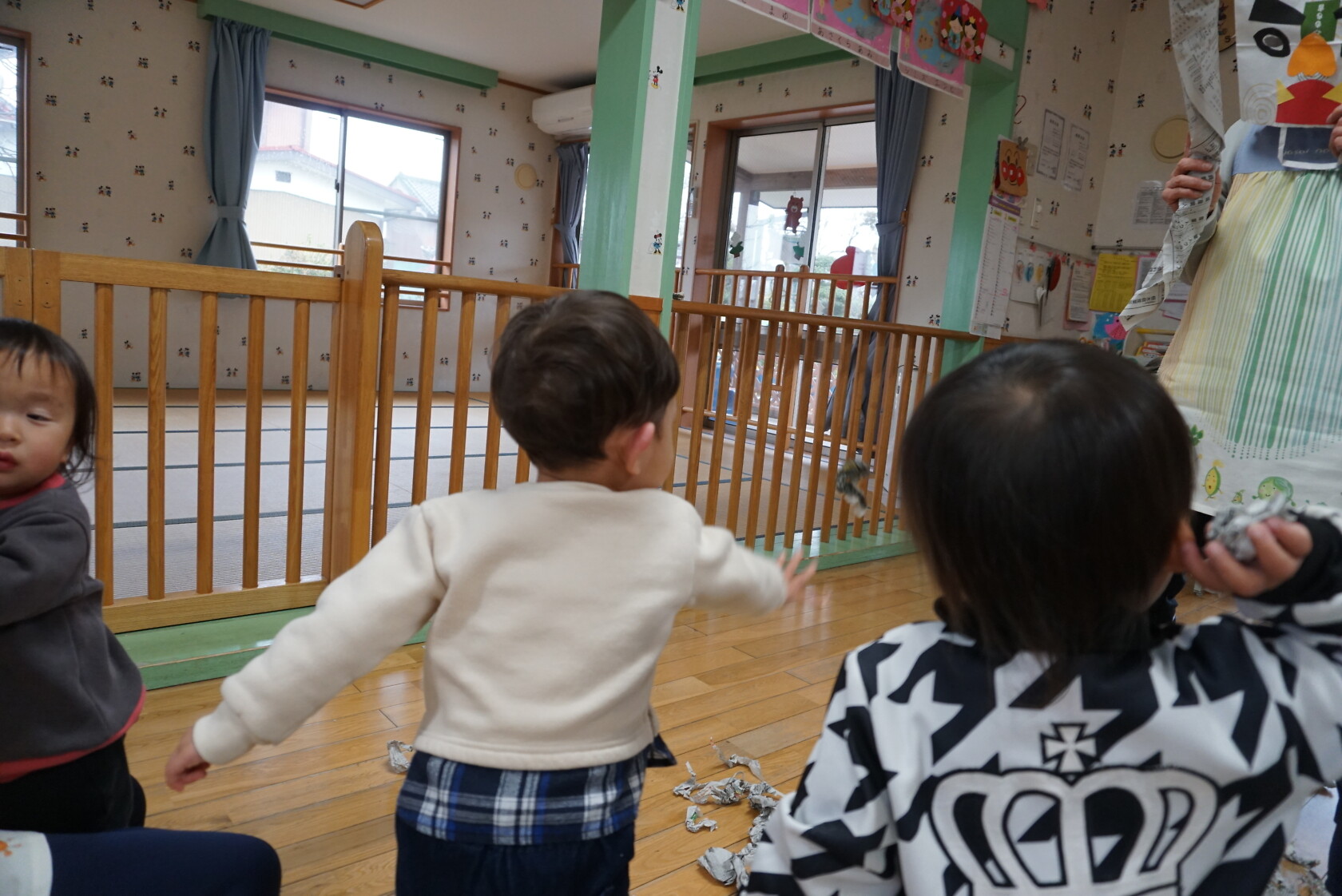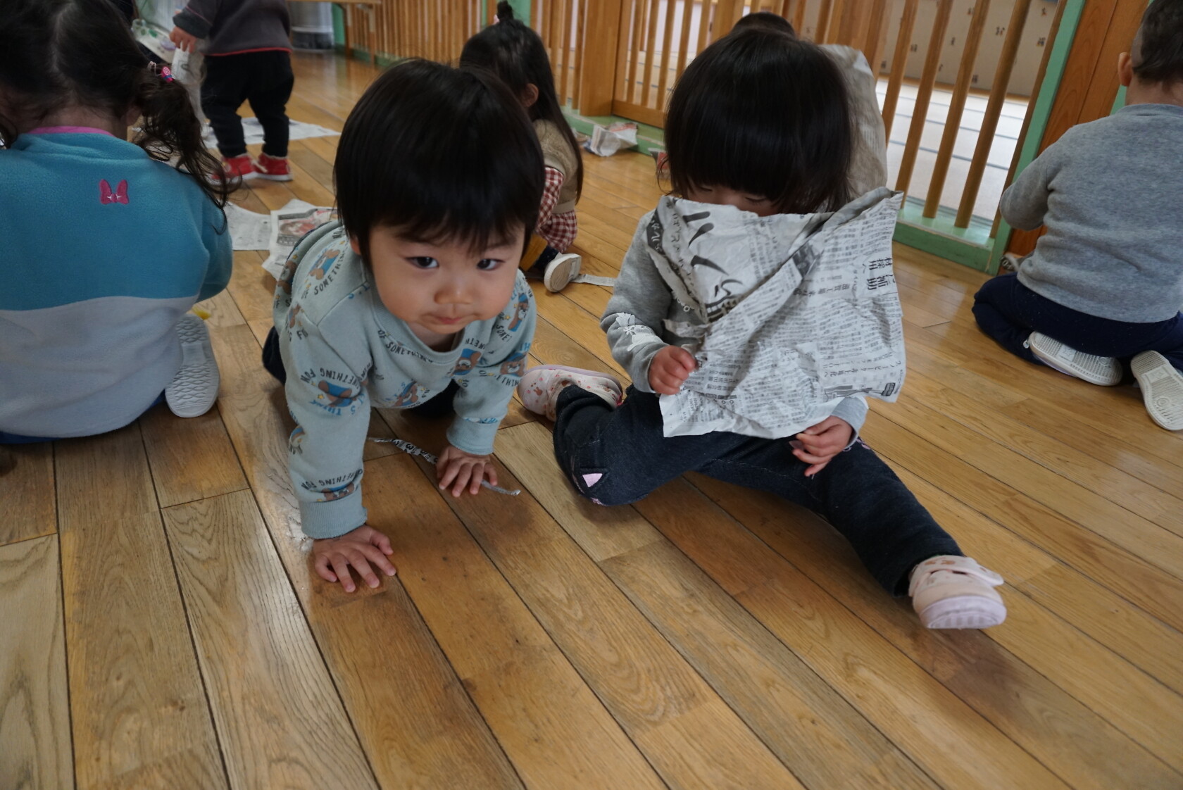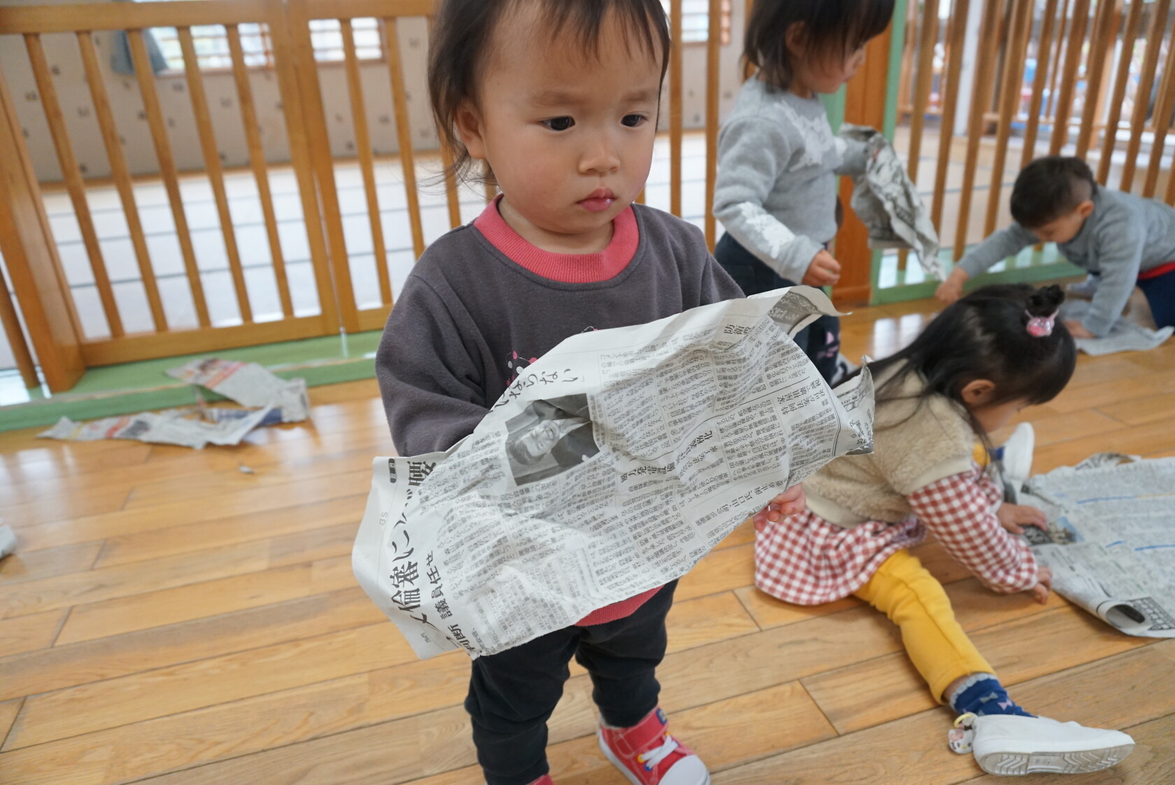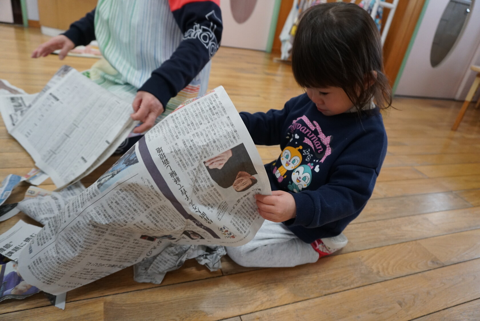 今日のできごと(さくら) 公開済み: 2024年2月22日更新: 2024年2月22日 今日はみんなで新聞紙あそびをしました。 ちぎる、丸める、折る、みんな器用に楽しんでやっている姿が見られました✨ そして~、またまた登場しました!先生鬼!! 二度目の登場で少し慣れたかな⁉丸めた新聞紙を一生懸命投げる子が増えました👏 先生鬼と一緒に子鬼さんも登場し、楽しい時間を過ごしました😊