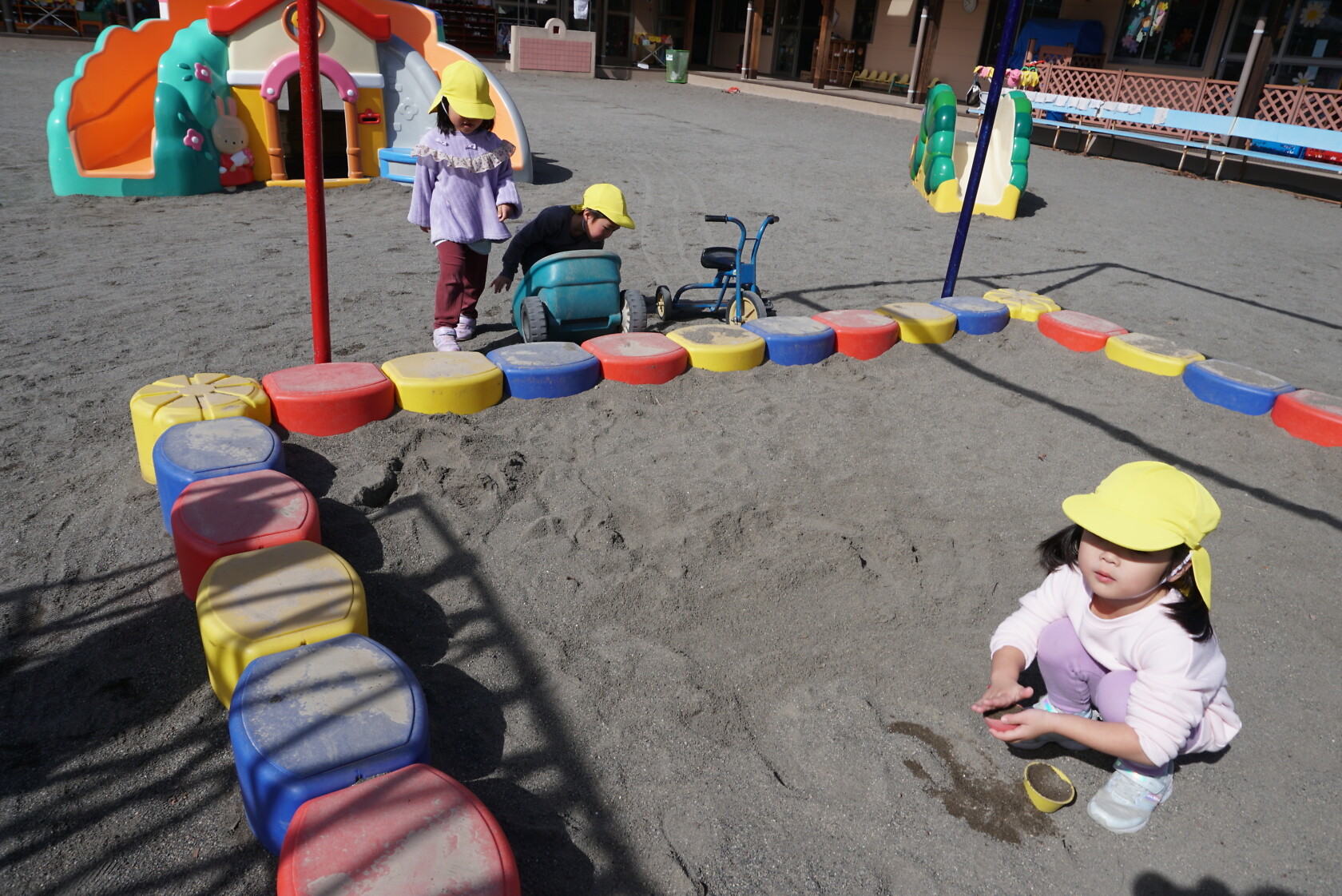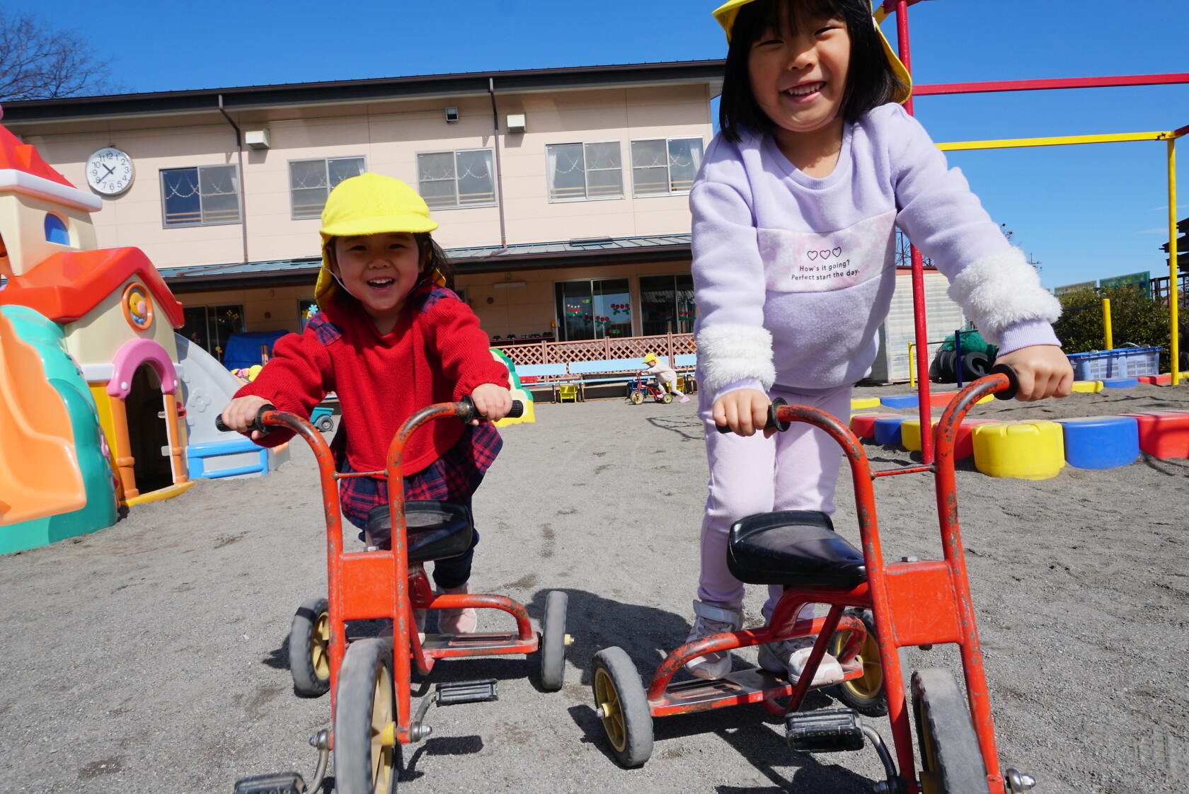 今日のできごと(すみれ) 公開済み: 2024年2月28日更新: 2024年2月28日 今日は外も晴れていて気持ちの良い天気だったので外で遊びました🎵 登り棒やジャングルジムで高いところに登ったり、お友達同士でカップケーキやアイスクリームを作ったりして遊んでいました。 途中からちゅうりっぷ組さんのお友達も一緒に遊びました😊 すみれ組さんも自分より年下の子に優しく接していて成長を感じました✨