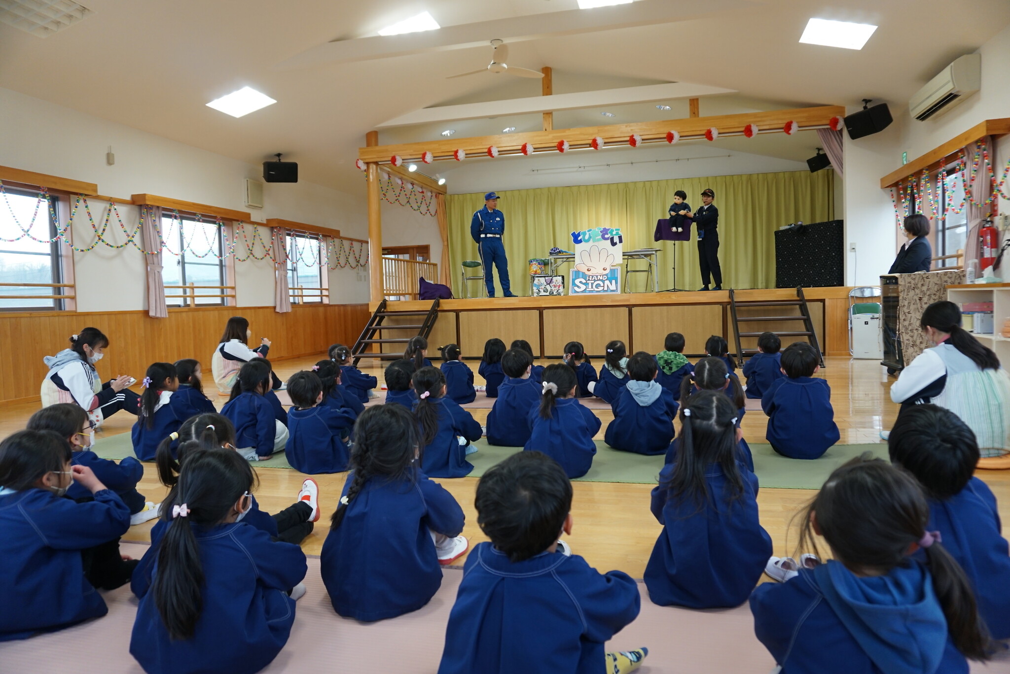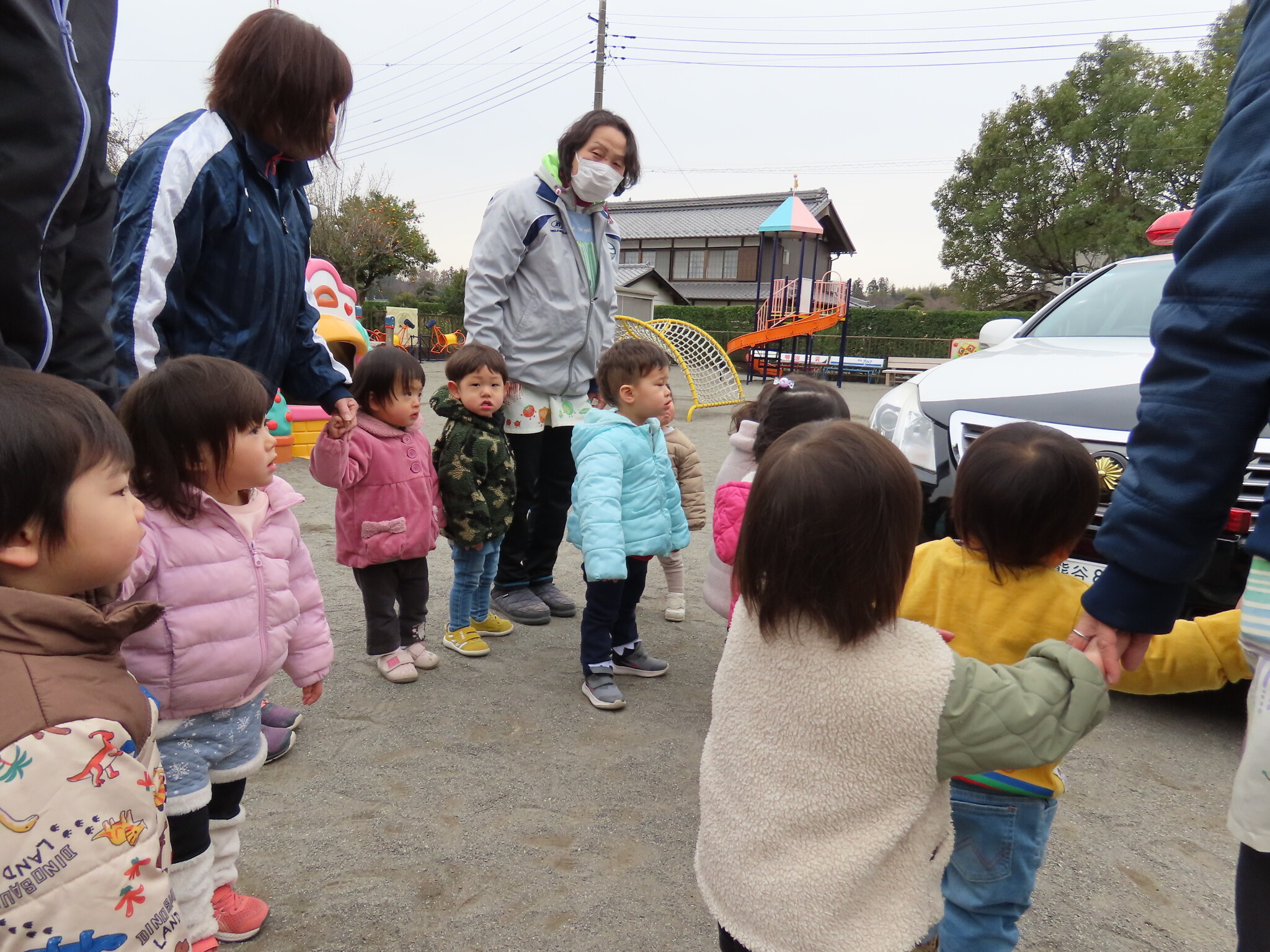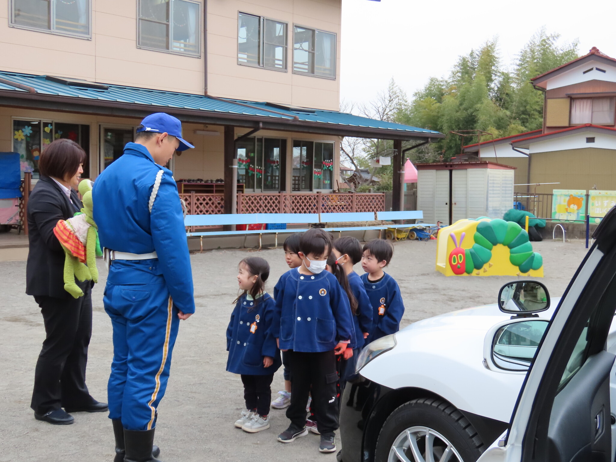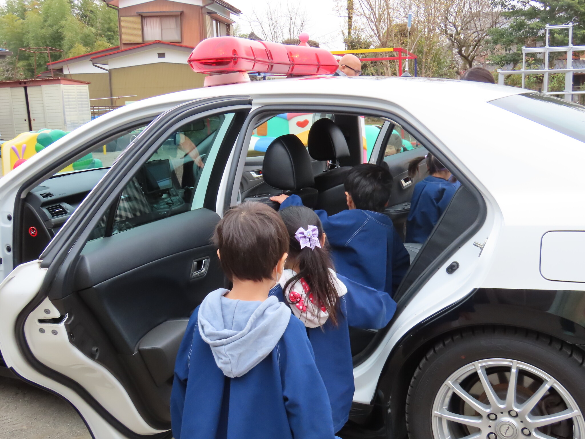 交通安全教室 公開済み: 2024年3月5日更新: 2024年3月5日 今日は交通安全教室がありました。 ひまわり、ゆり、すみれ組のお友達はホールで交通安全について色々と学びました!! その間に下の組のお友達はパトカーにのったりと普段ではできない経験をしました😁 上の組のお友達も最後乗せてもらいました!