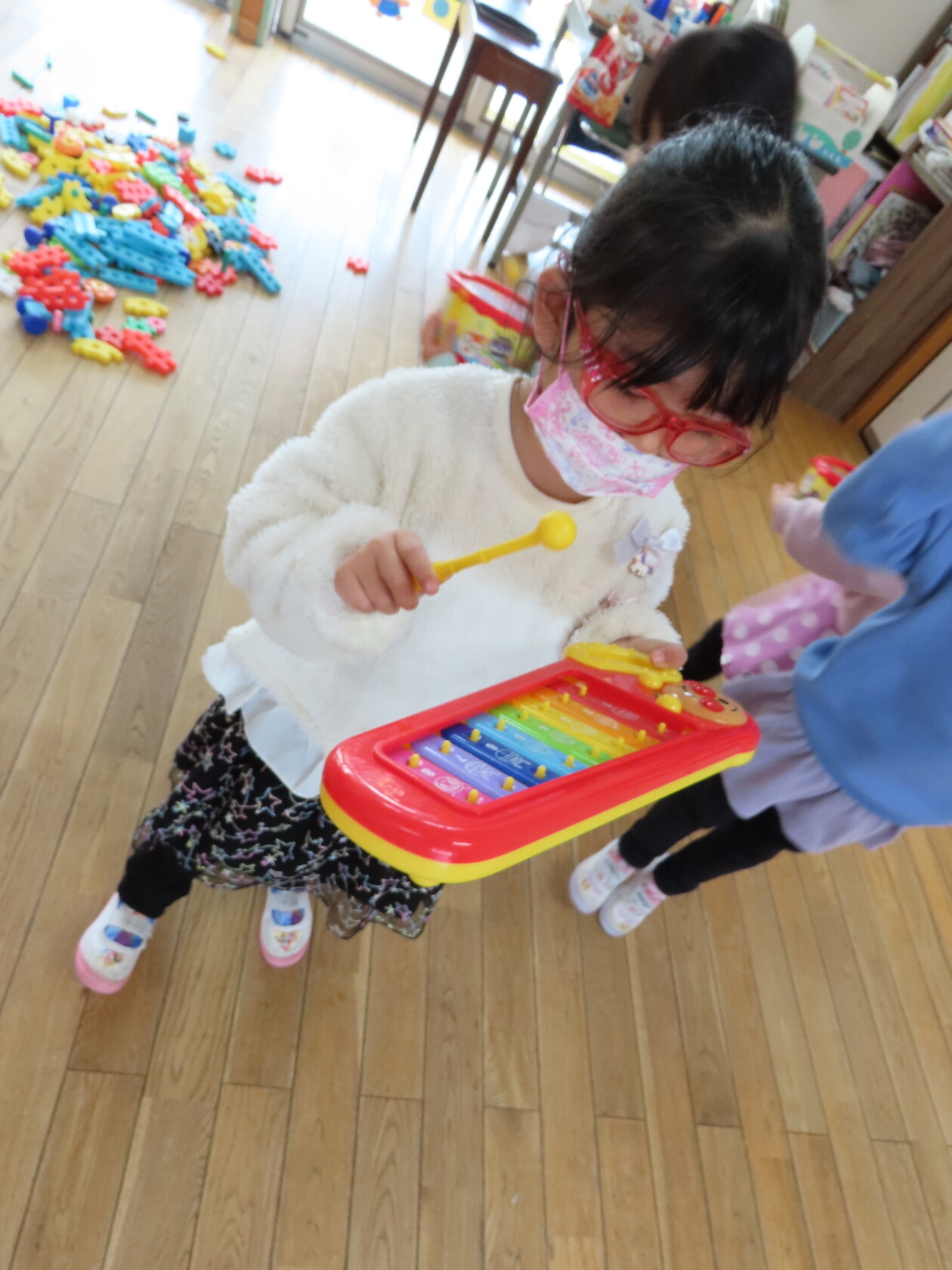 今日のできごと(ゆり) 公開済み: 2024年3月8日更新: 2024年3月8日 今日はアンパンマンの楽器とモノブロックで遊びました😊 楽器では曲に合わせてノリノリな子ども達🎵 また、お遊戯会の曲を流したらみんなで仲良く教え合いながら踊っていました☺