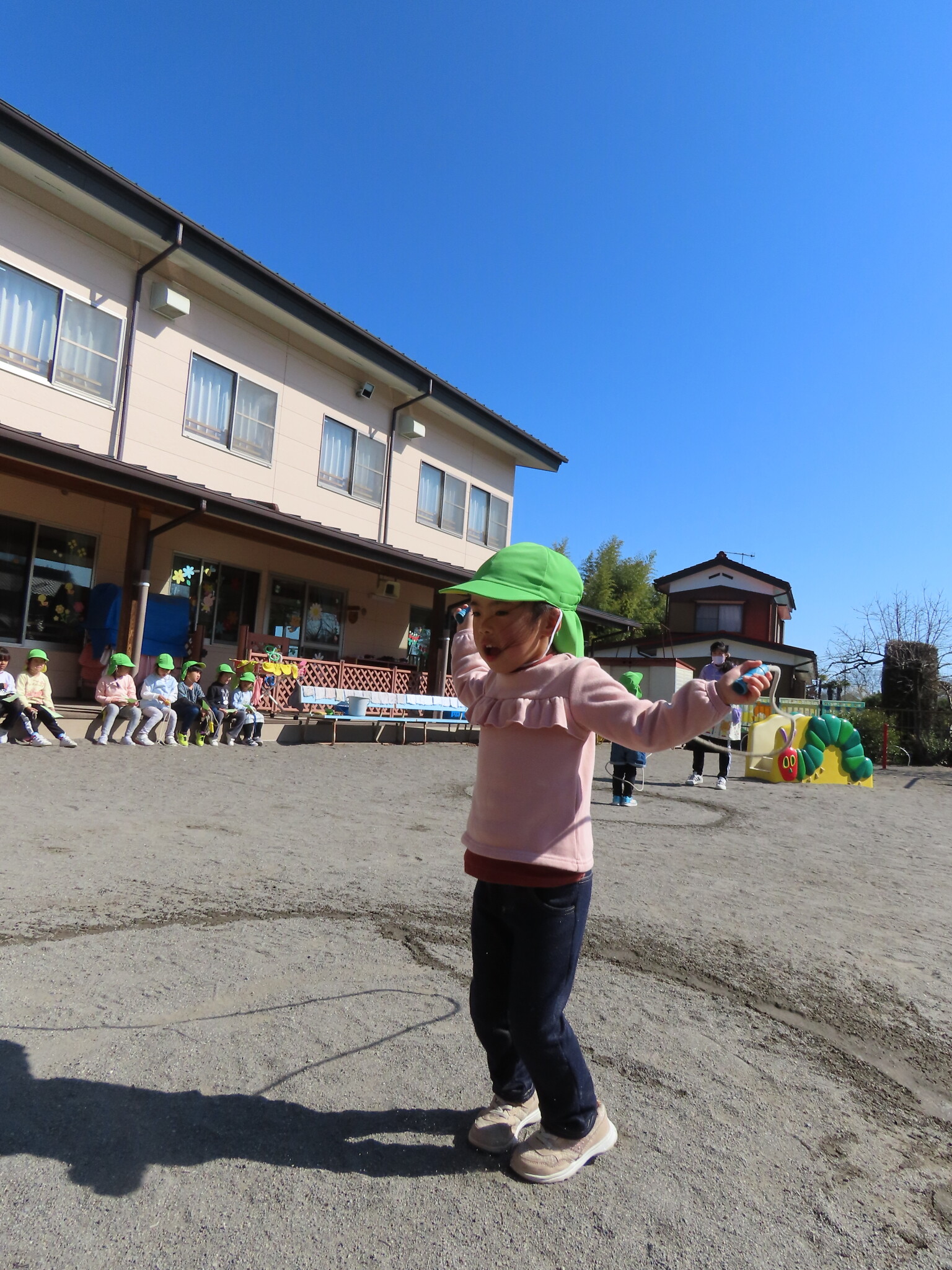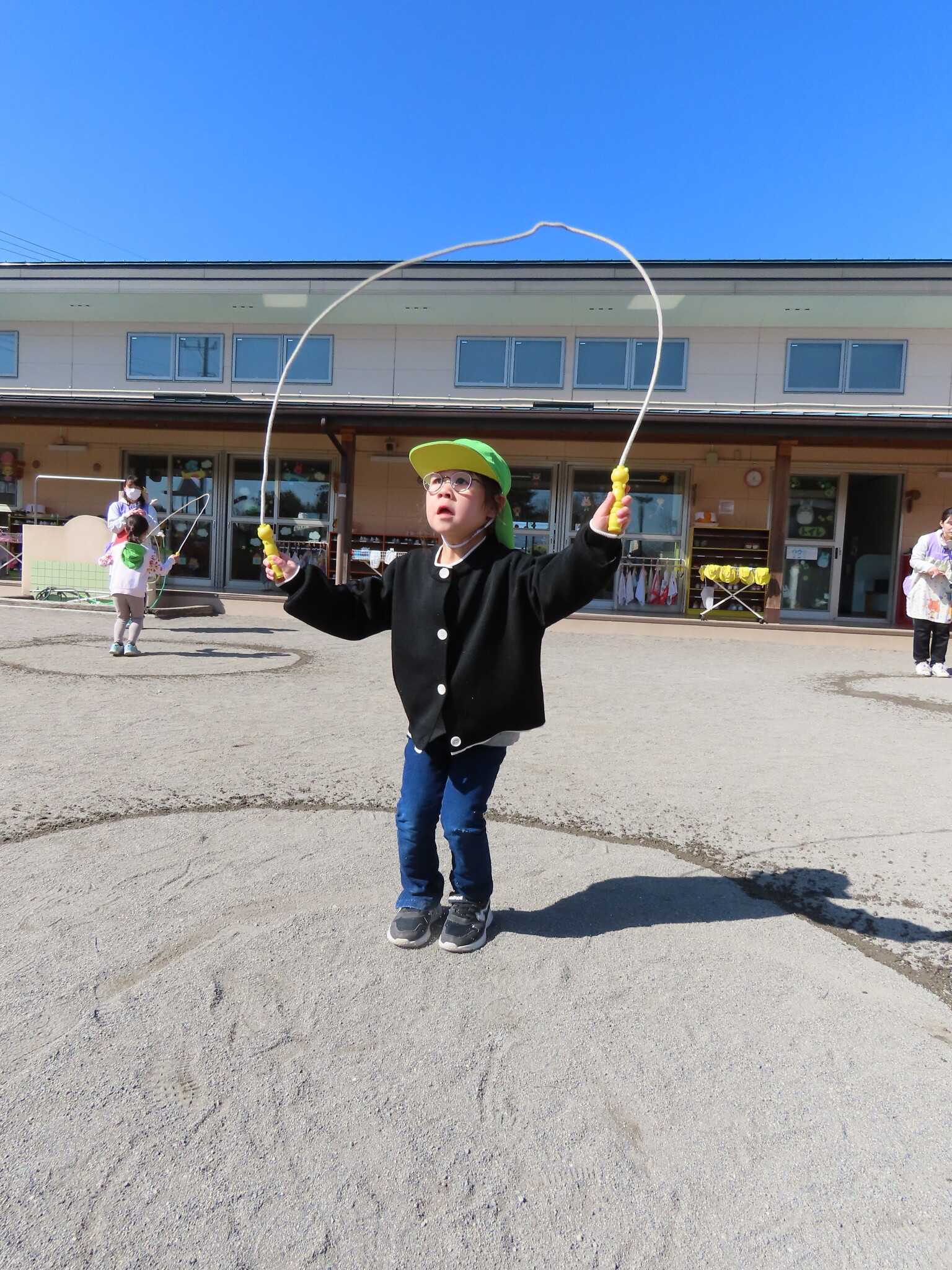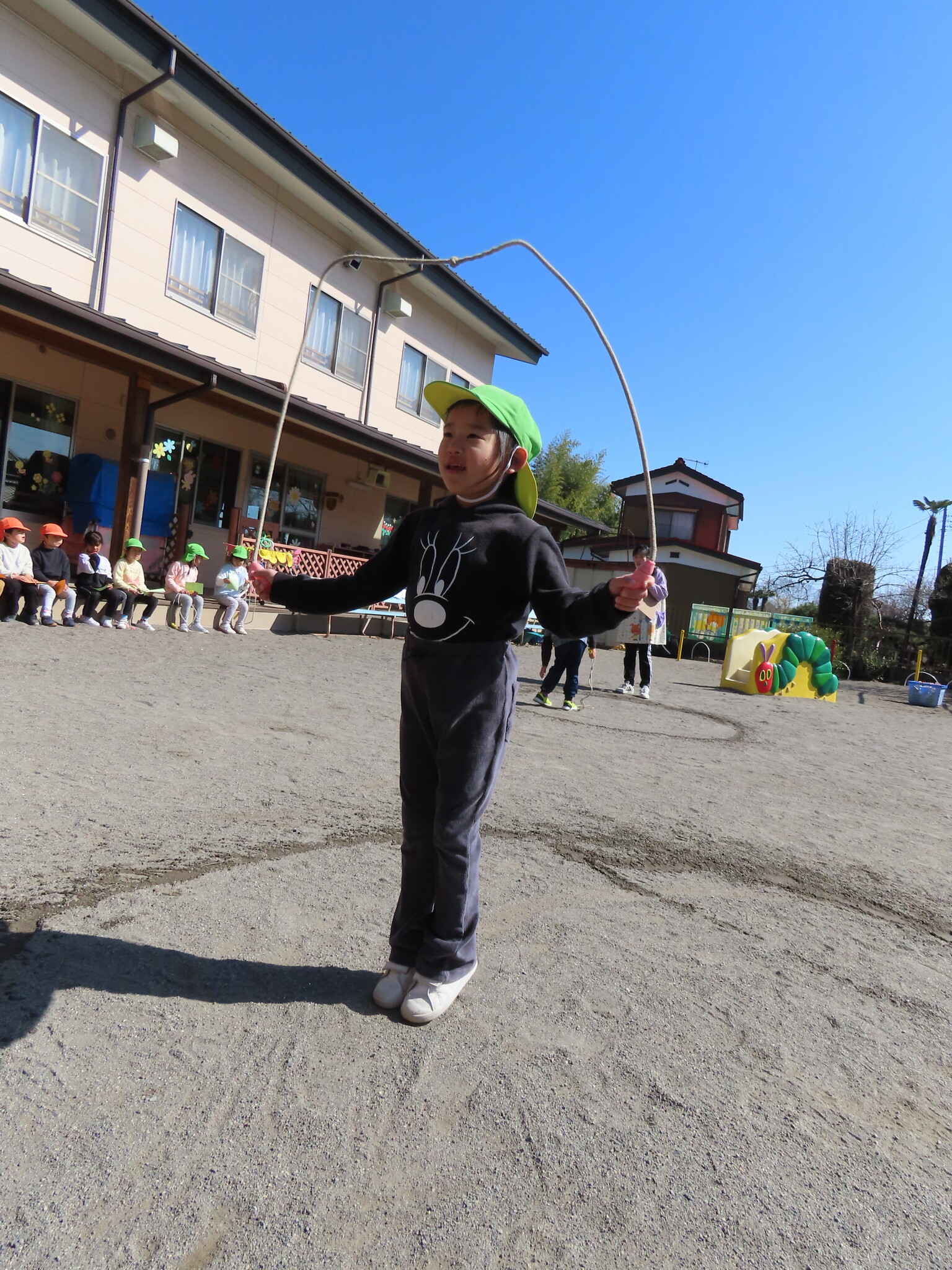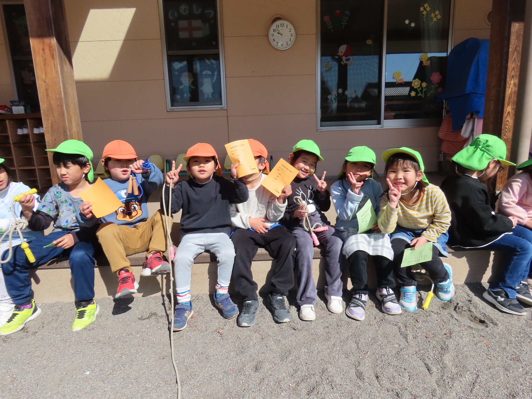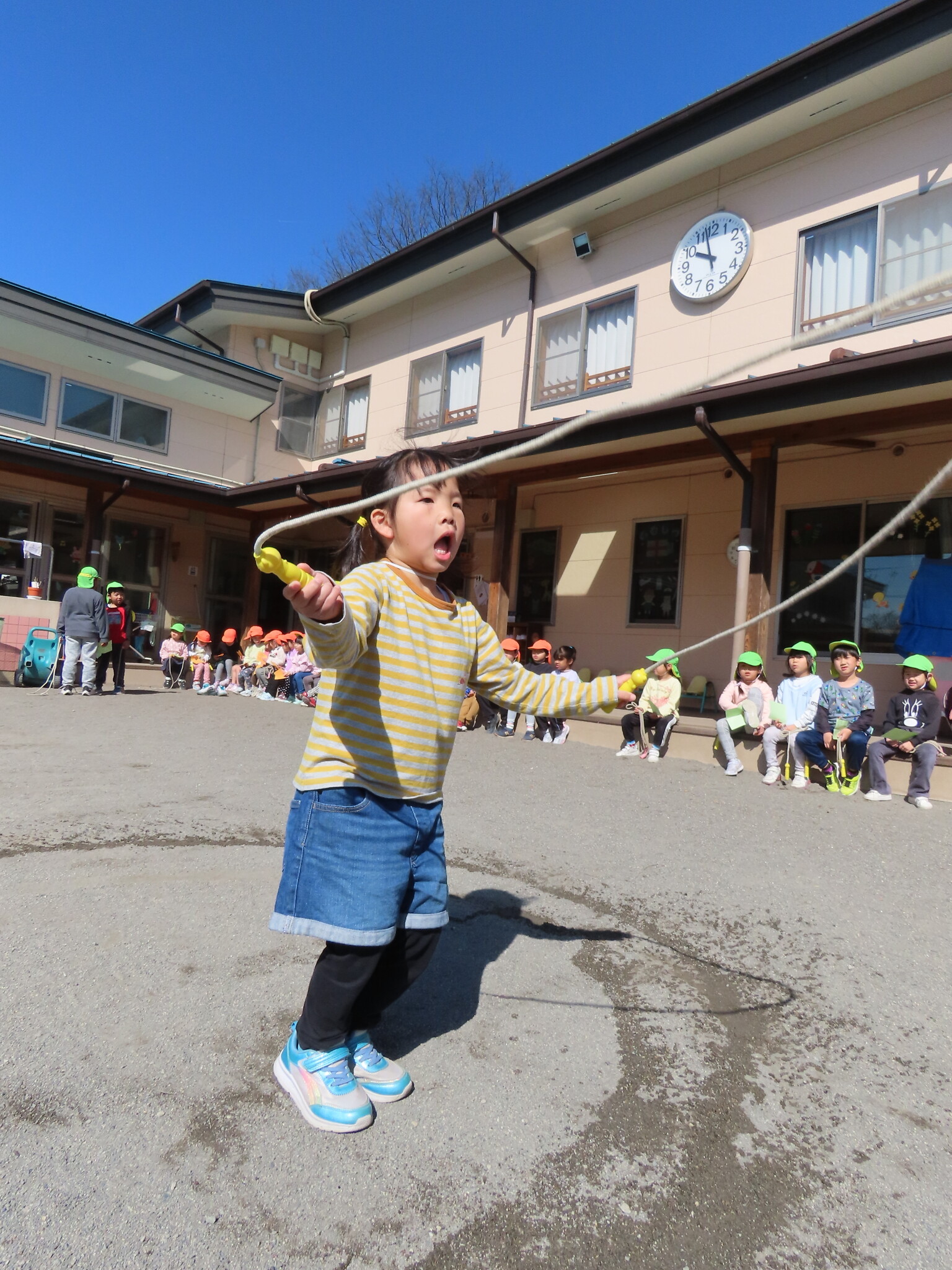 この日にむけてたくさん練習してきたひまわり、ゆり組のみんな。天気もよくぜっこうのなわとび大会日和でした😁