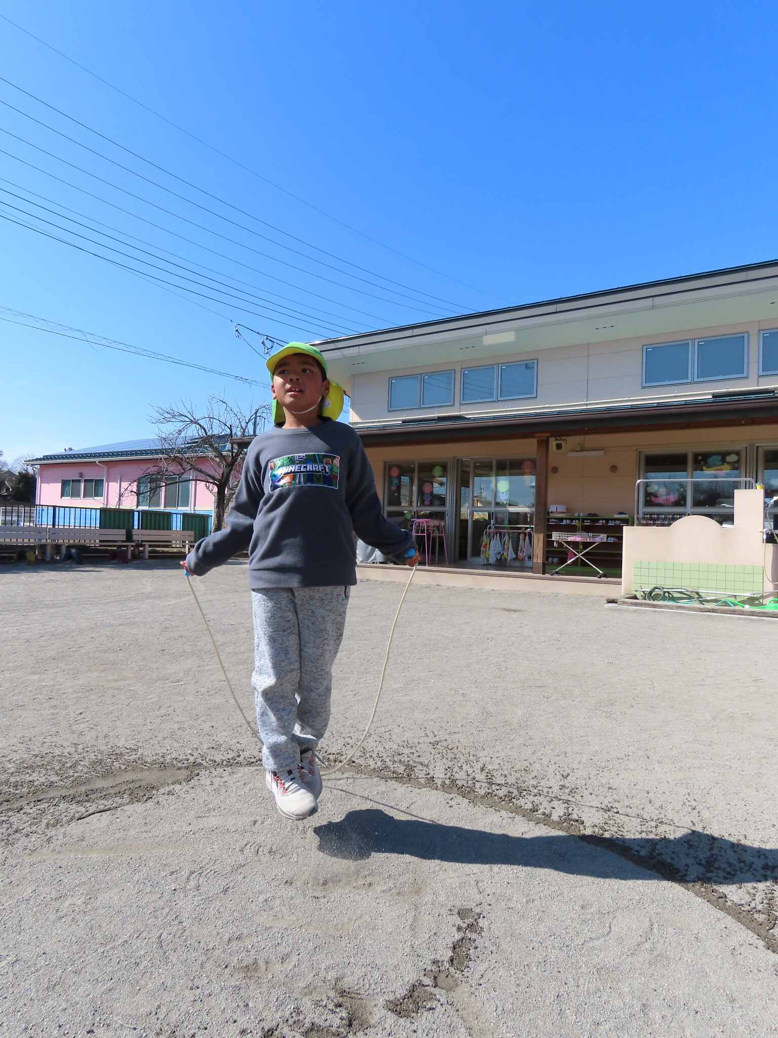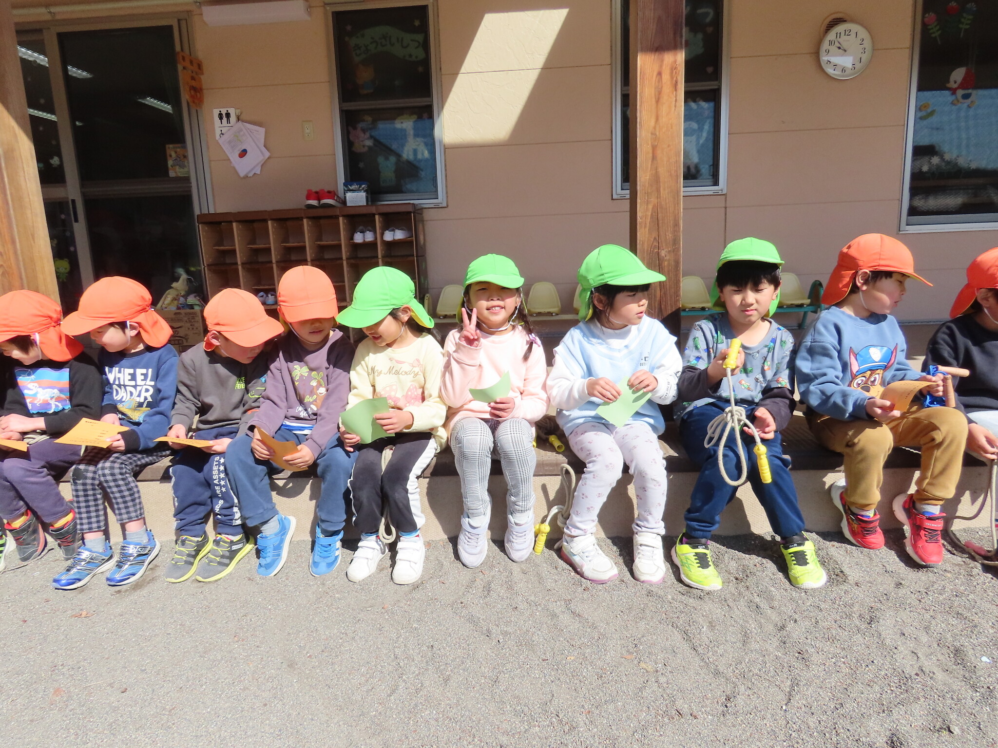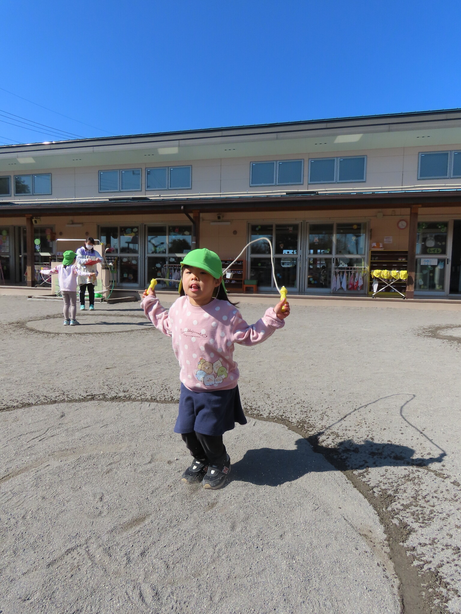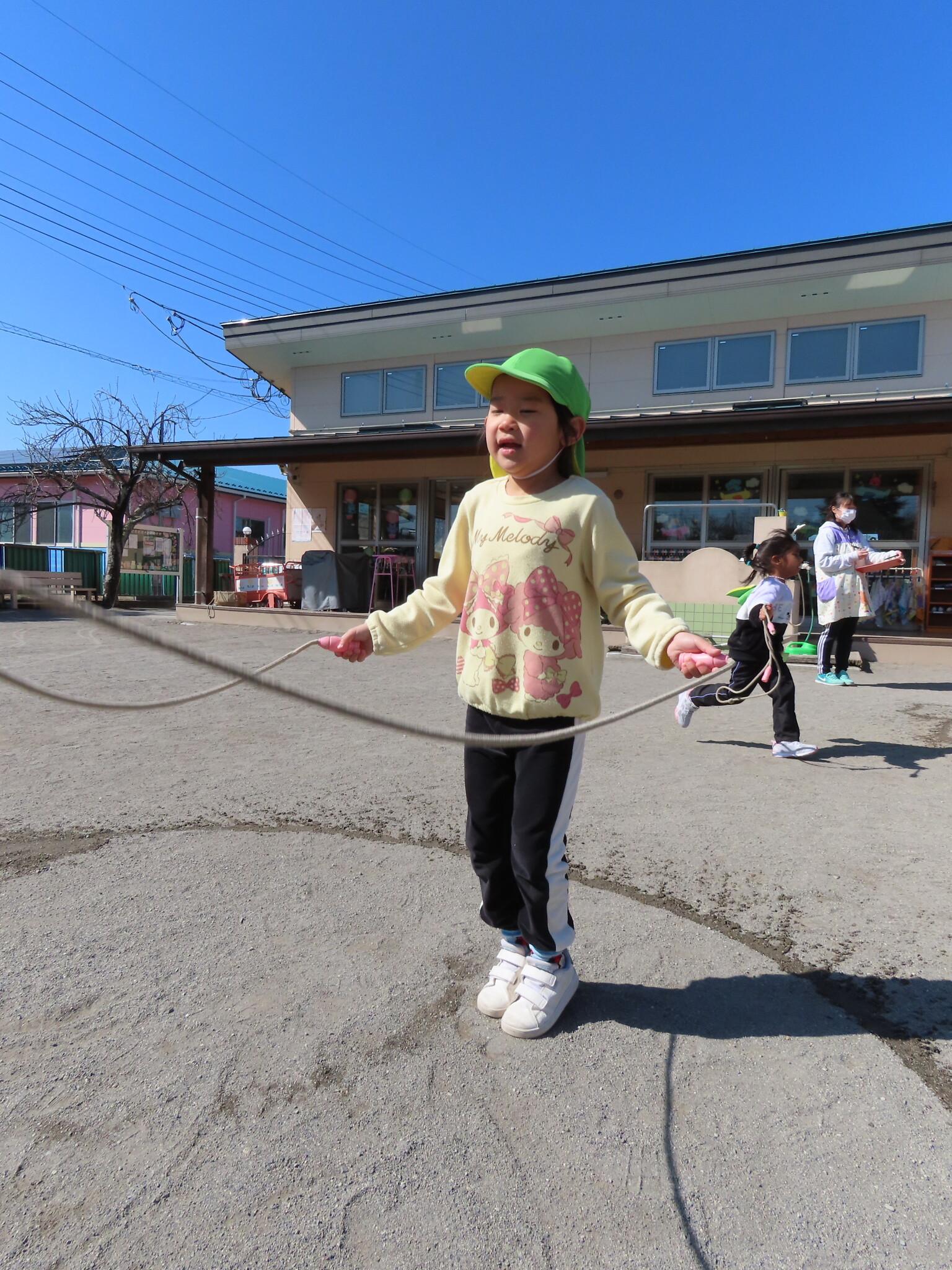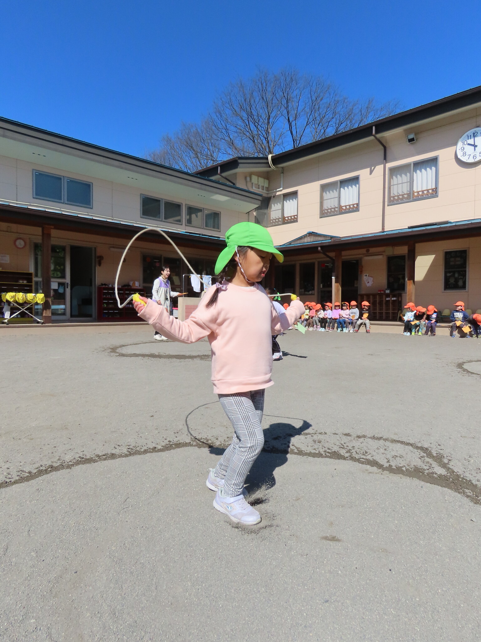 この日にむけてたくさん練習してきたひまわり、ゆり組のみんな。天気もよくぜっこうのなわとび大会日和でした😁