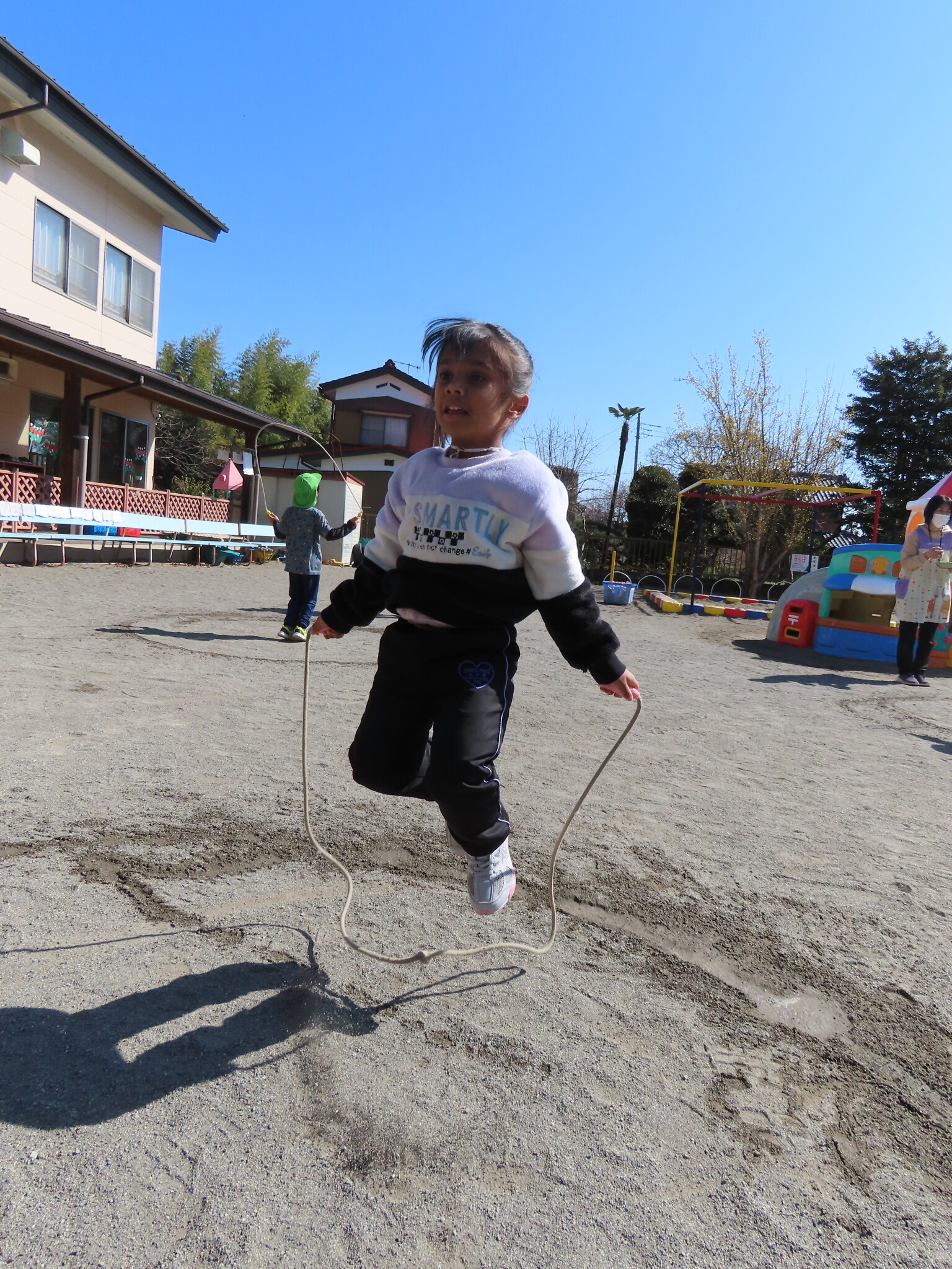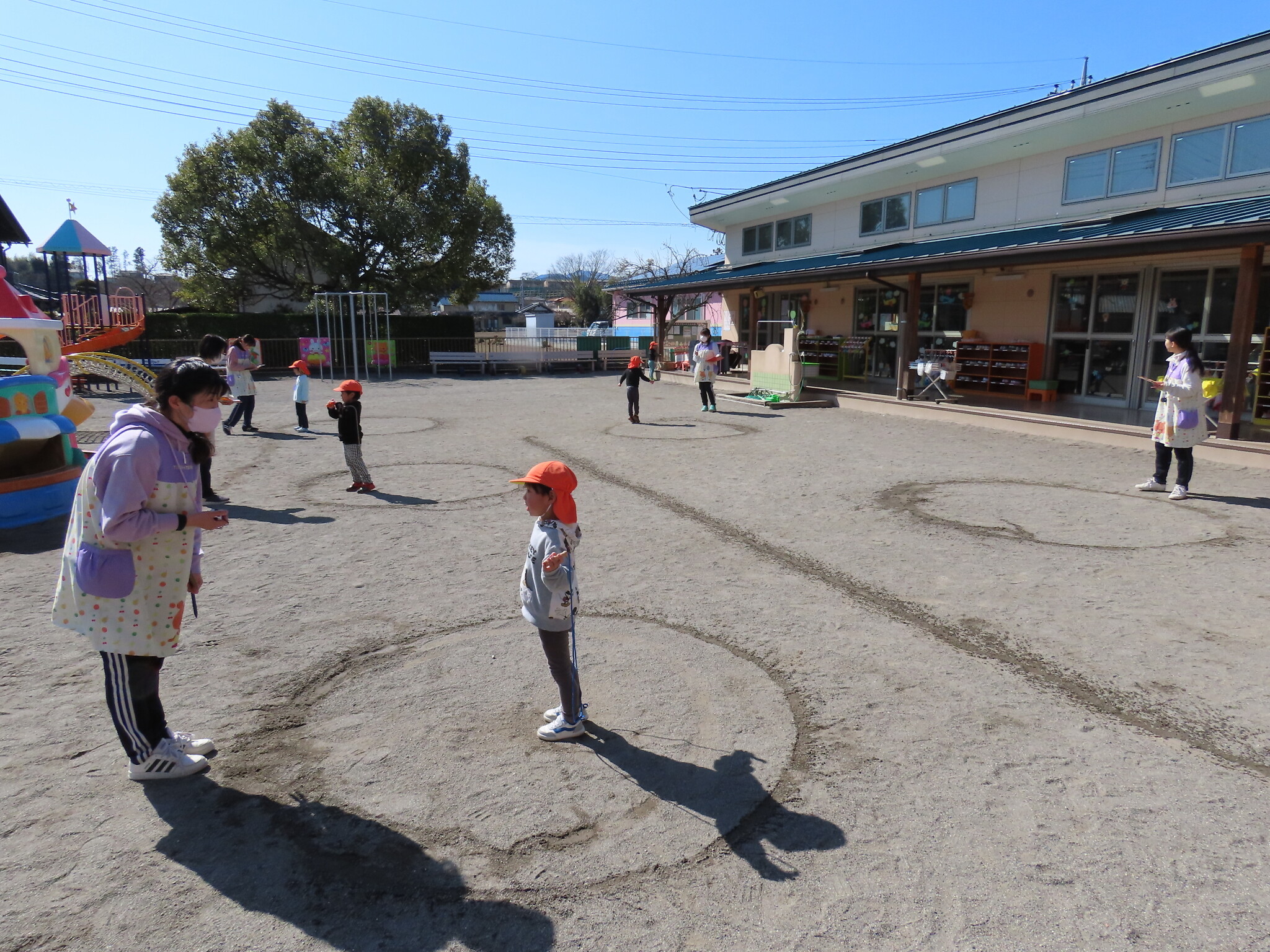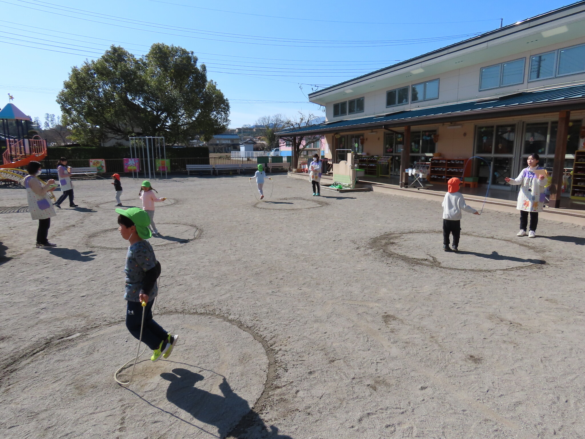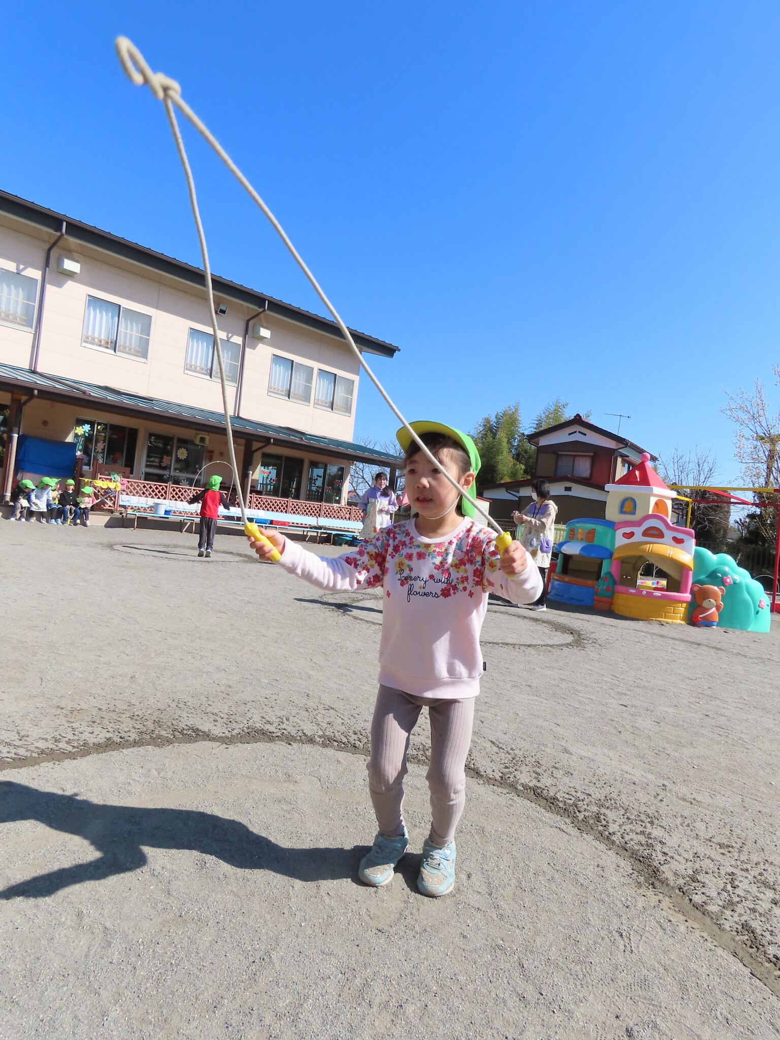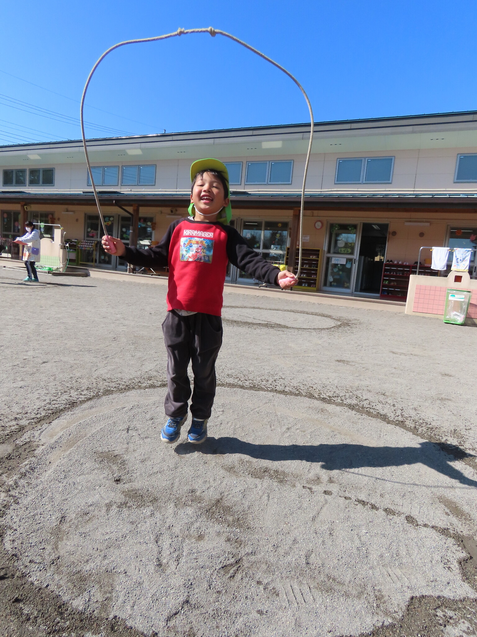 この日にむけてたくさん練習してきたひまわり、ゆり組のみんな。天気もよくぜっこうのなわとび大会日和でした😁