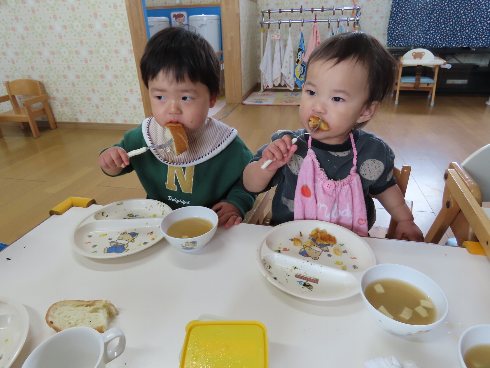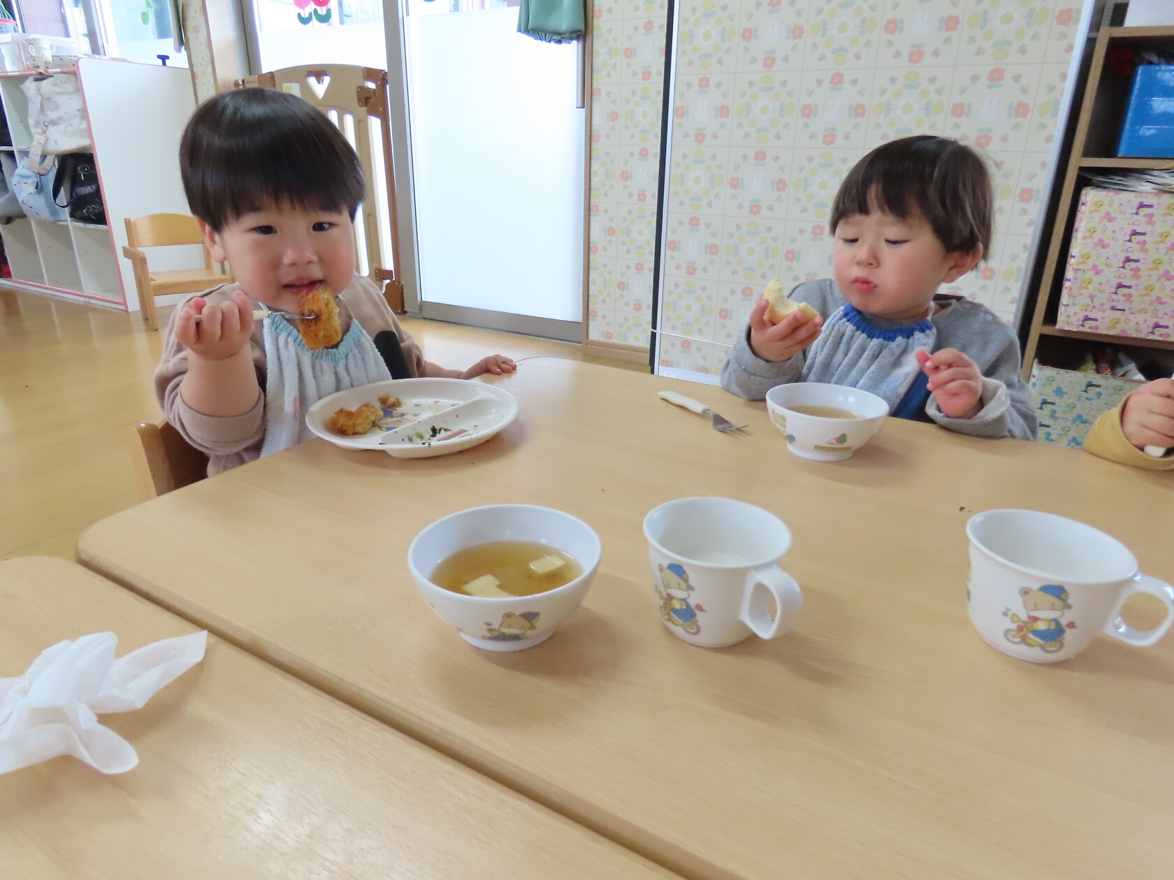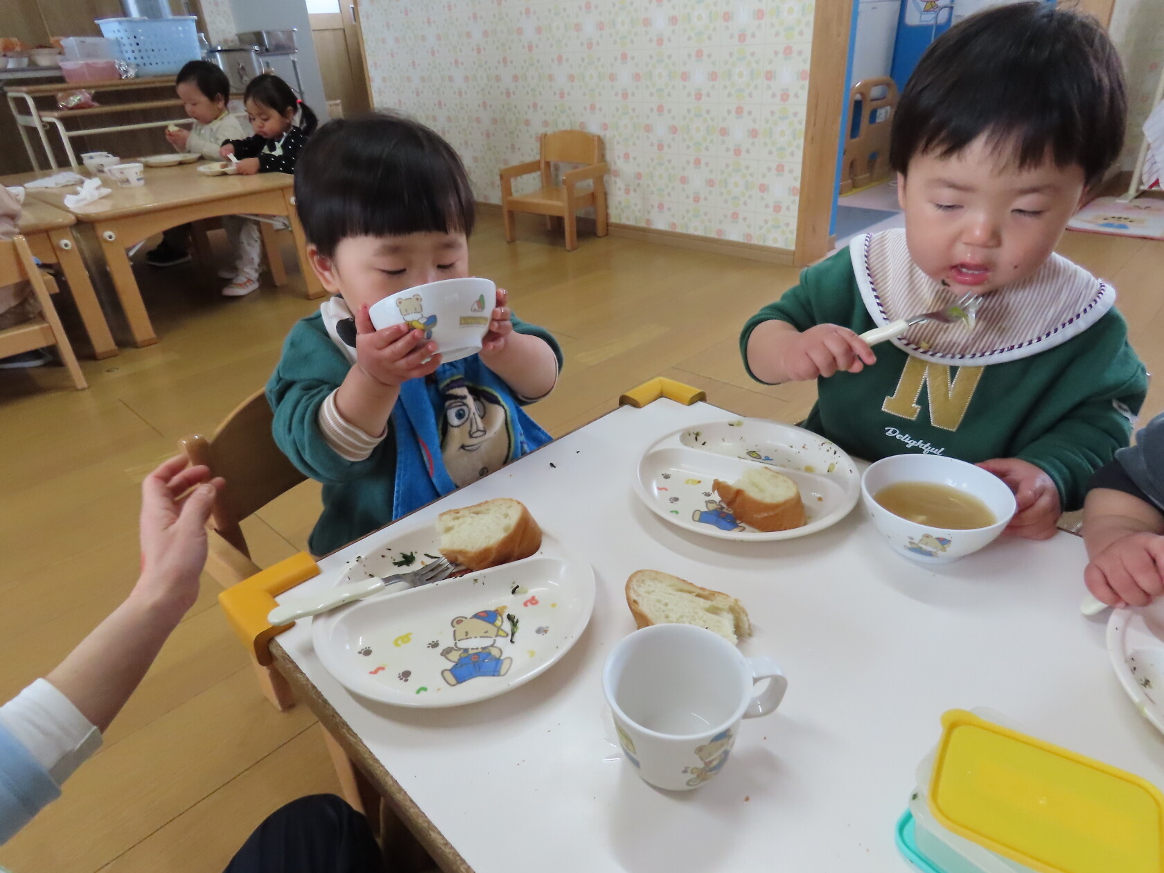 今日のできごと(小規模さくら) 公開済み: 2024年3月12日更新: 2024年3月12日 今日の給食はパン、コロッケを食べました。 フォークを使って自分で頑張って食べられるように練習しています。 みんなとっても美味しそうに食べていました😋