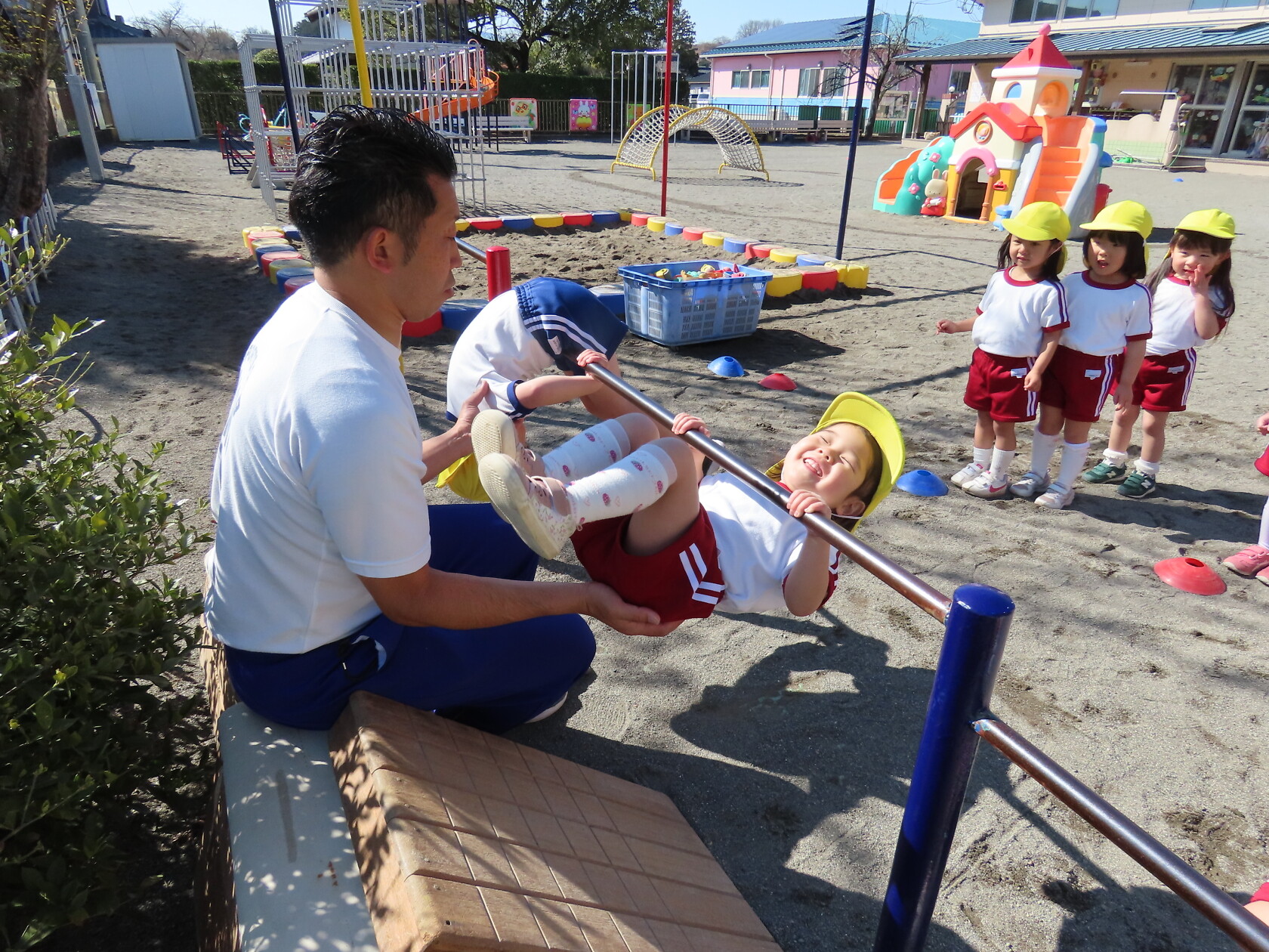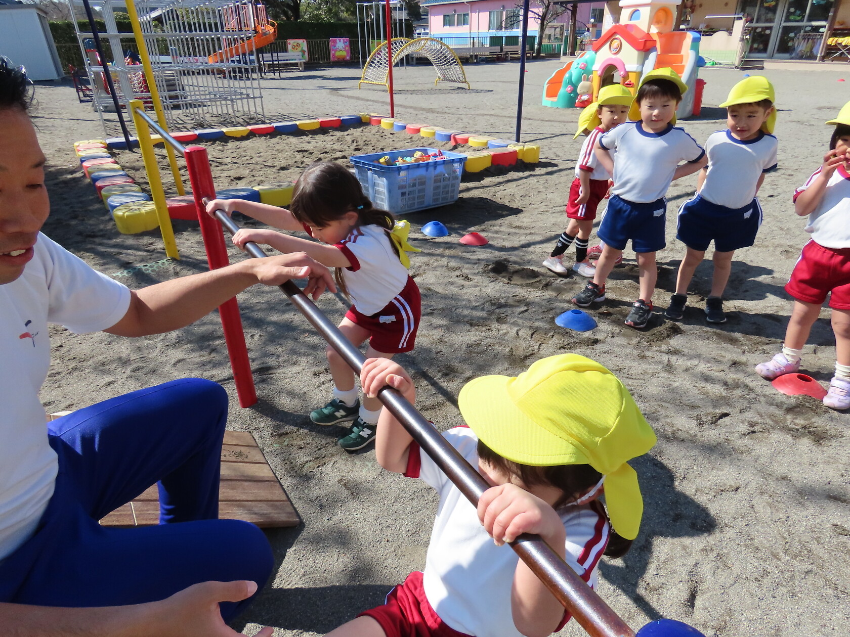 今日のできごと(すみれ) 公開済み: 2024年3月14日更新: 2024年3月14日 今日は、体育指導の時に一生懸命逆上がりの練習をしているところを撮りました📸 ほとんどの子が足を勢いよく上げて回ろうとしたり、中には保育士や踏み切り板などの補助がなくても1人で回れる子がいたりと 1年でこんなにも成長したのか!!と驚かされます✨ 来週がすみれ組では最後の体育指導となるので楽しみましょうね😊