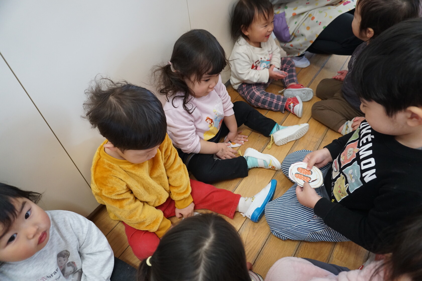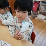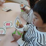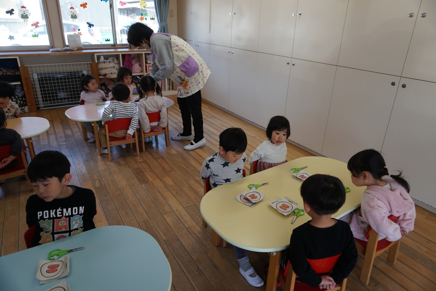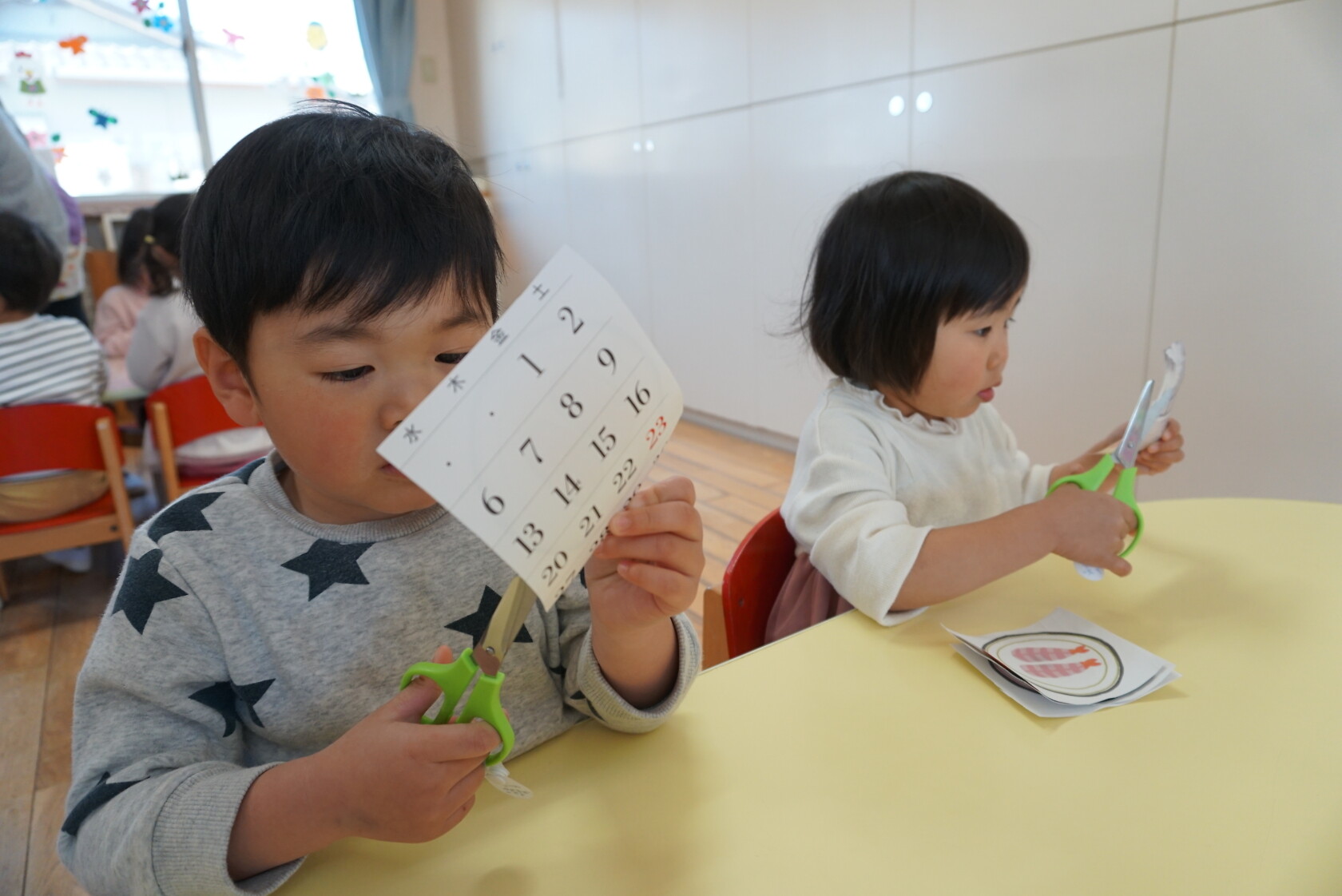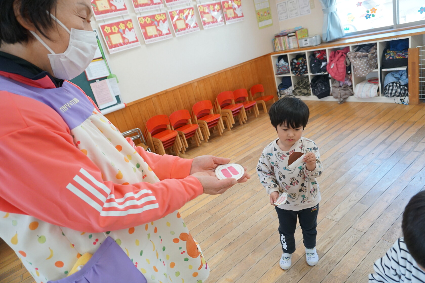 今日のできごと(さくら・ちゅうりっぷ・小規模ちゅうりっぷ) 公開済み: 2024年3月18日更新: 2024年3月18日 進級に向け、はさみの練習を頑張っているちゅうりっぷ組🌷 今日は、お寿司のお皿(丸型)を切る練習をしました。 お寿司がこぼれないようにと、真剣にハサミを使う子ども達は職人の目です🍣 丁度切り終わる頃、さくら組さんが遊びに来てくれたので、みんなで一緒にお寿司を食べることにしたのですが、自分の分をさくら組さんや先生に分けてあげたりと、お兄さん・お姉さんらしい表情を見せてくれました😊✨ さくら組さんも「もうすぐ、ちゅうりっぷ組さんになるの?」と聞くと、頷きながらお片づけまで上手にしてくれました👏