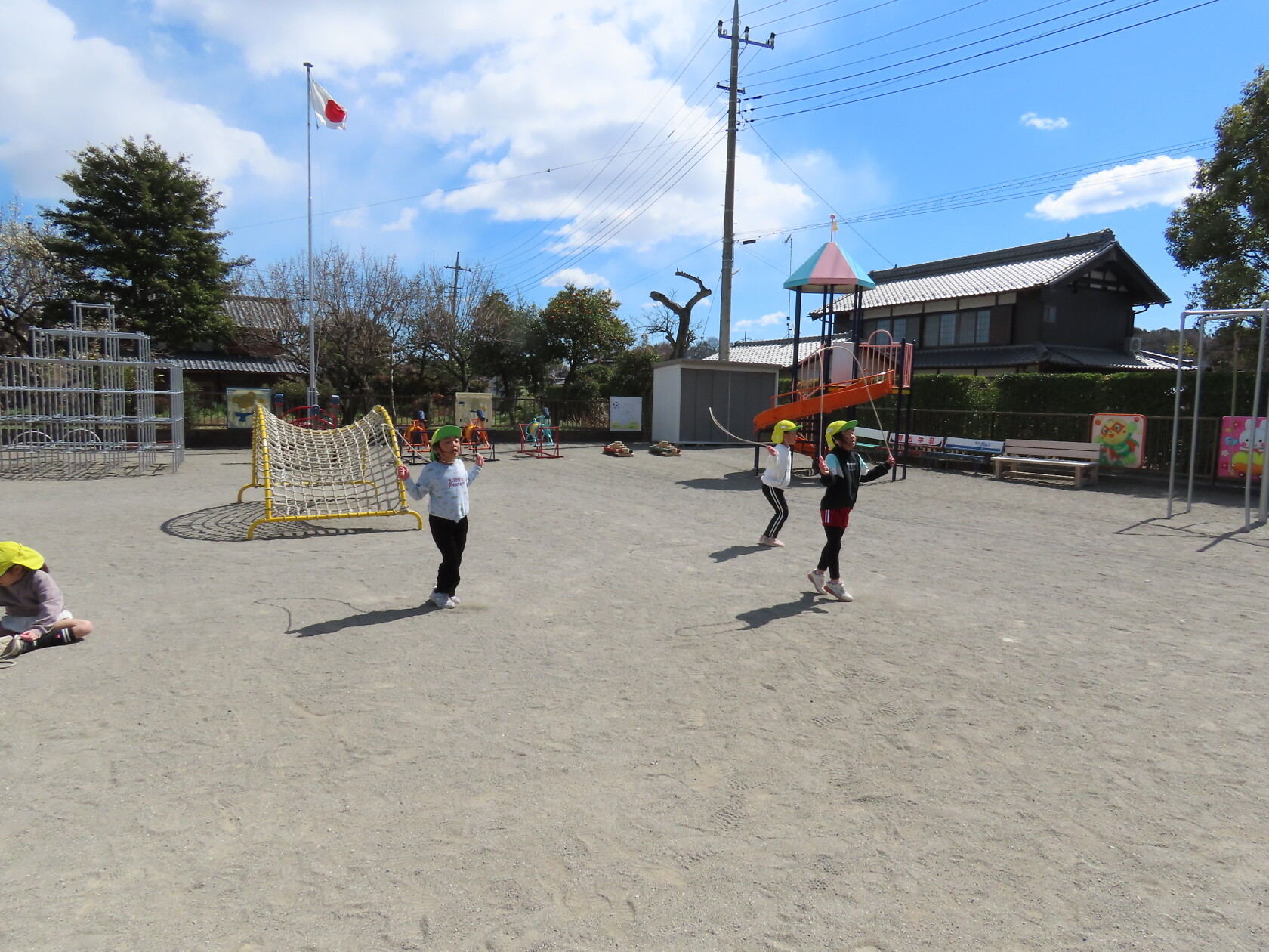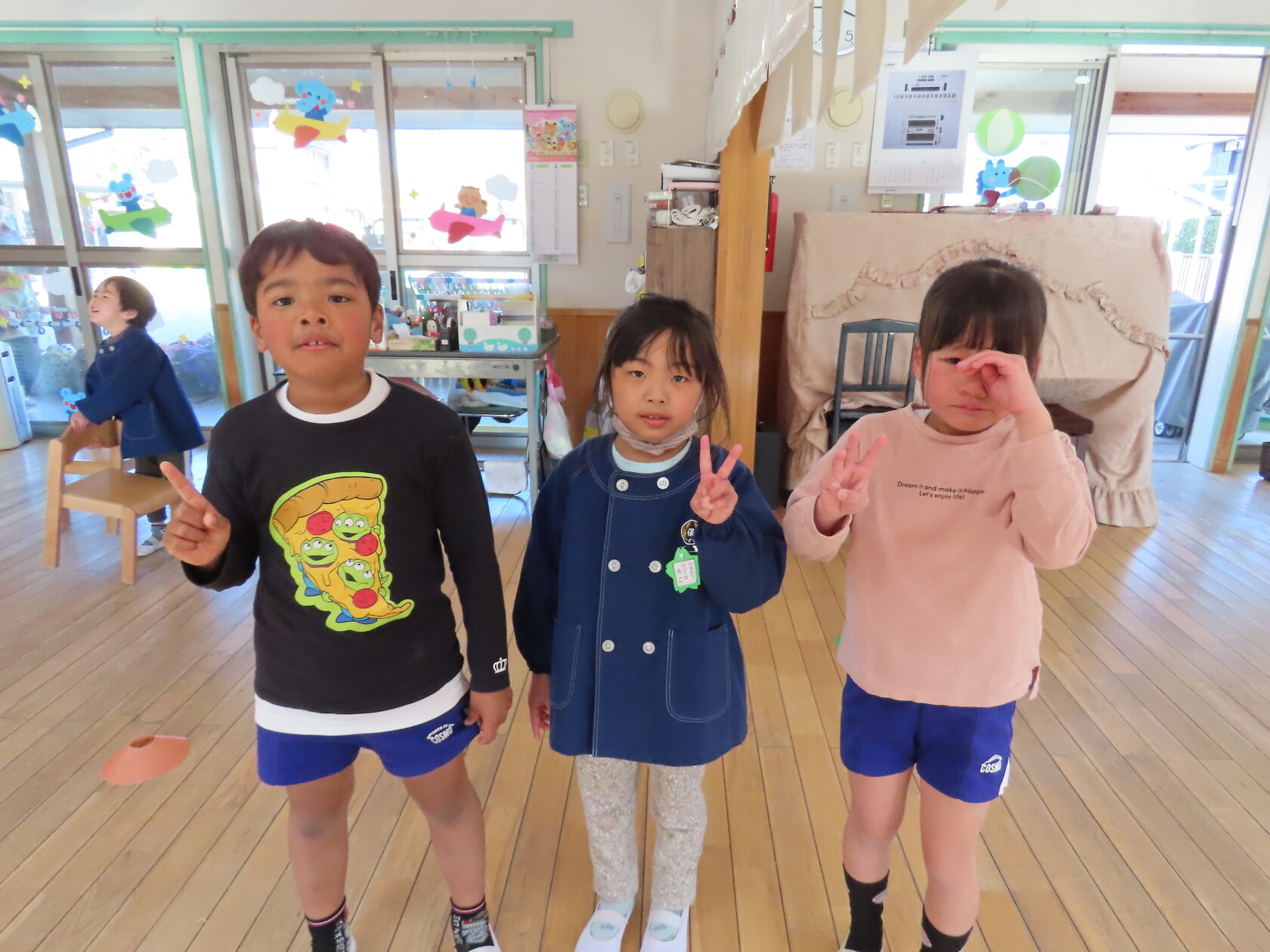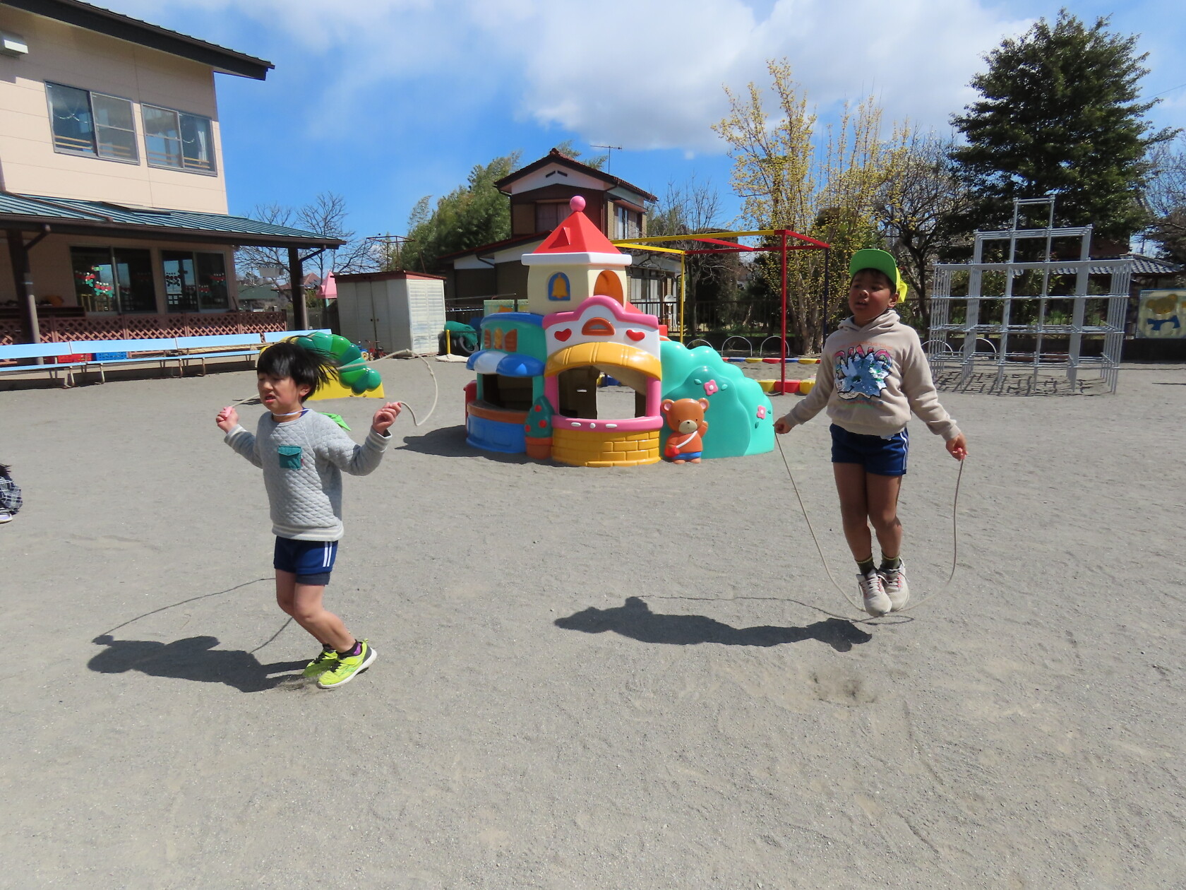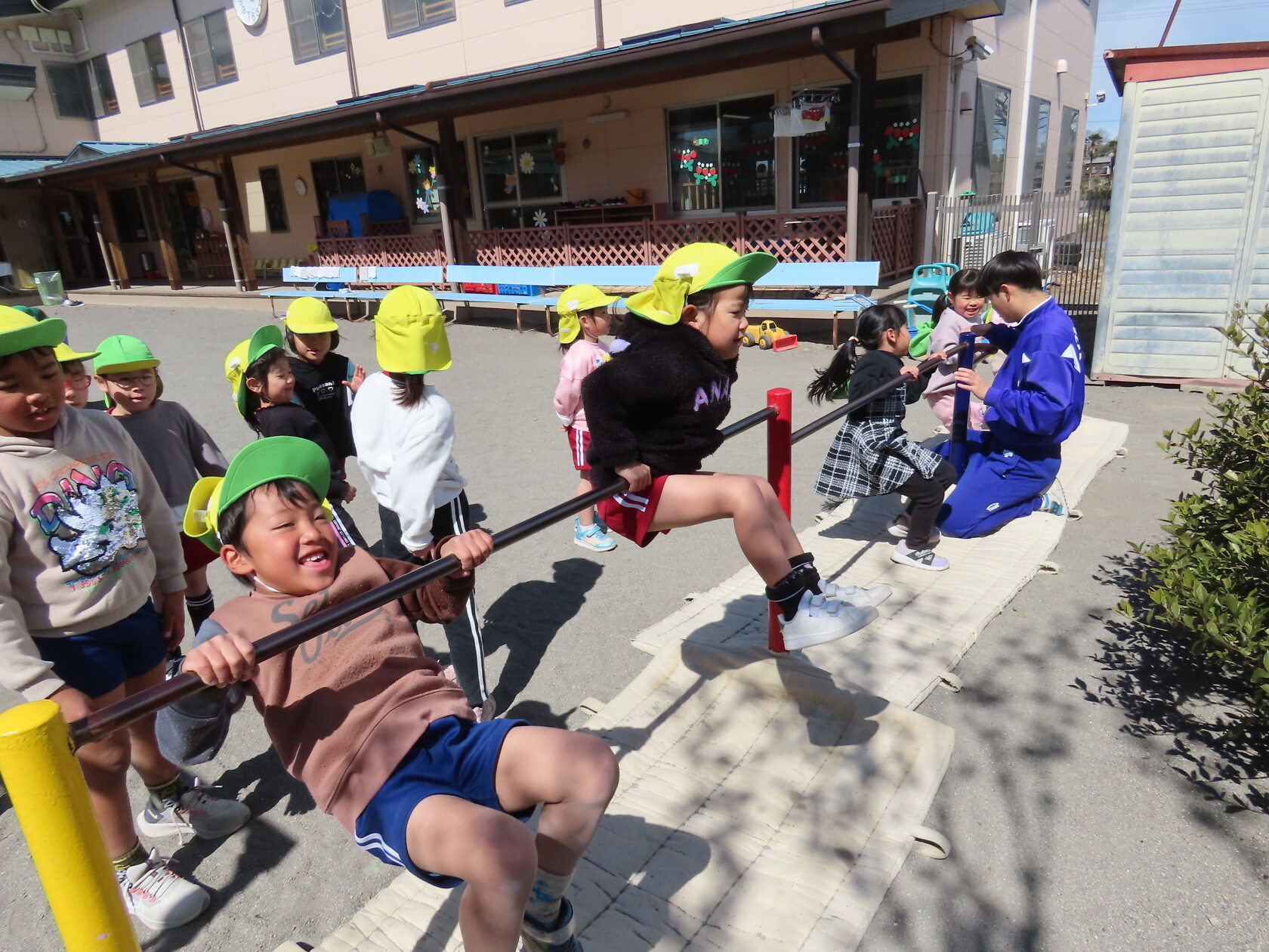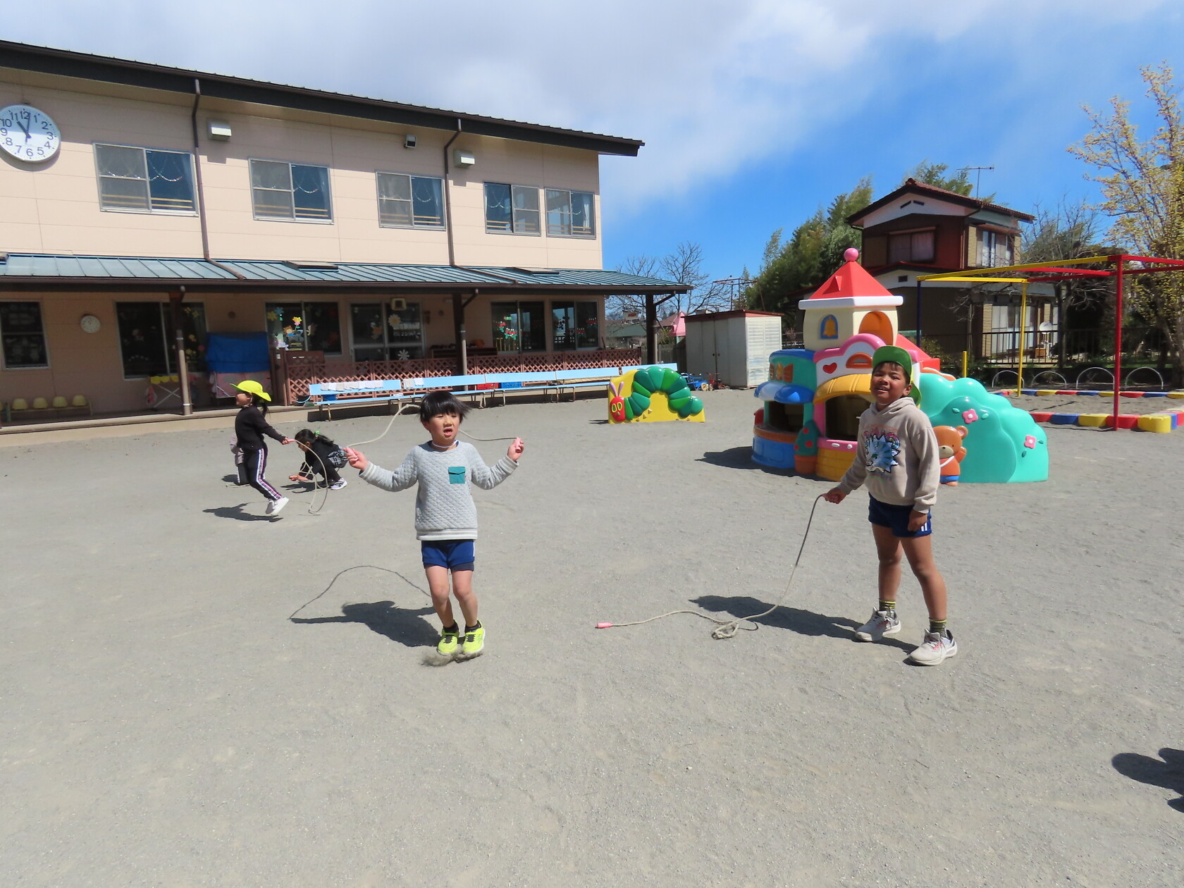 今日のできごと(ひまわり) 公開済み: 2024年3月21日更新: 2024年3月21日 今日は保育園最後の体育指導でした😊 すみれ組で回してピョン!からはじまったなわとびも沢山跳べるようになったり、鉄棒での逆上がりも上手になりました✨ 今日は最後にドッヂボールも楽しみました。 卒園式の練習も頑張っています。 おやつのあとにお楽しみがありました是非感想を聞いてみて下さい😌