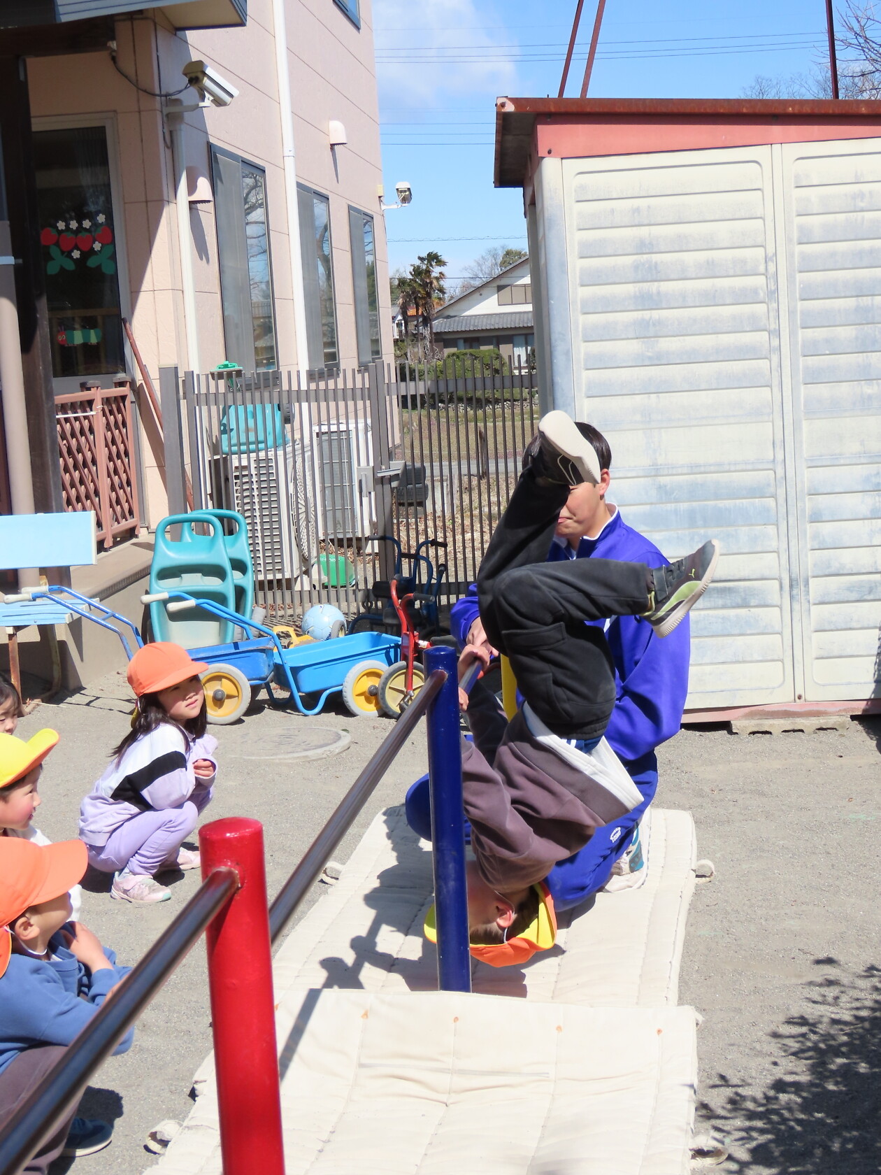 鉄棒やなわとびでは1年間の成果が出て、沢山のお友達が逆上がりが出来るようになったり、なわとびが沢山跳べるようになりましたね😆