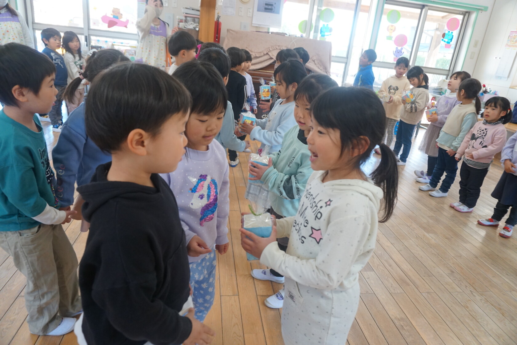 今日のできごと(ひまわり&ゆり) 公開済み: 2024年3月22日更新: 2024年3月22日 今日はゆり組からひまわり組へ卒園おめでとうのプレゼントを渡しました!! ゆり組が一生懸命つくった「えんぴつ立て」にひまわり組は大喜びでした😁