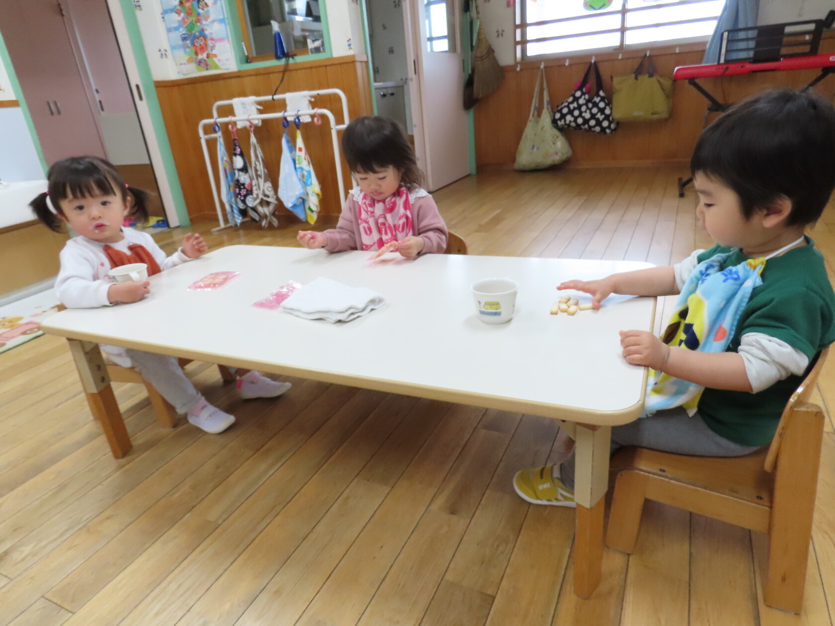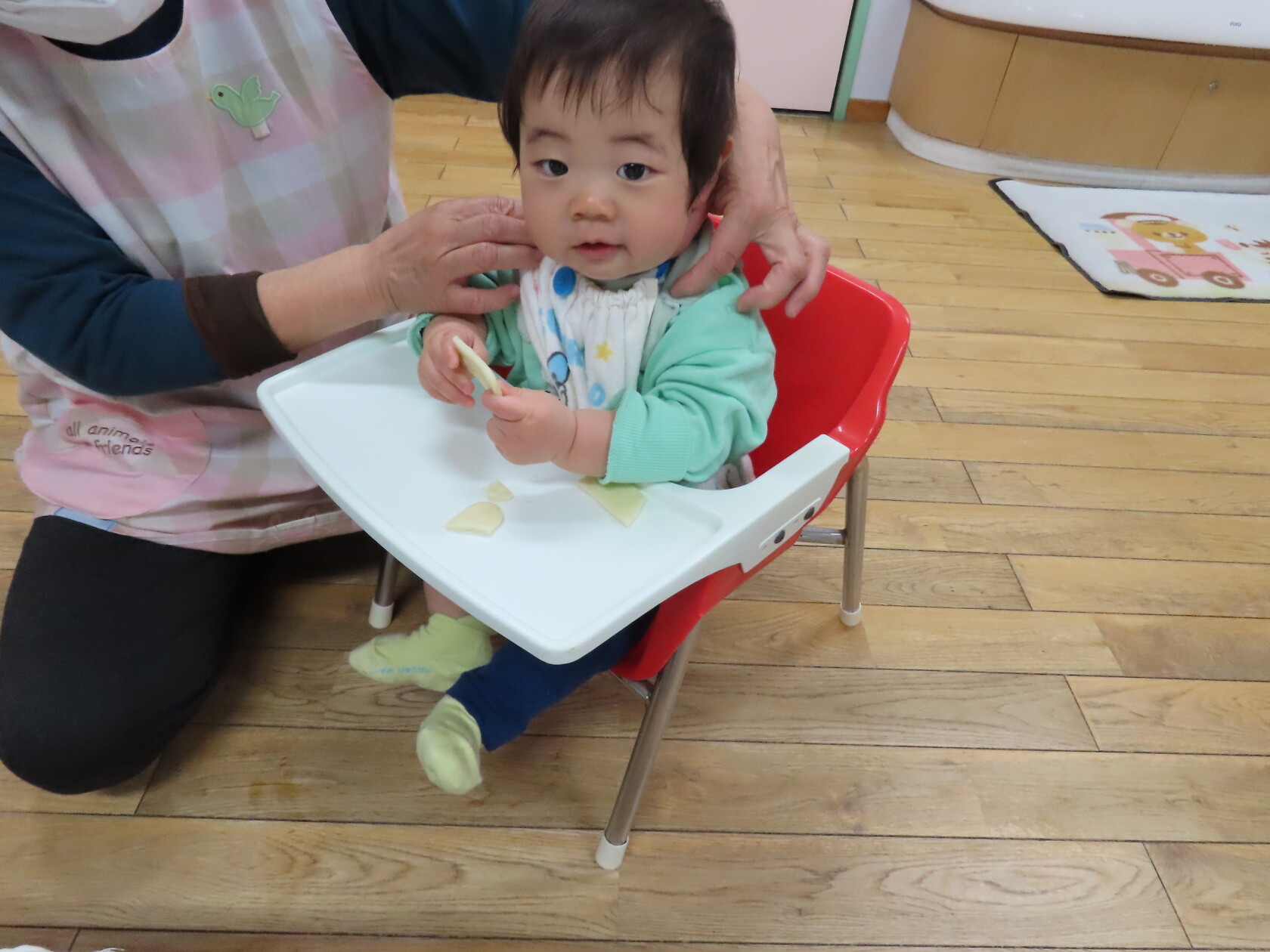 今日のできごと(さくら) 公開済み: 2024年4月9日更新: 2024年4月9日 令和6年度さくら組がスタートし、一週間がたちました😊 泣いていた0歳児さんは、時々泣き止んでこちらを見てくれる時間もあり、少しずつではありますが、担任に慣れてきているようです🎵 1歳児さんは、3人での行動が主にはなりますが、お部屋では仲良く過ごしています😊 部屋の移動はなく、慣れ親しんだ担任ですので、笑顔を沢山見せてくれます✨ 少人数ではありますが、みんなで楽しく過ごしていけたらと思います🎼 今日は、製作で手形を押し、みんなニコニコ笑顔でできました👏