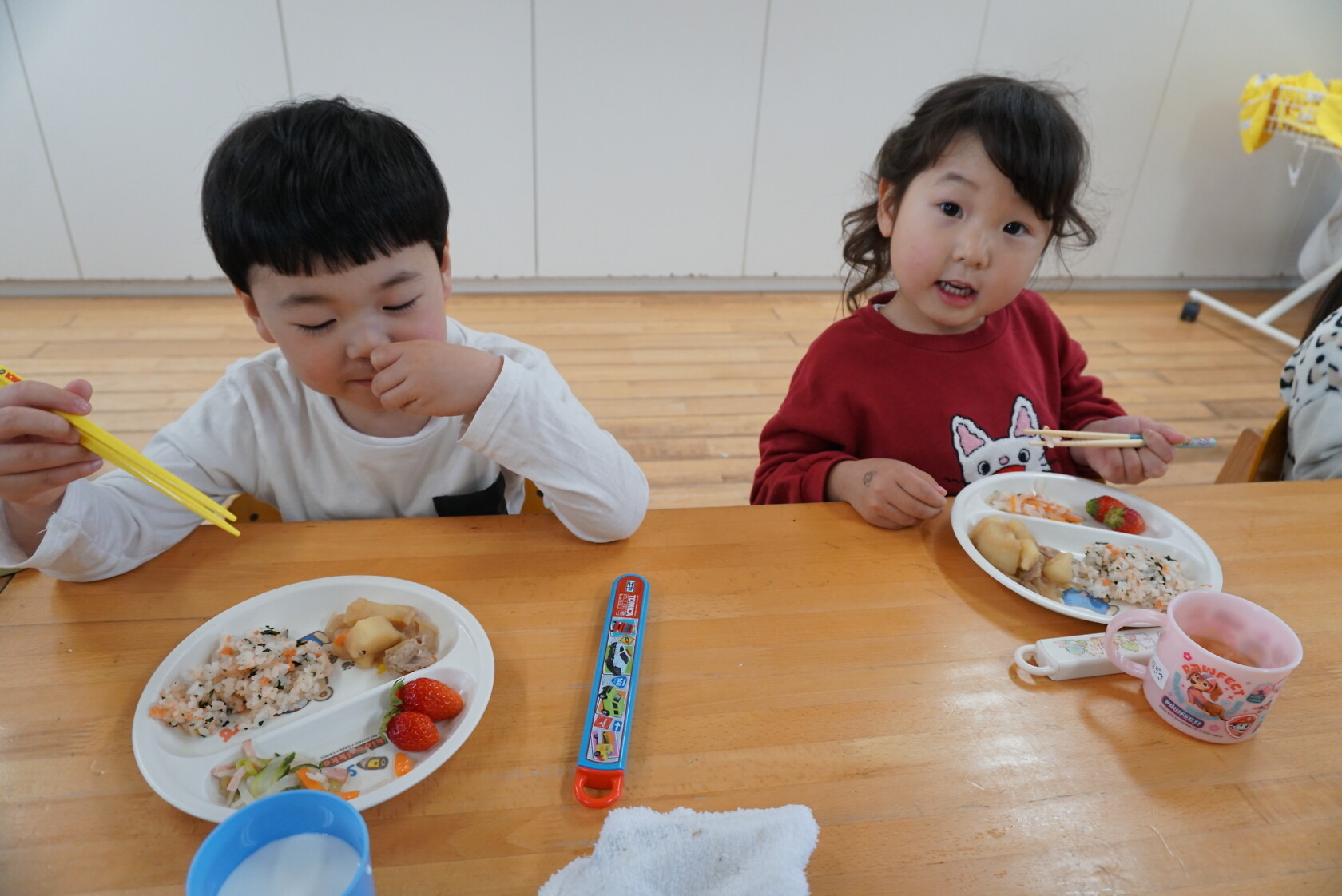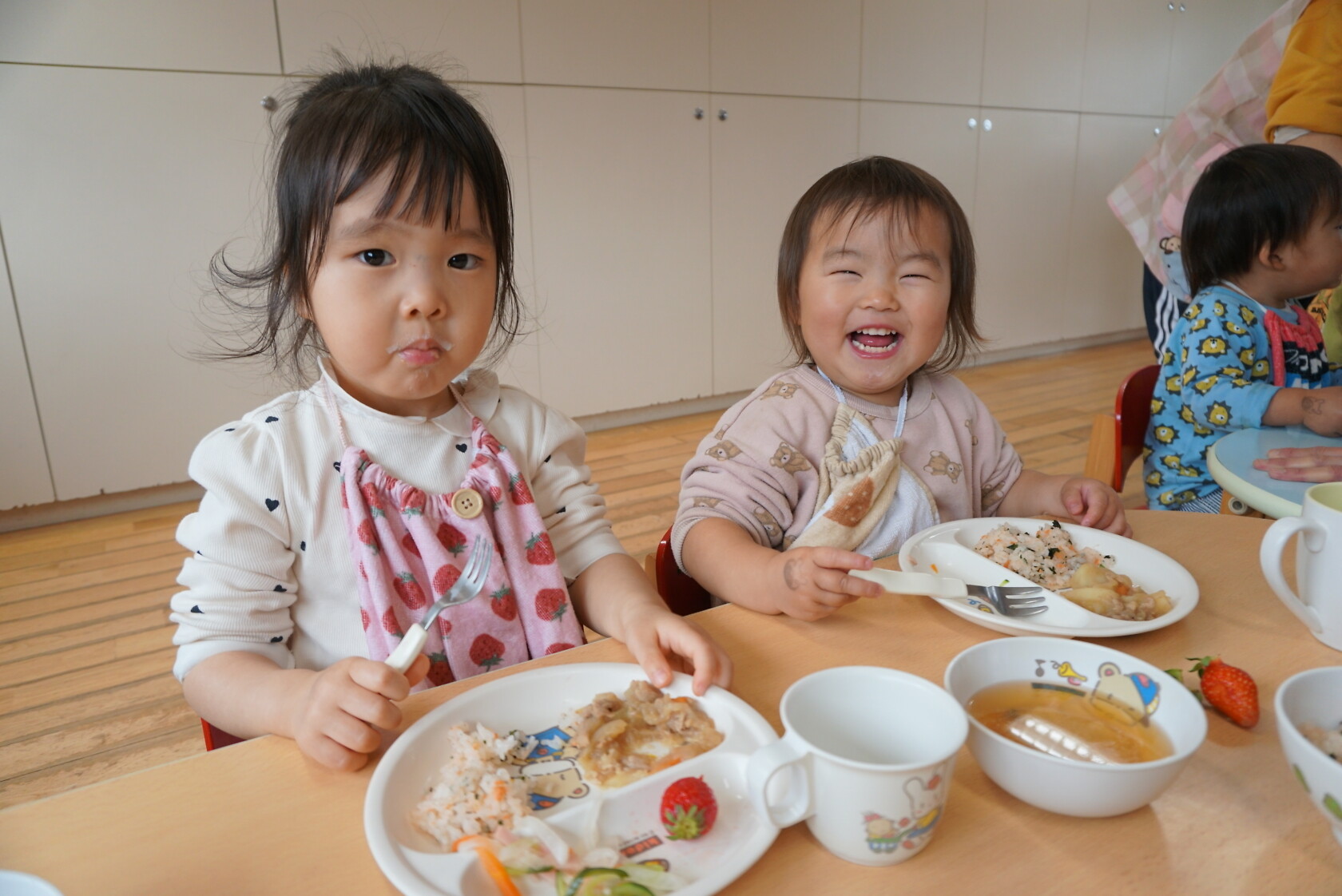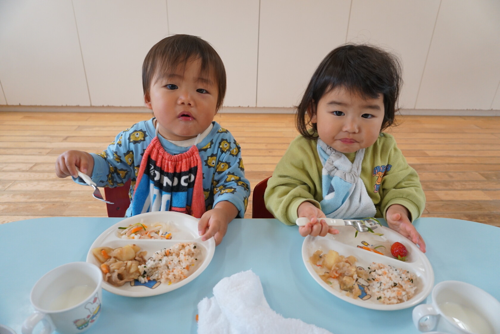 今日は新入園児のはじめての給食でした!