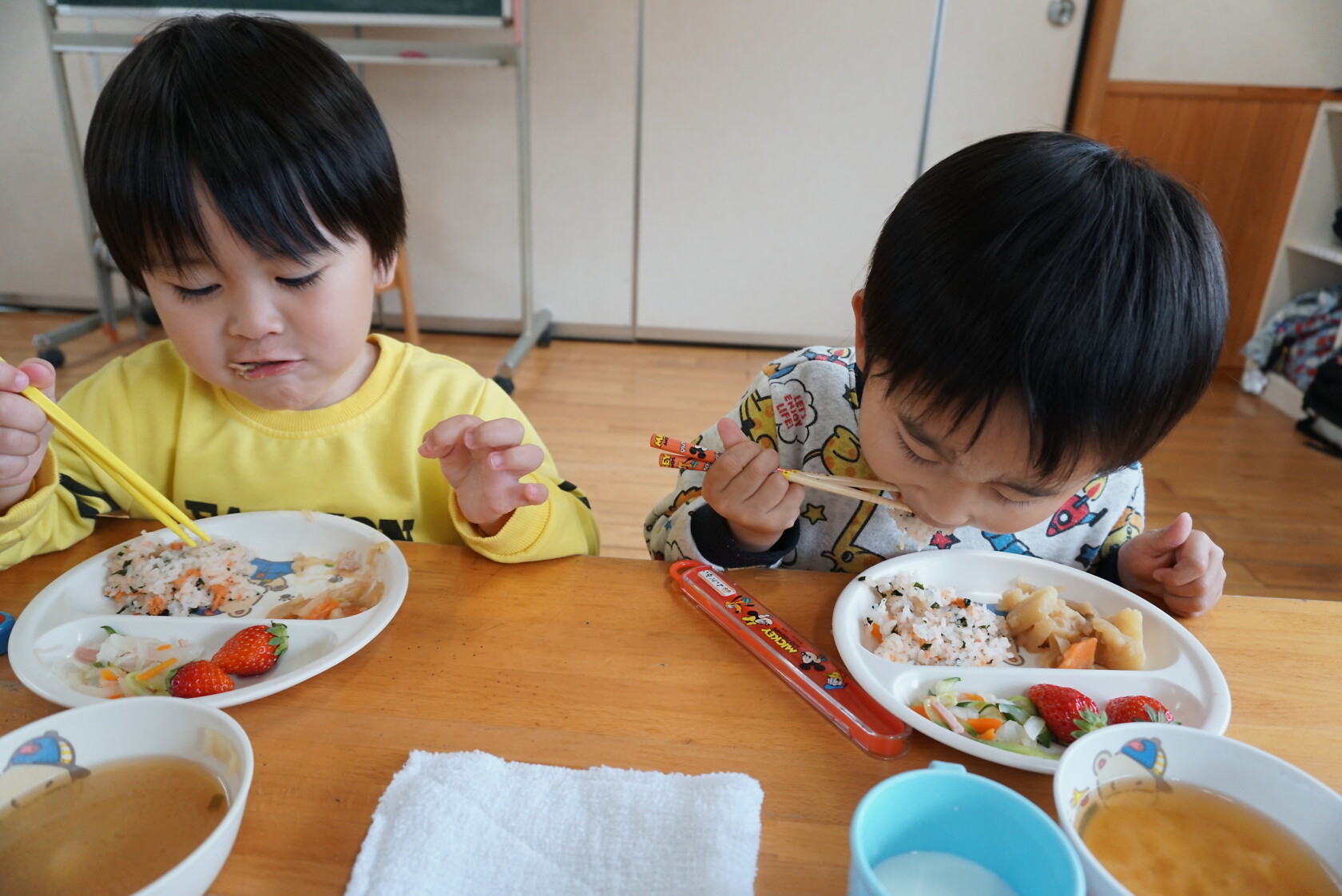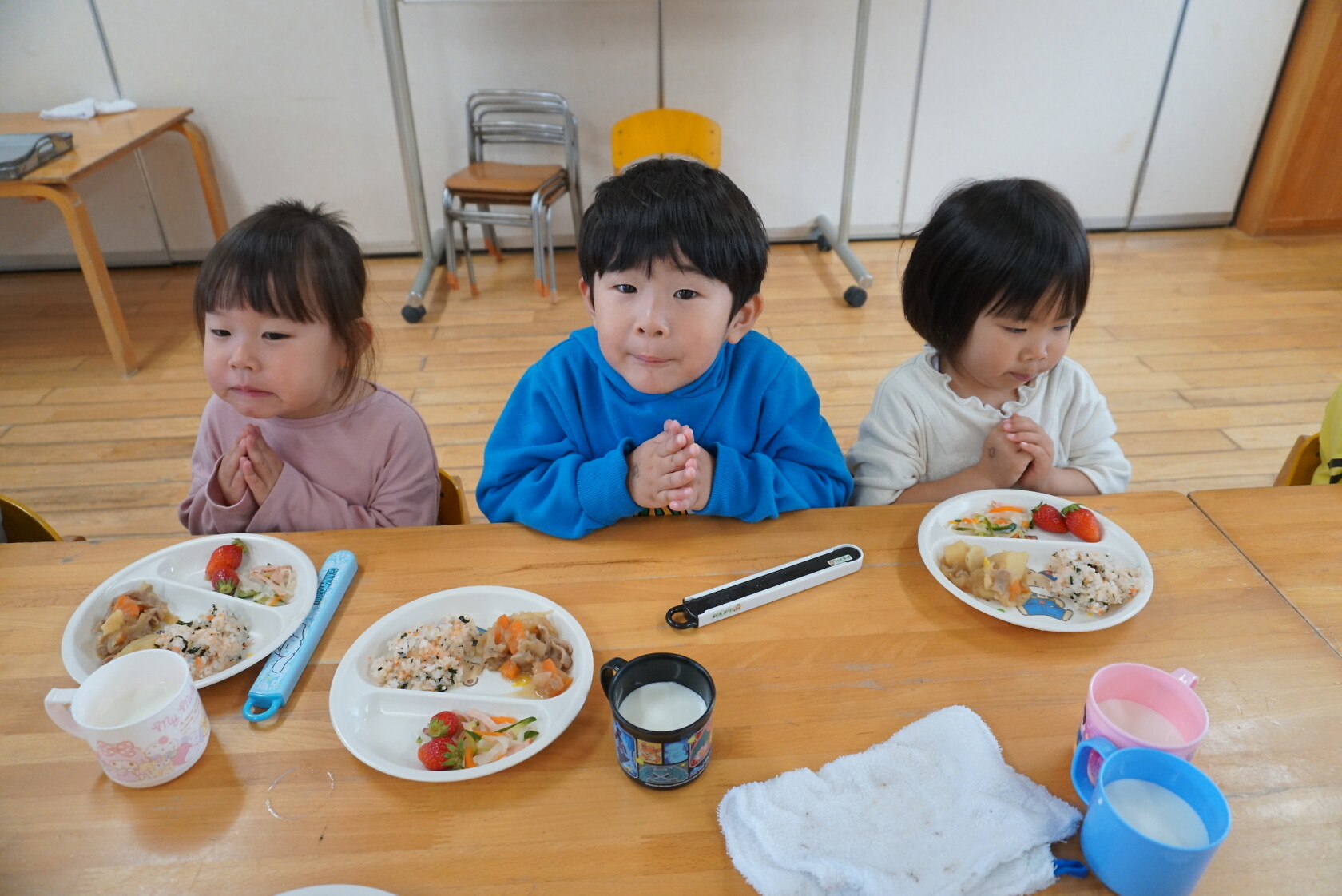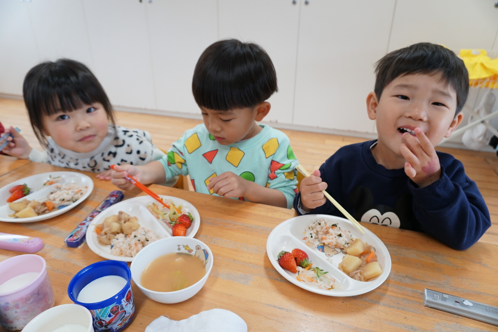 今日は新入園児のはじめての給食でした!