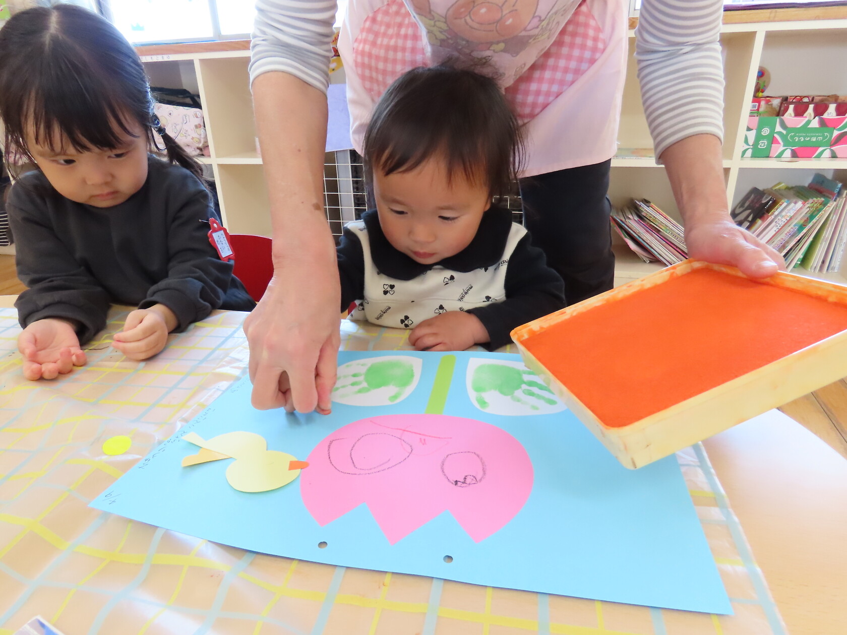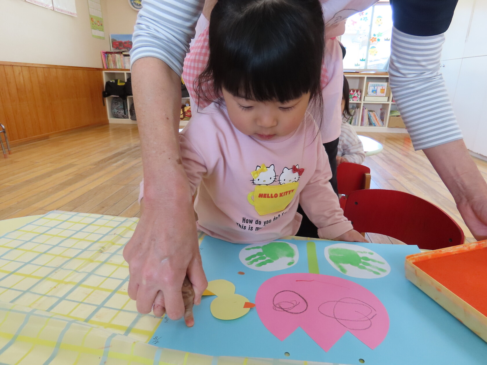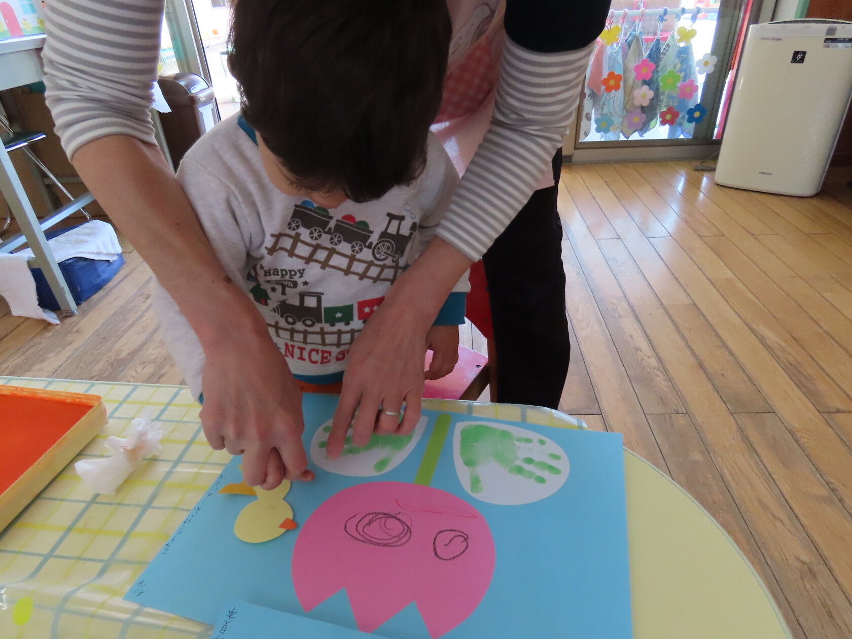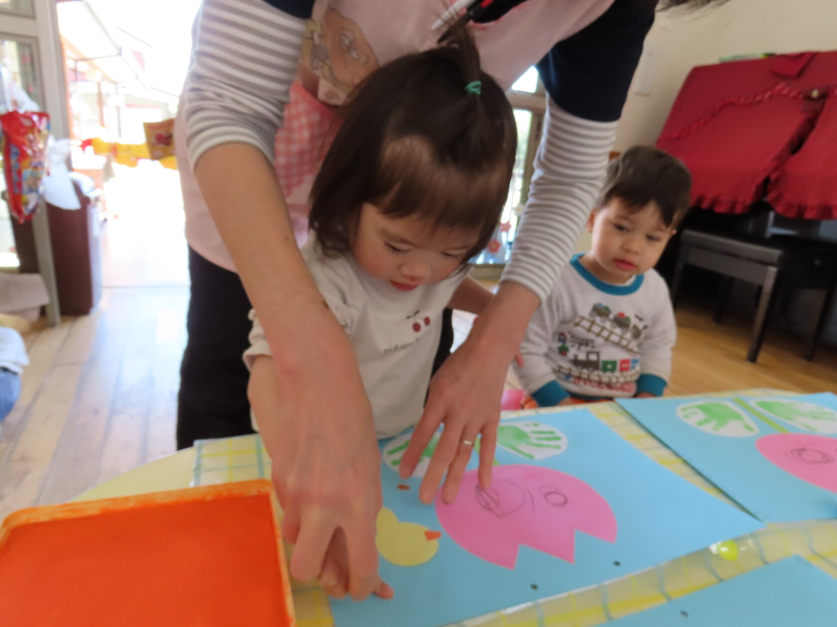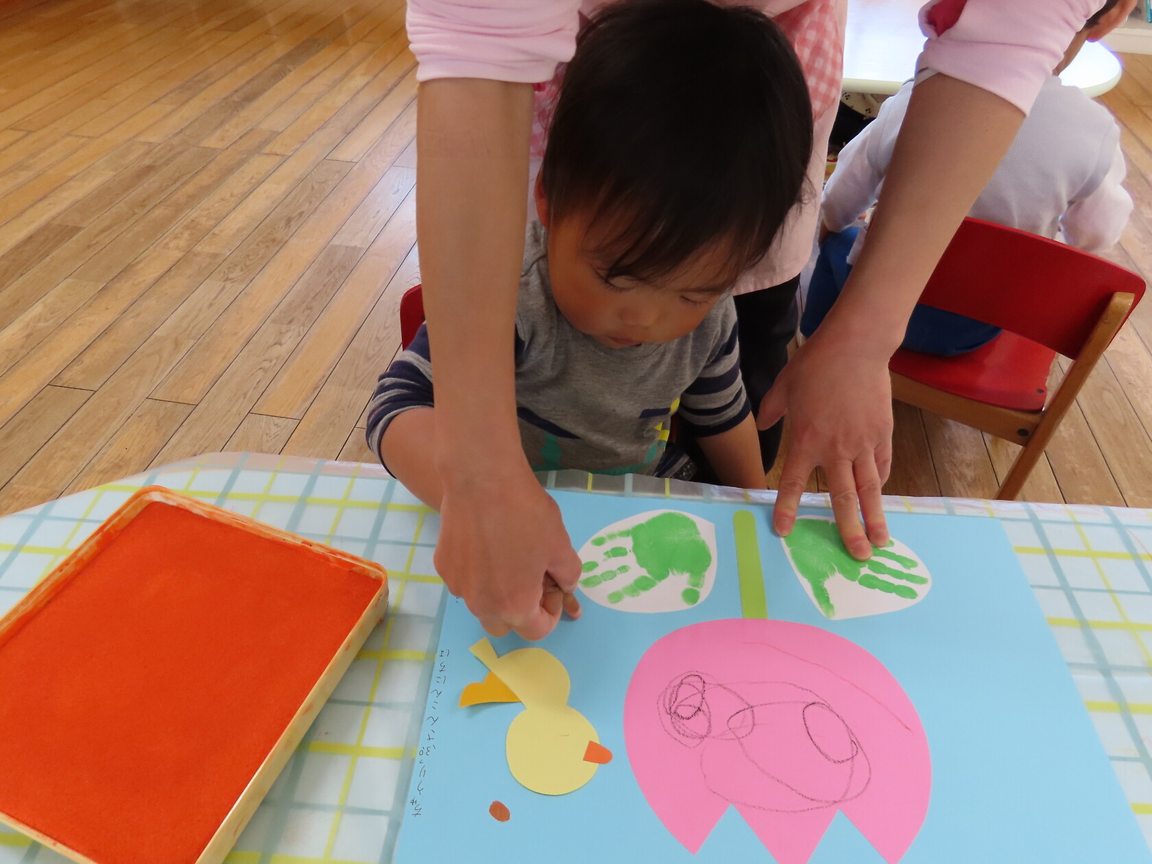 今日のできごと(ちゅうりっぷ) 公開済み: 2024年4月10日更新: 2024年4月10日 入園、進級して早10日が経ちました。 子ども達も新しい環境になれ、ロッカーや下駄箱など 自分の場所を覚えてきました👏 今日は、4月の製作の指押しスタンプをしました。 できあがりが楽しみです!😊✨