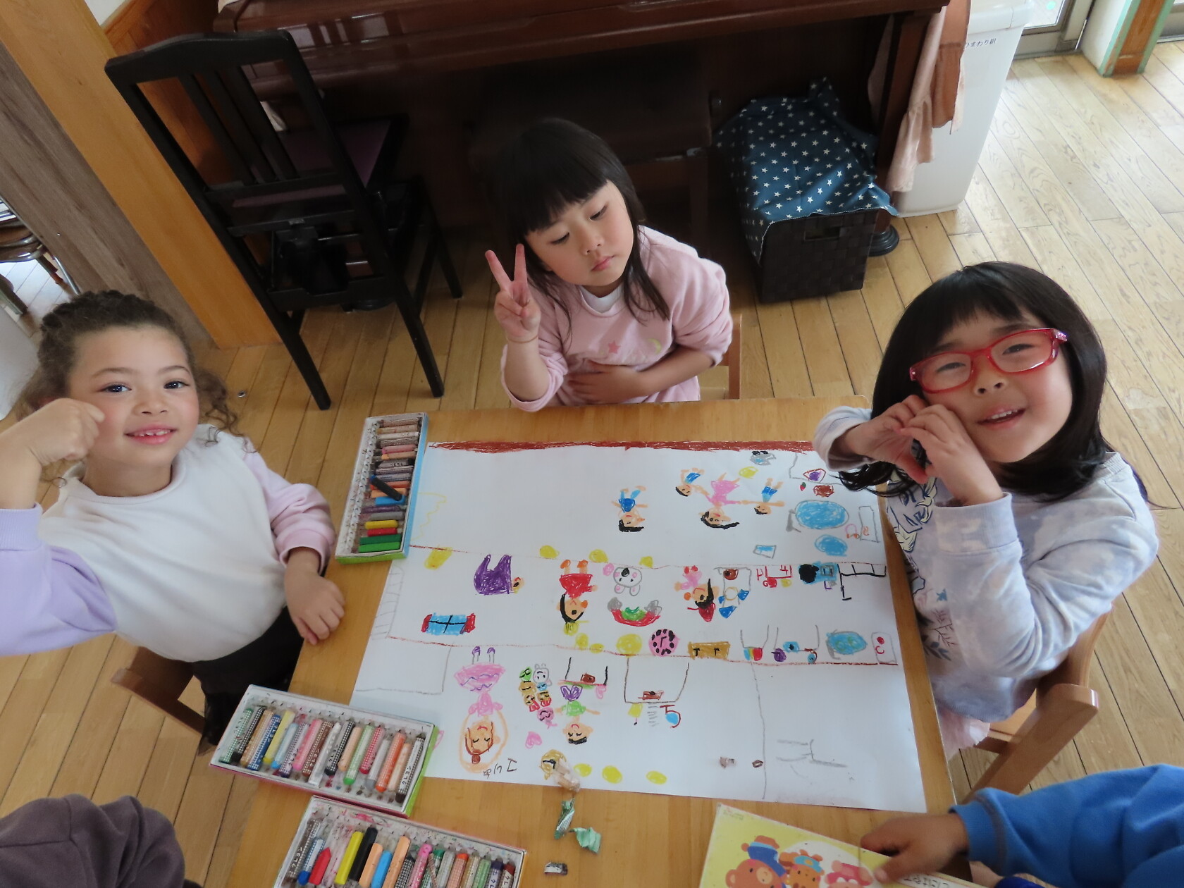 今週のできごと(ひまわり) 公開済み: 2024年4月12日更新: 2024年4月12日 今週は今年度初めての事が沢山ありました! 移動図書に体育指導、どちらも大喜びの子ども達😆 グループごとに街を書いたり、家を書いたりもしました😊 初めての文字の練習も意欲的に取り組み、楽しそうに練習をしていました☺