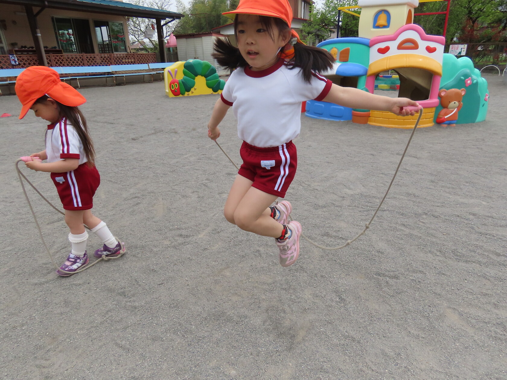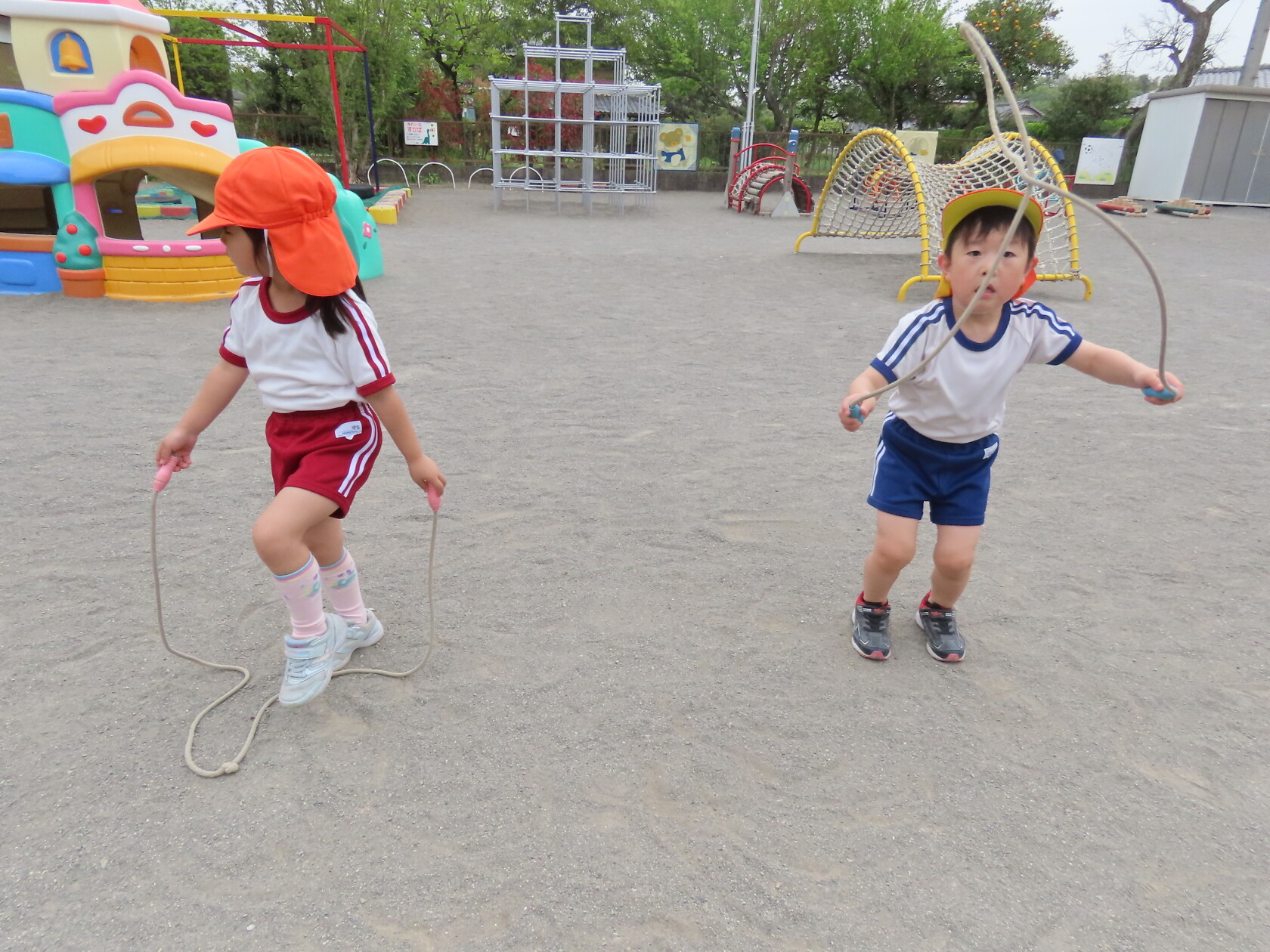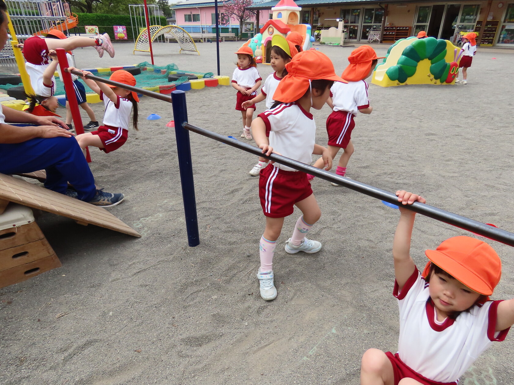 今日のできごと(ゆり) 公開済み: 2024年4月18日更新: 2024年4月18日 今日は体育指導のマラソンや鉄棒、縄跳びをしている姿を撮りました📸 鉄棒では二人が補助無しで逆上がりができ、残りの子も頑張って回る練習をしています😊 縄跳びも跳んだら手を横にすることを意識して徐々に縄に引っかかることが少なくなってきました✨ 来週も楽しみにしていてくださいね💕