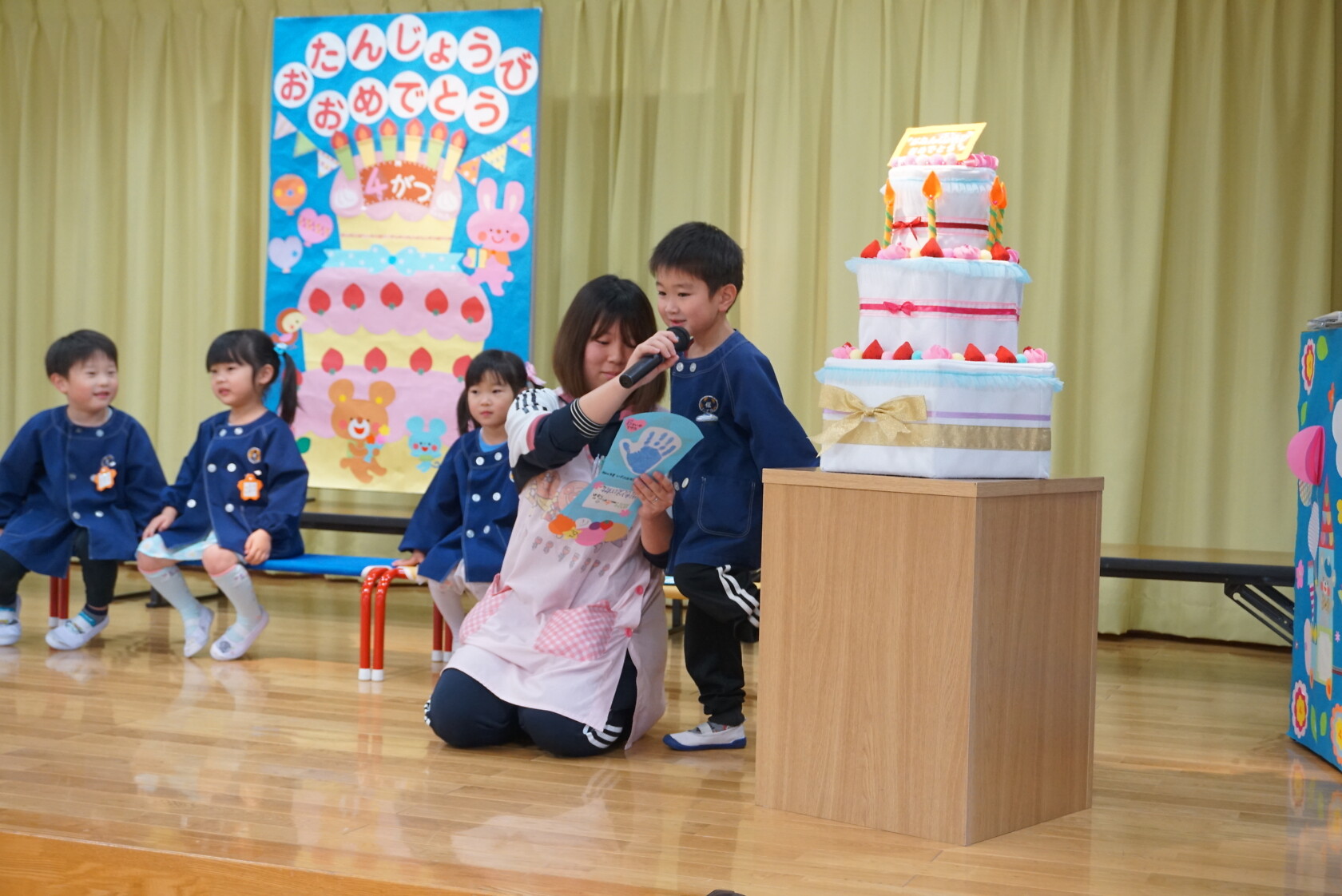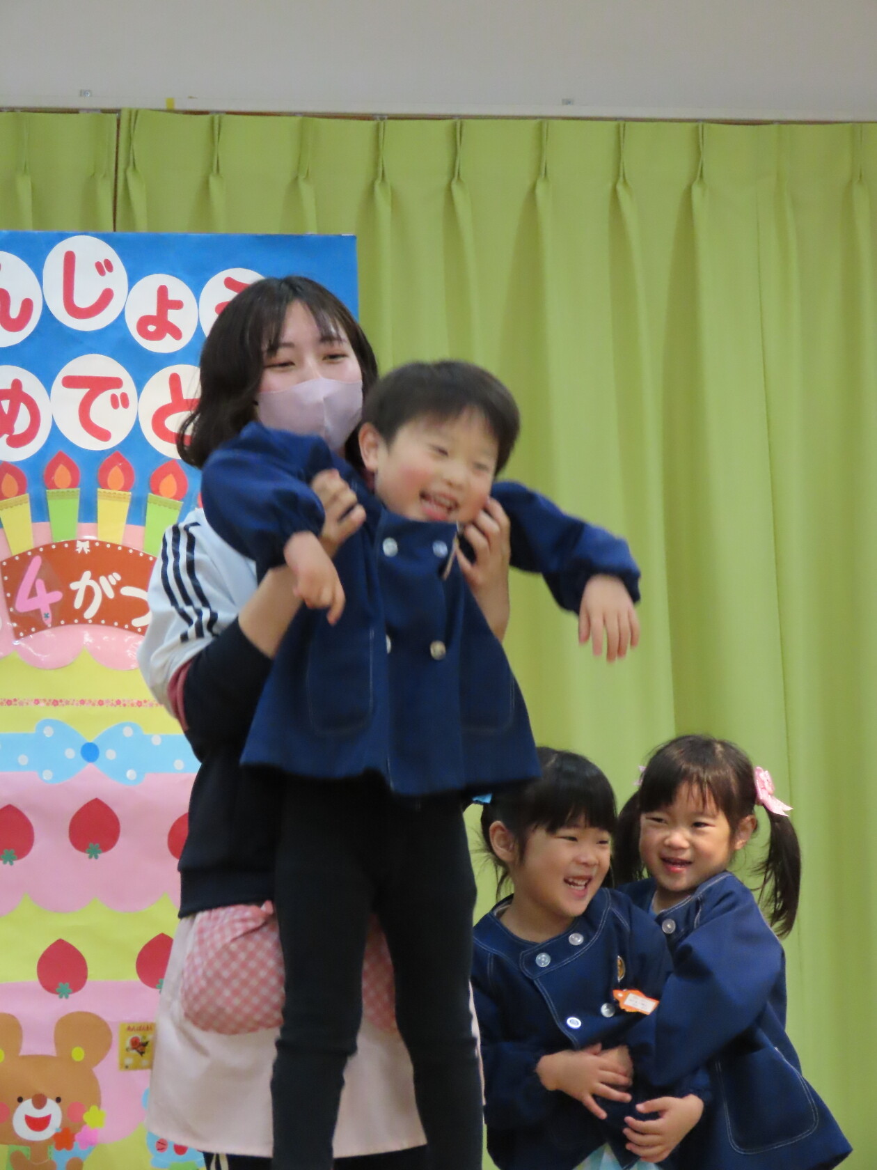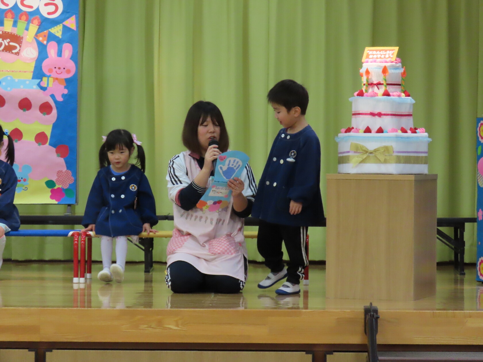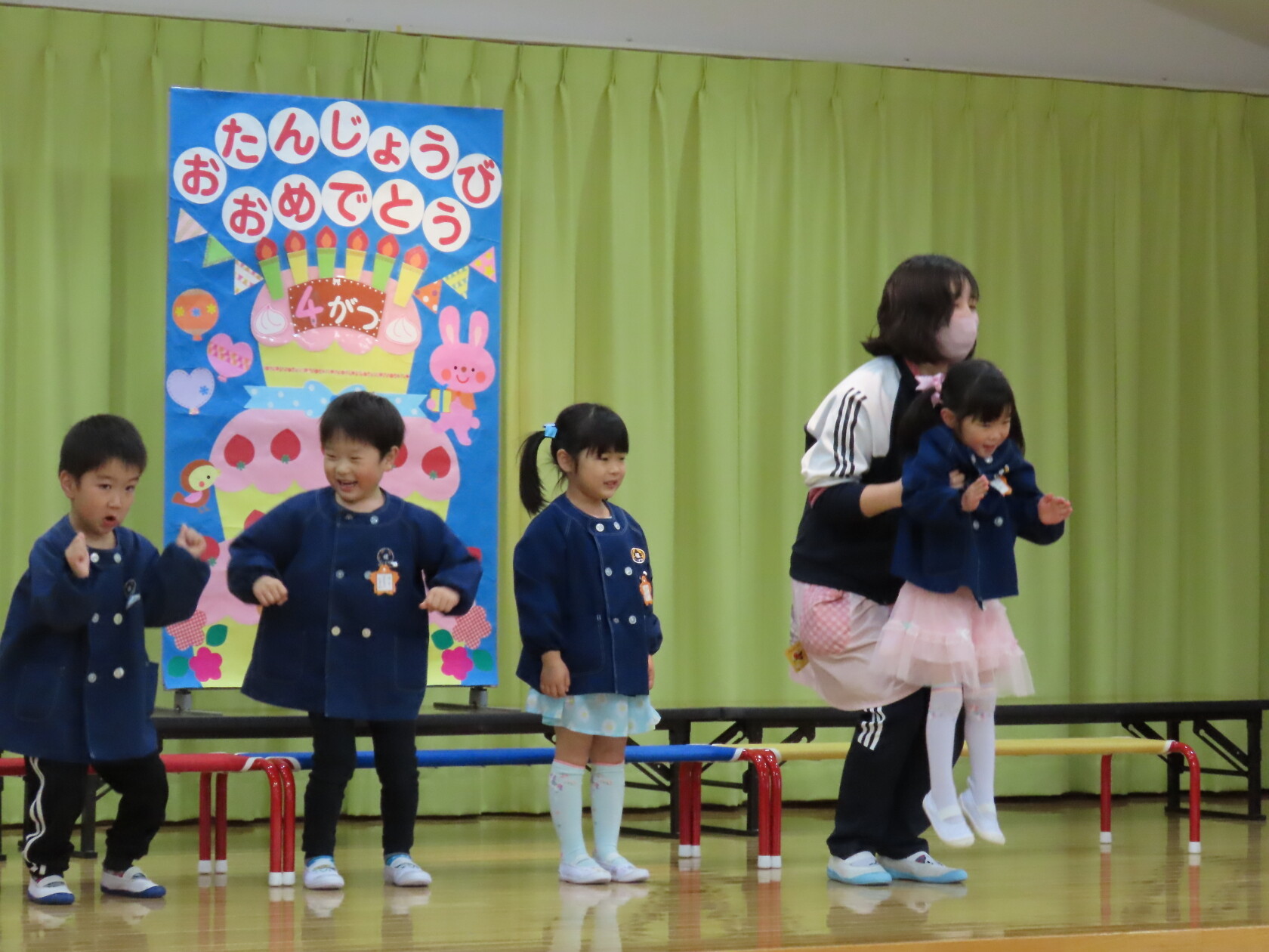 お誕生会(以上児) 公開済み: 2024年4月24日更新: 2024年4月24日 4月生まれのおともだちのお誕生会でした!! 大きな声でお誕生カードの発表が出来ました👏 今月の歌のプレゼントは ひまわりぐみ「小さな世界」「ともだちになるために」 ゆりぐみ「さんぽ」「わらいごえっていいな」 すみれぐみ「てんとう虫のお話し」「宇宙船のうた」 でした🎵 4月生まれのおともだち、お誕生日おめでとうございました🎂