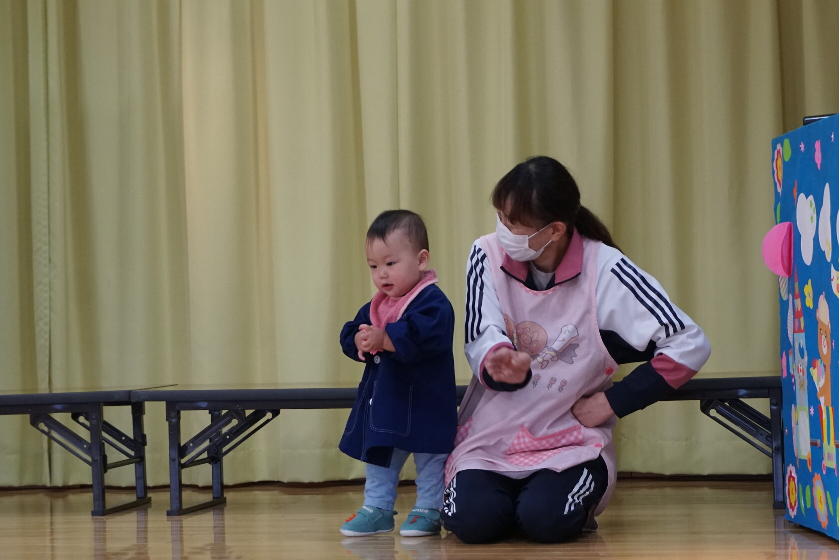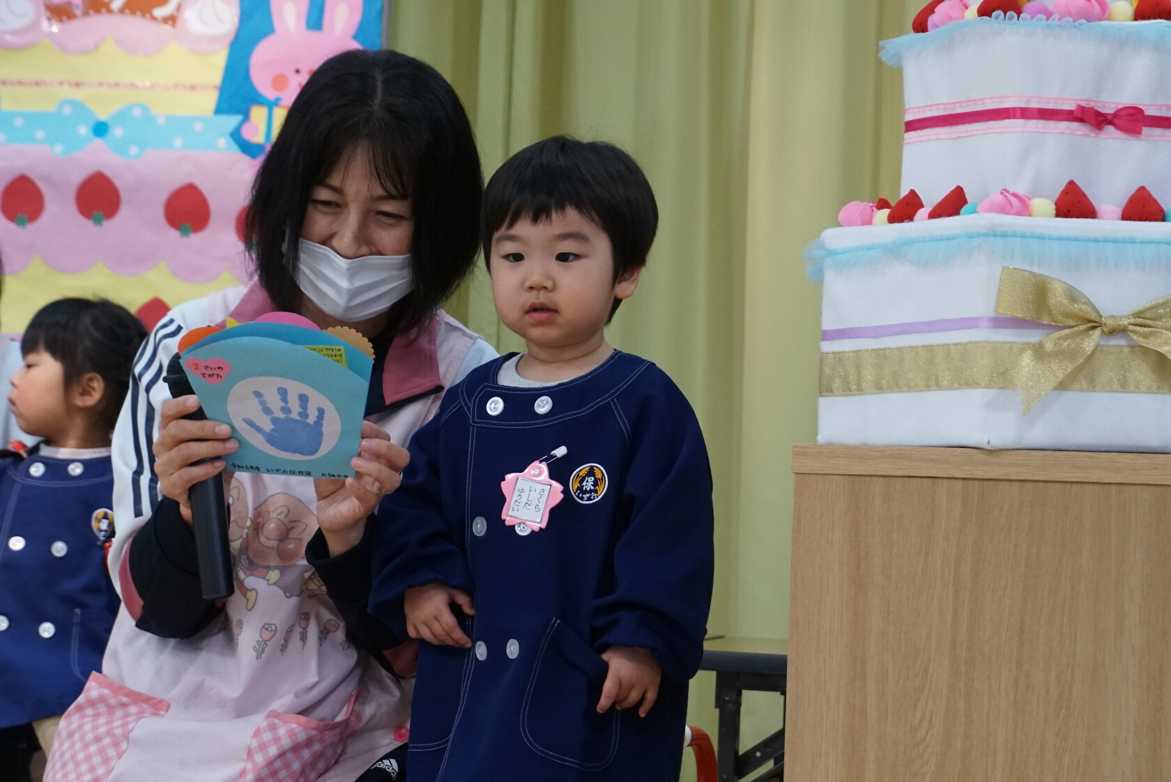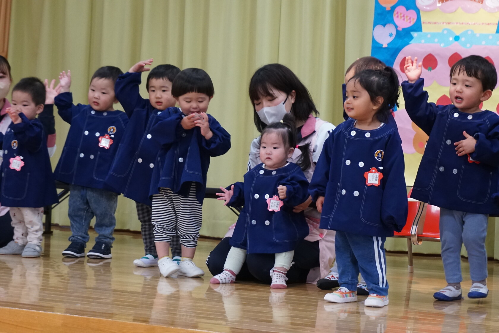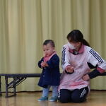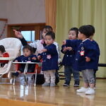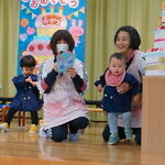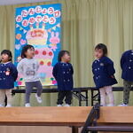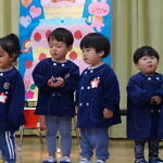 歌のプレゼントは小規模さんは「アンパンマン」の手遊び「ポンポンポンと春がきた」