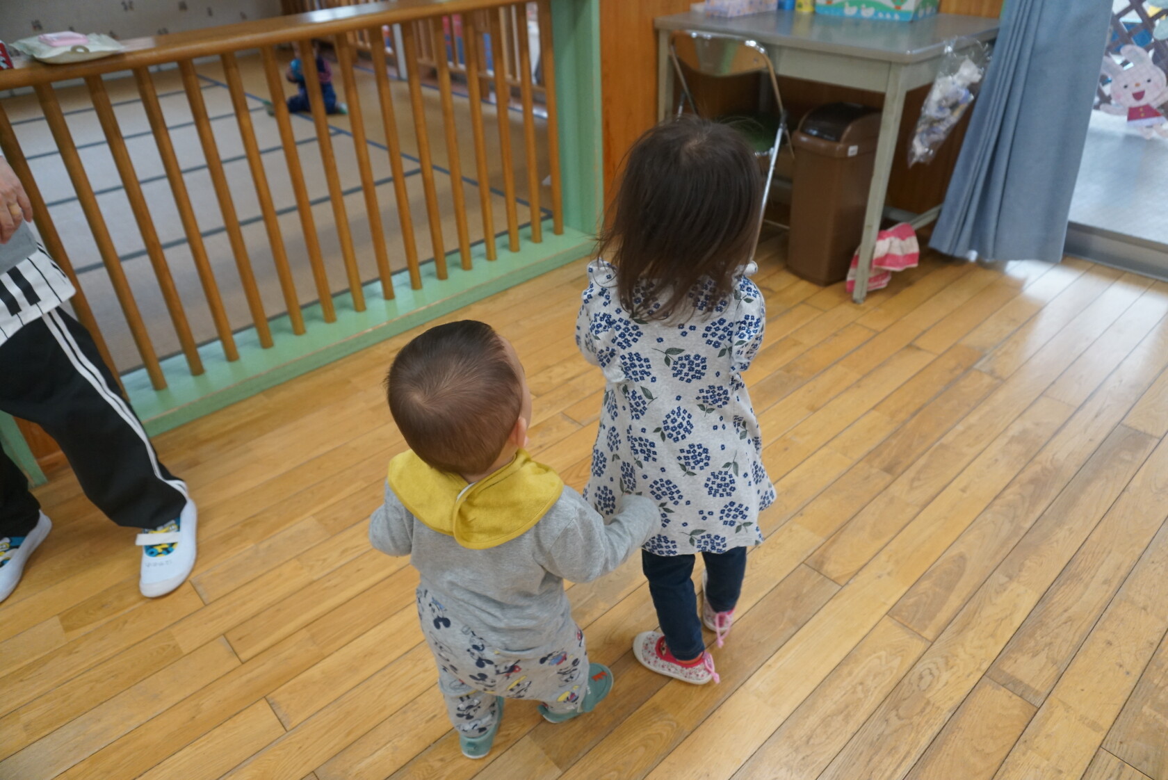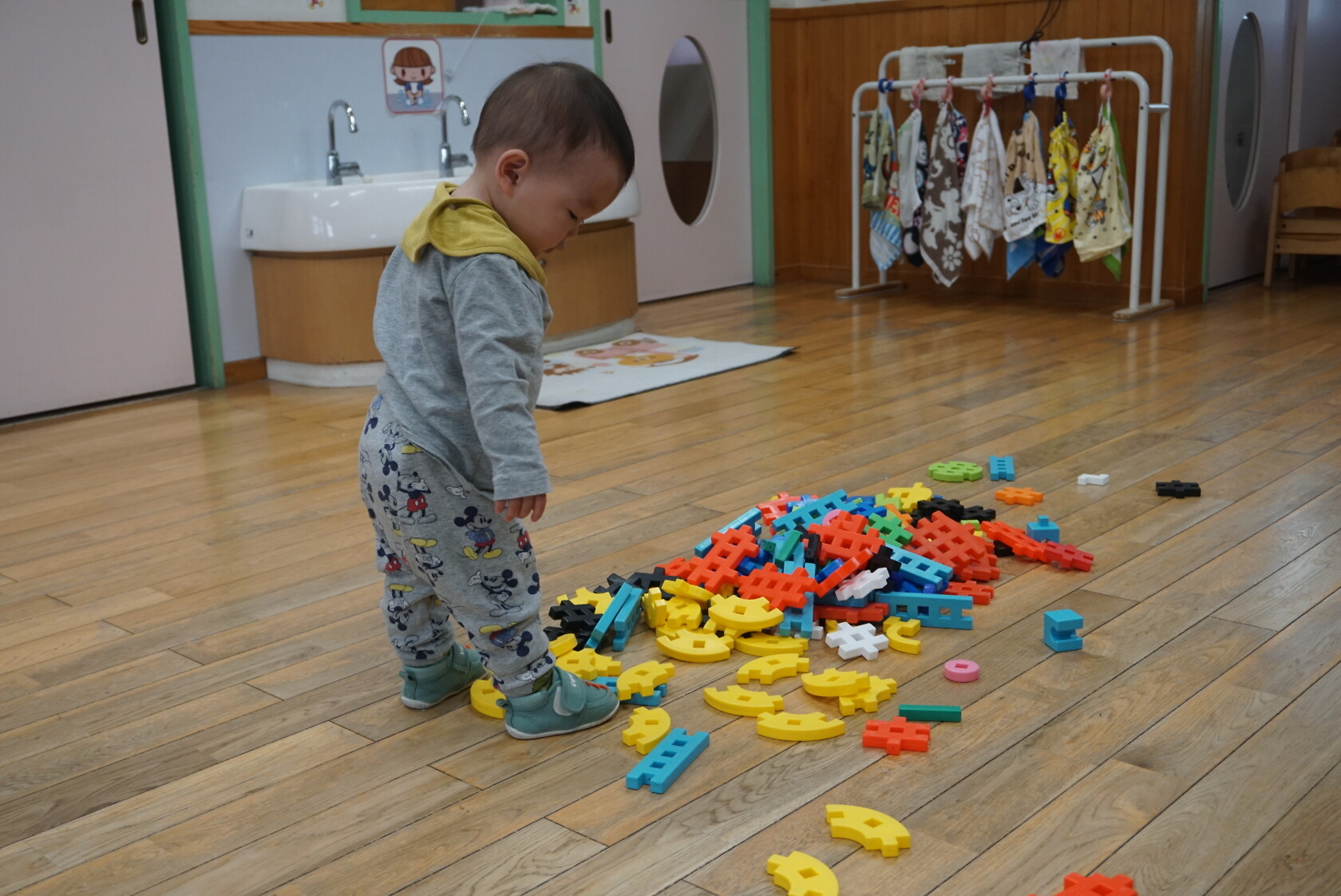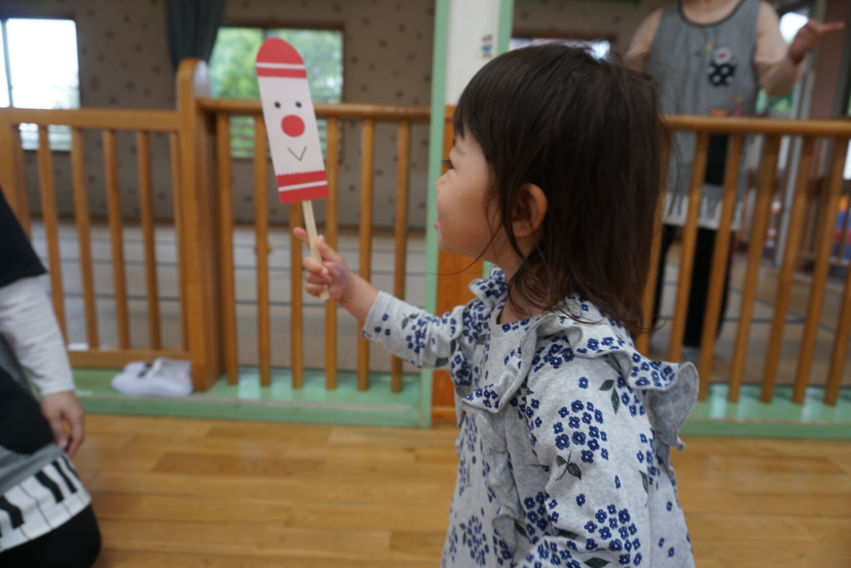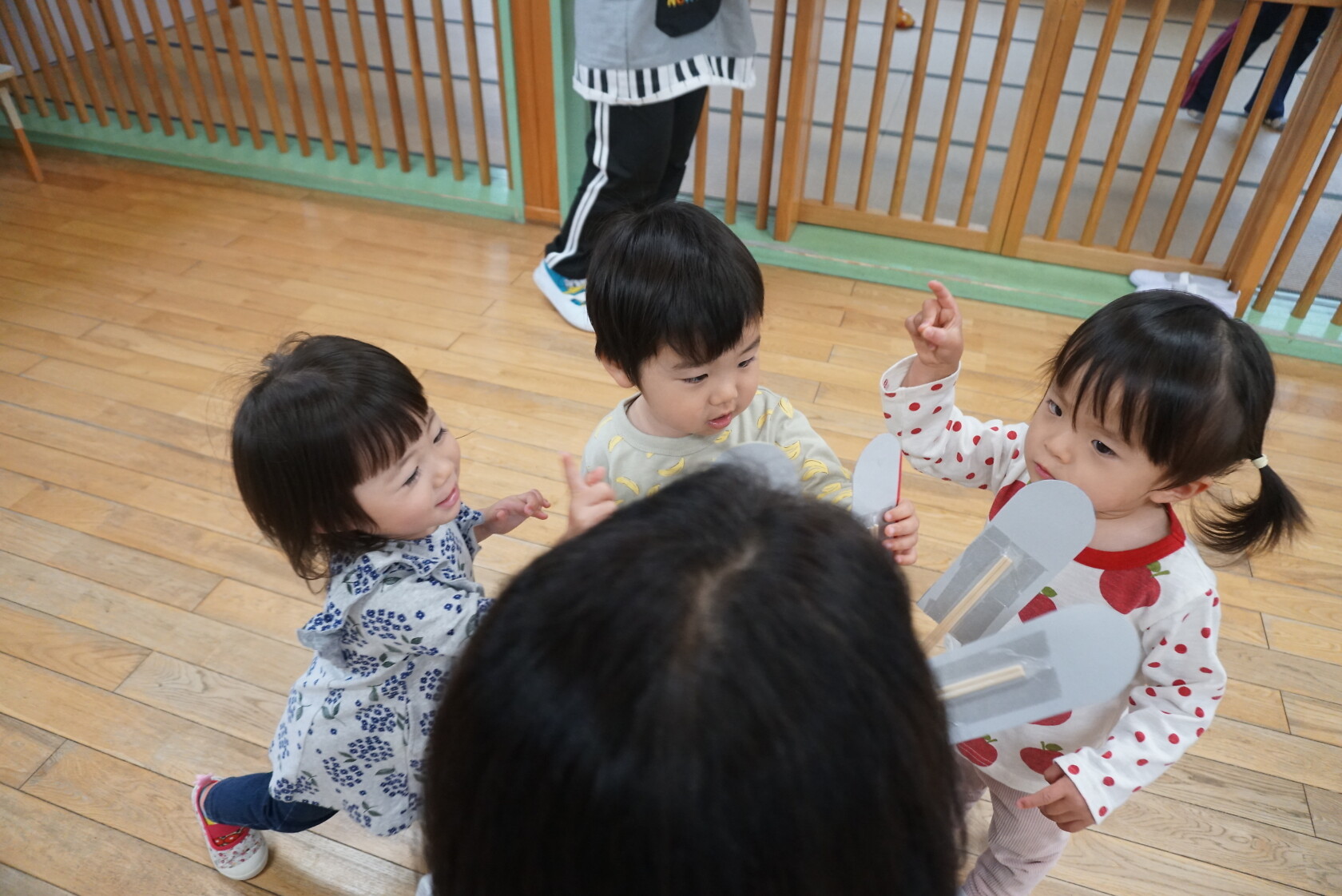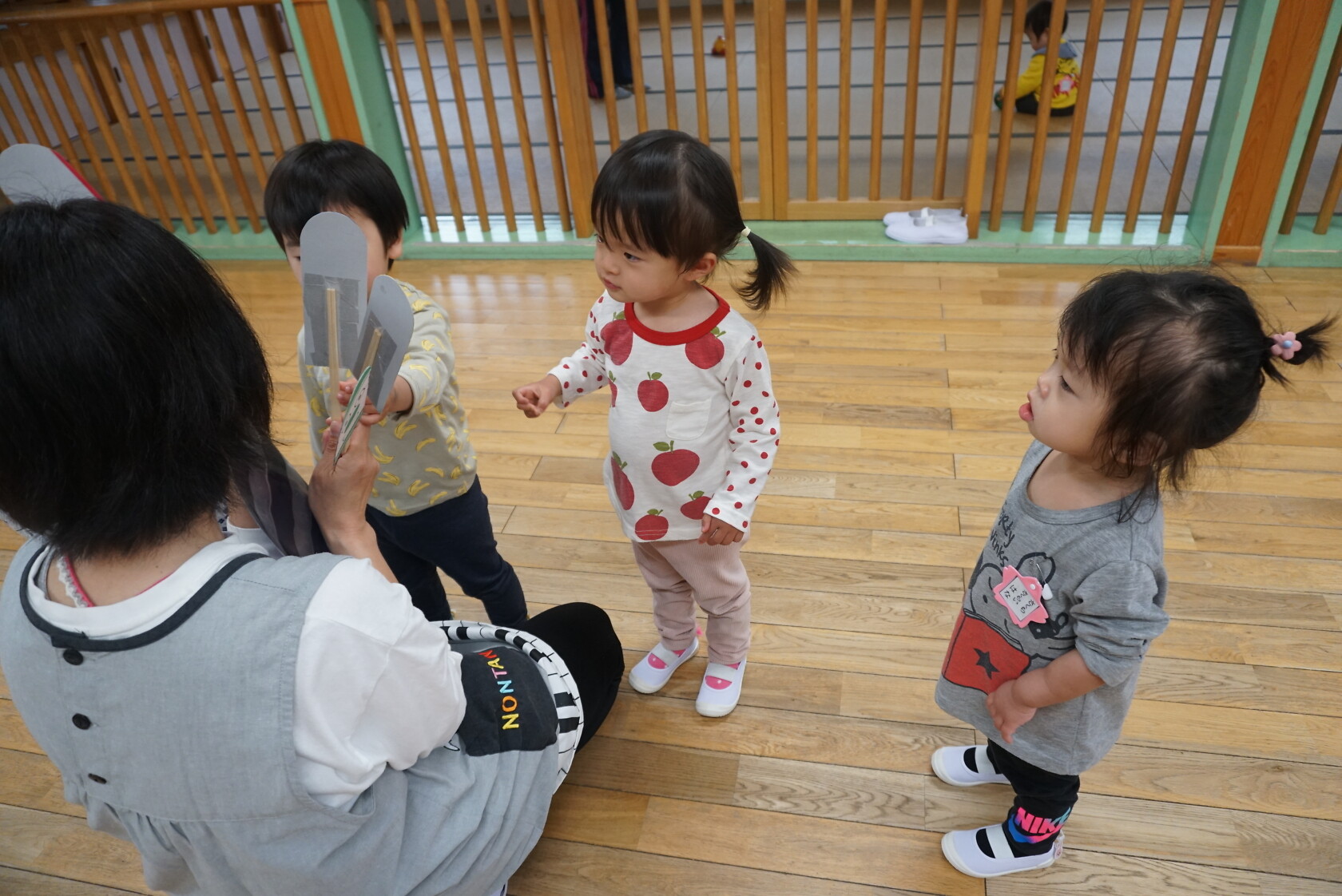 今日のできごと(さくら) 公開済み: 2024年5月7日更新: 2024年5月7日 ゴールデンウィークが明け、今日はみんなのニコニコ笑顔が見られホッとしています。お休み中は、ご家族でゆっくり過ごせたようですね😊 今日はお部屋での様子をパシャリッ📸「どんな色がすき」の曲に合わせてみんなでペープサートをしました!!曲に合わせてふってみたり、色を覚えることもできるので一緒に口にだして言いながら楽しむことが出来ました。 0歳児さんも、畳の部屋を自由に動いて遊び、呼びかけにニコニコ笑顔をふりまいてくれるようになりました!!