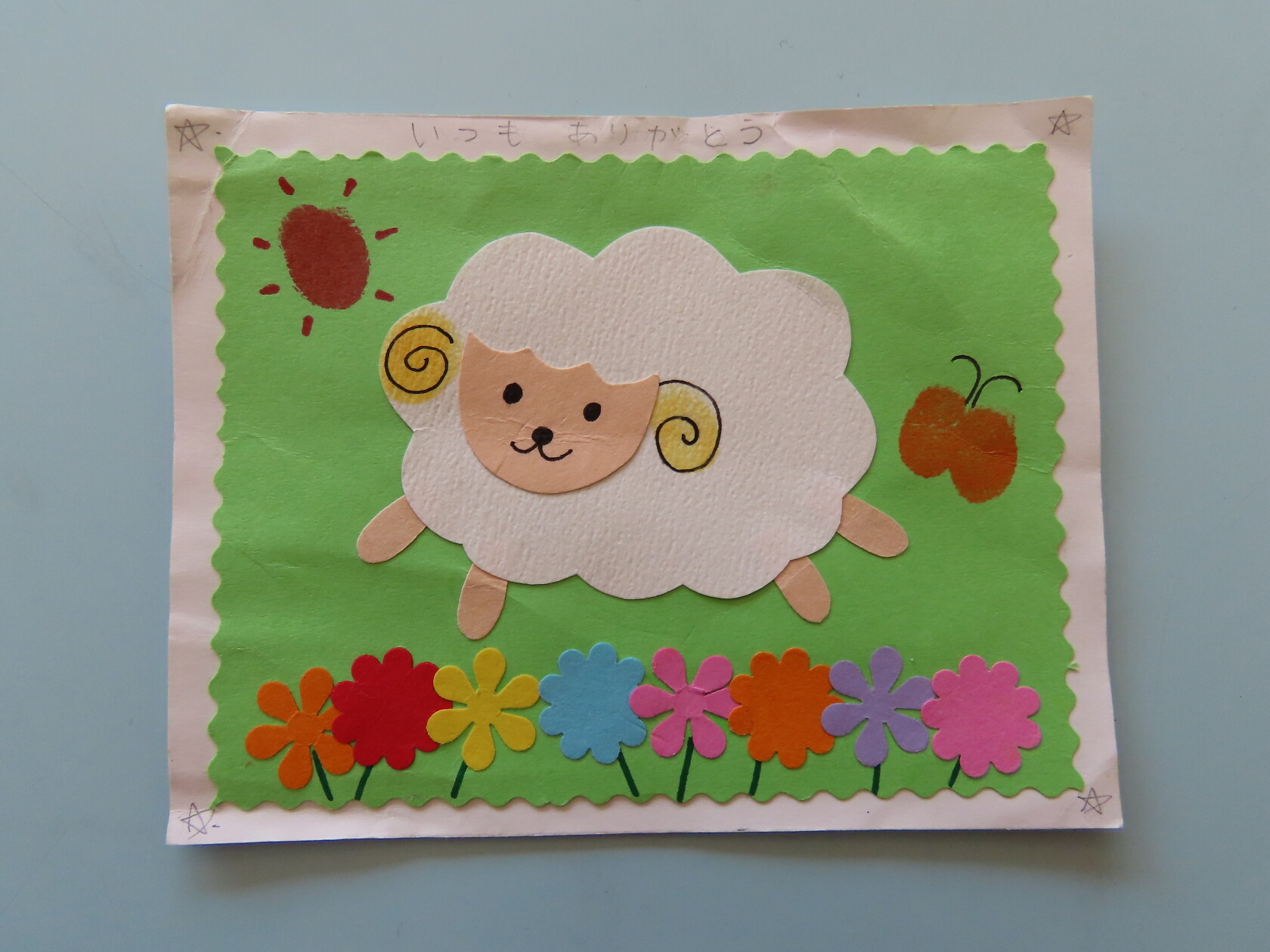 母の日のプレゼント持ち帰り(さくら・小規模さくら) 公開済み: 2024年5月10日更新: 2024年5月10日 今日は、母の日のプレゼントを持ち帰ります🎵 指押しで蝶々、太陽、ひつじの角などを押してみました💫 子ども達が一生懸命作り、可愛いらしく仕上がったので是非使って下さいね💕🌼