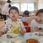 今日の給食は、カレーでした。 カレーが苦手な子も中みんな口の周りにカレーを沢山つけながら美味しく食べました💕