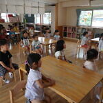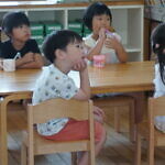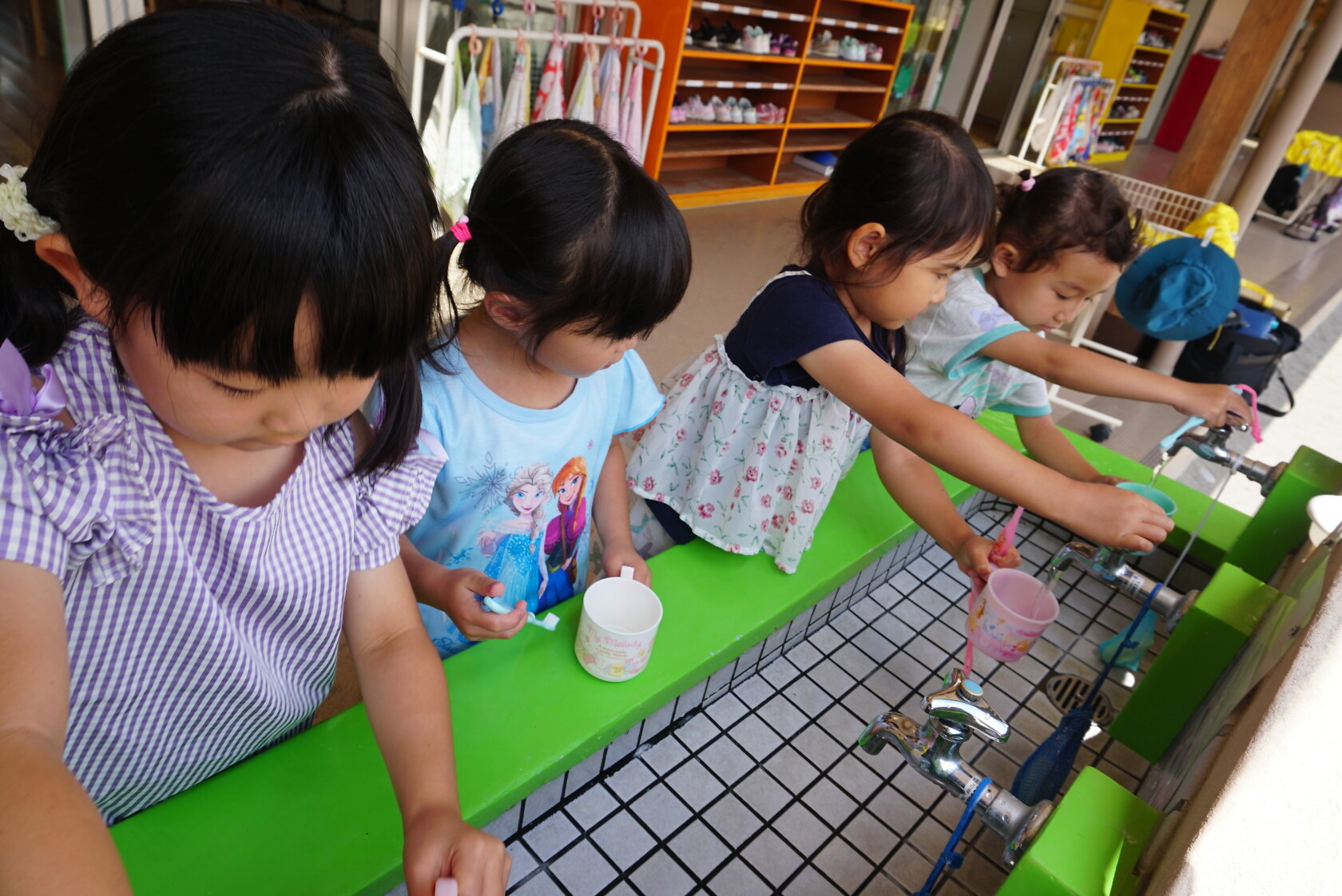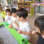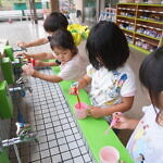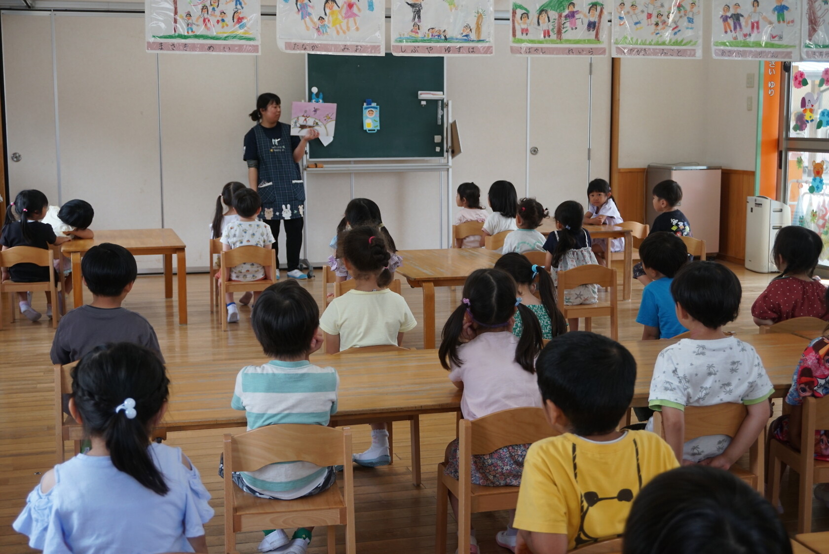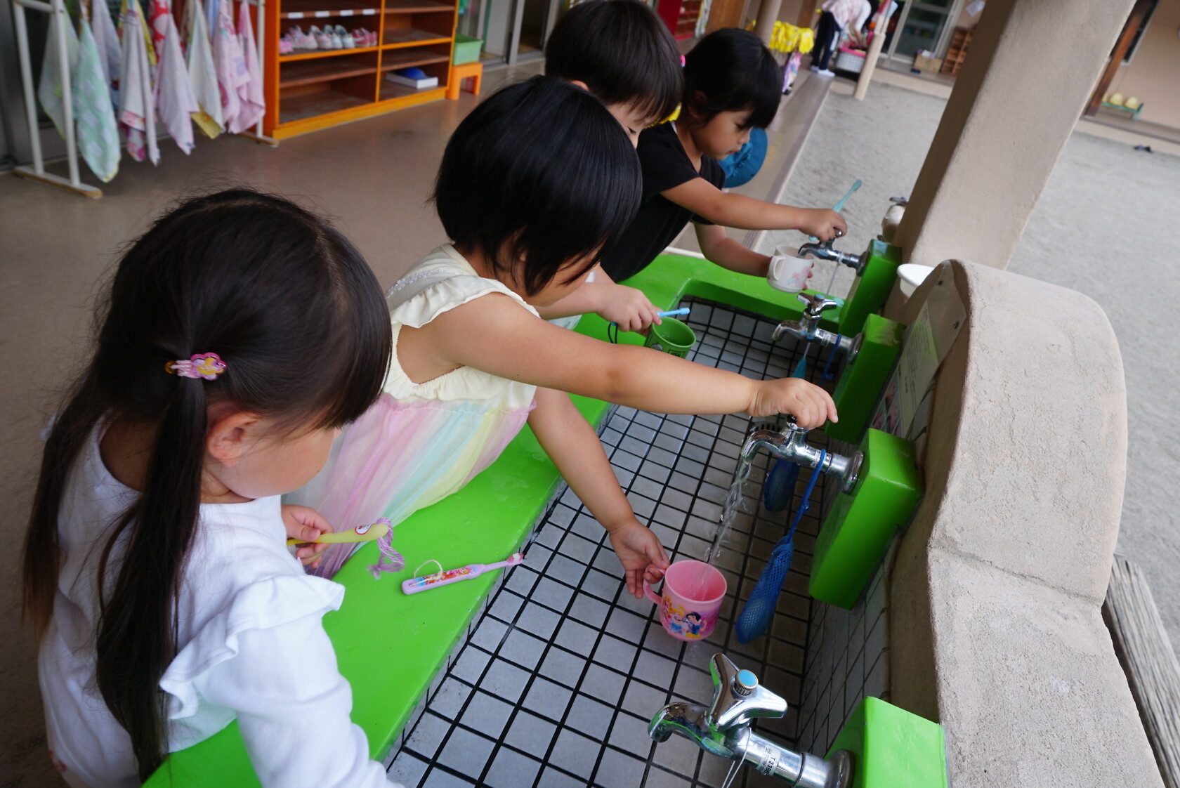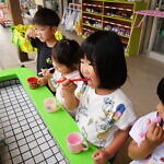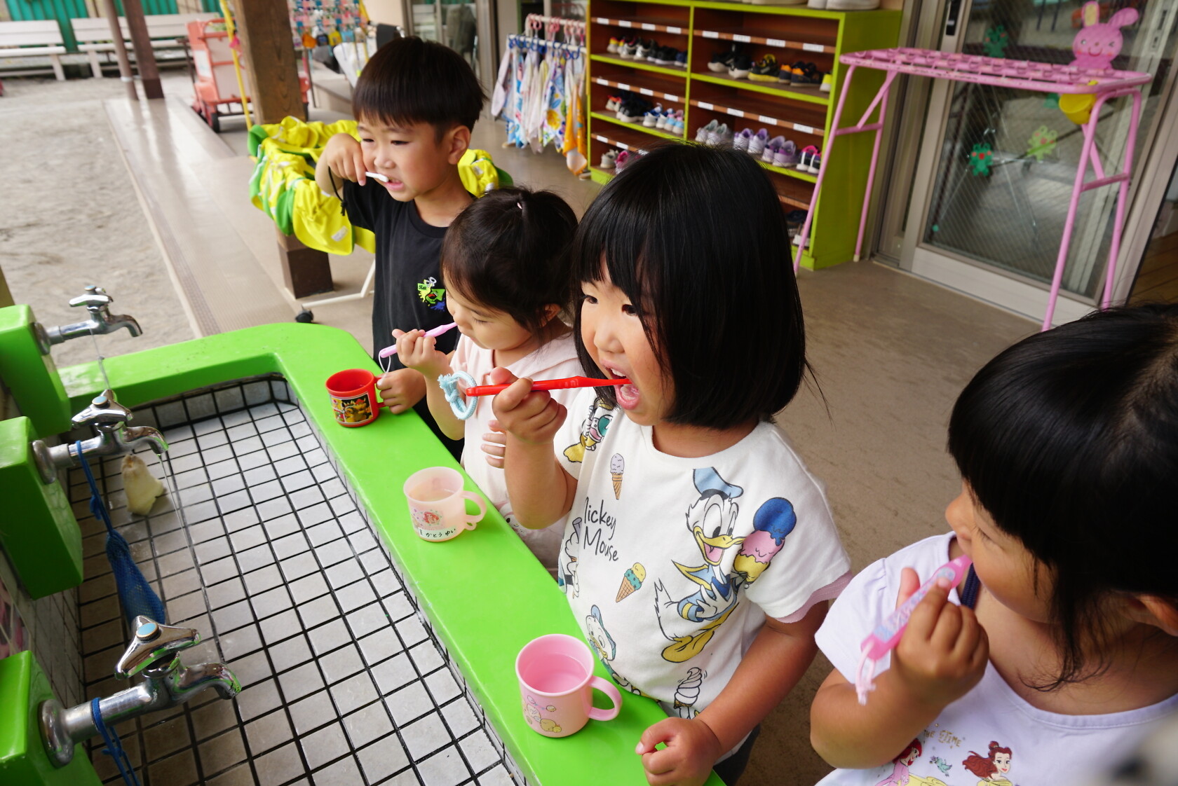 今日のできごと(ゆり) 公開済み: 2024年6月4日更新: 2024年6月4日 今日から歯と口の健康週間です。ゆり組さんは食後の歯磨きが始まります😊 最初に虫歯に関係する紙芝居を聞き、歯の磨き方や歯ブラシの片付け方の説明を真剣に聞きました🌟 食後に自分のお気に入りの歯ブラシとコップを使い丁寧に歯磨きをしました。 お家でも虫歯のないきれいな歯になれるように丁寧な歯磨きを心掛けましょう💕