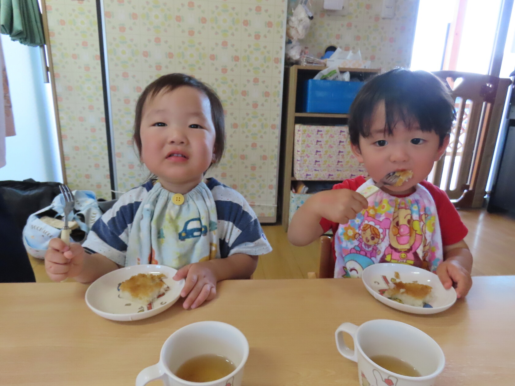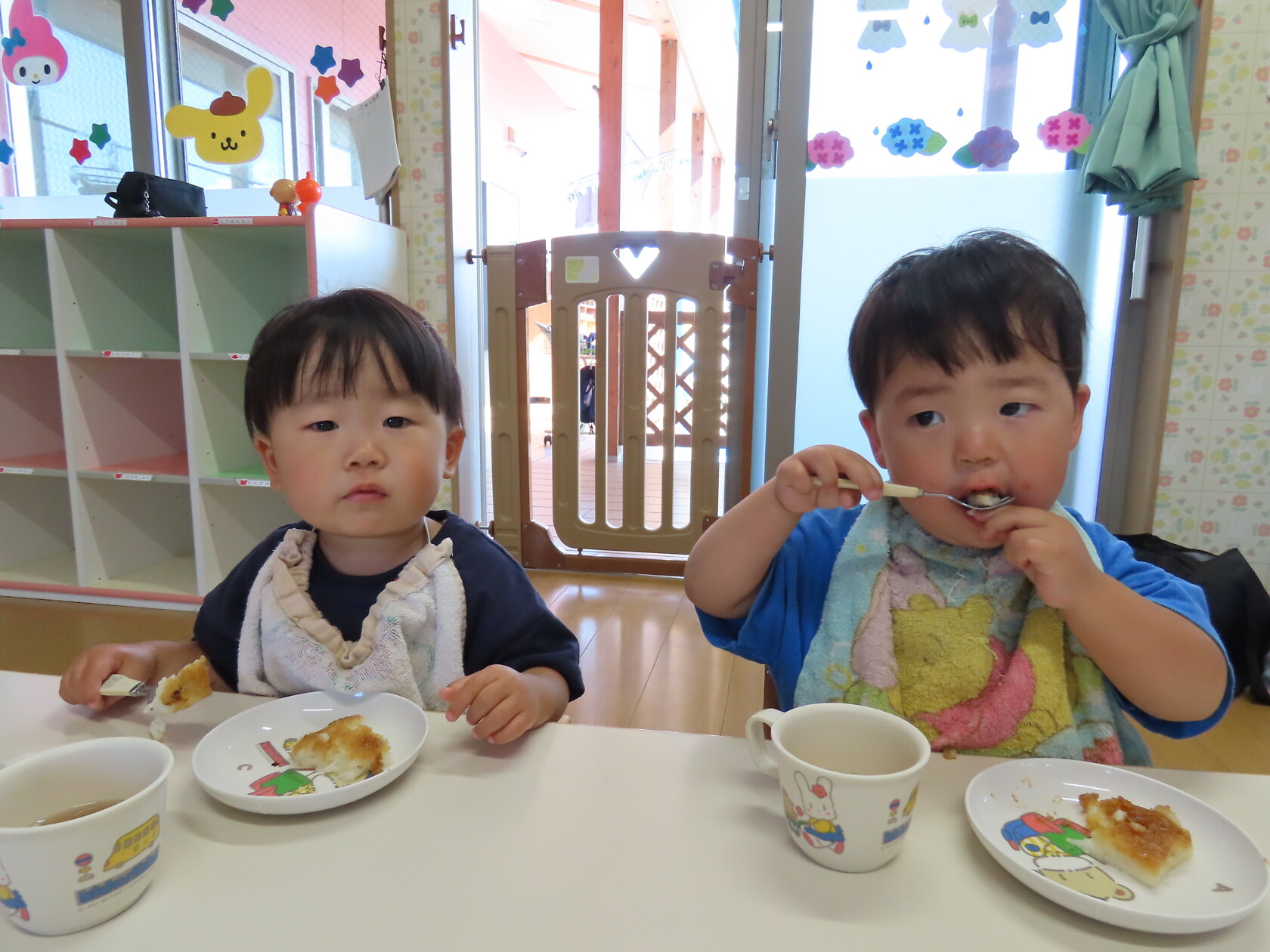 今日のできごと(小規模さくら・ちゅうりっぷ) 公開済み: 2024年6月5日更新: 2024年6月5日 今日の午後のおやつは五平餅でした! みんな大きなお口を開け、よく食べていました🍴 特に2歳児さんは「おいしい~!」と言いながら嬉しそうに食べていました😆 体調を崩しやすい時期ですので、食事や睡眠をよくとり、元気に登園してきて下さいね✨