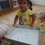 ビー玉に絵の具をつけ、転がすと雨が降ったようになり、