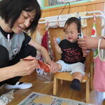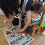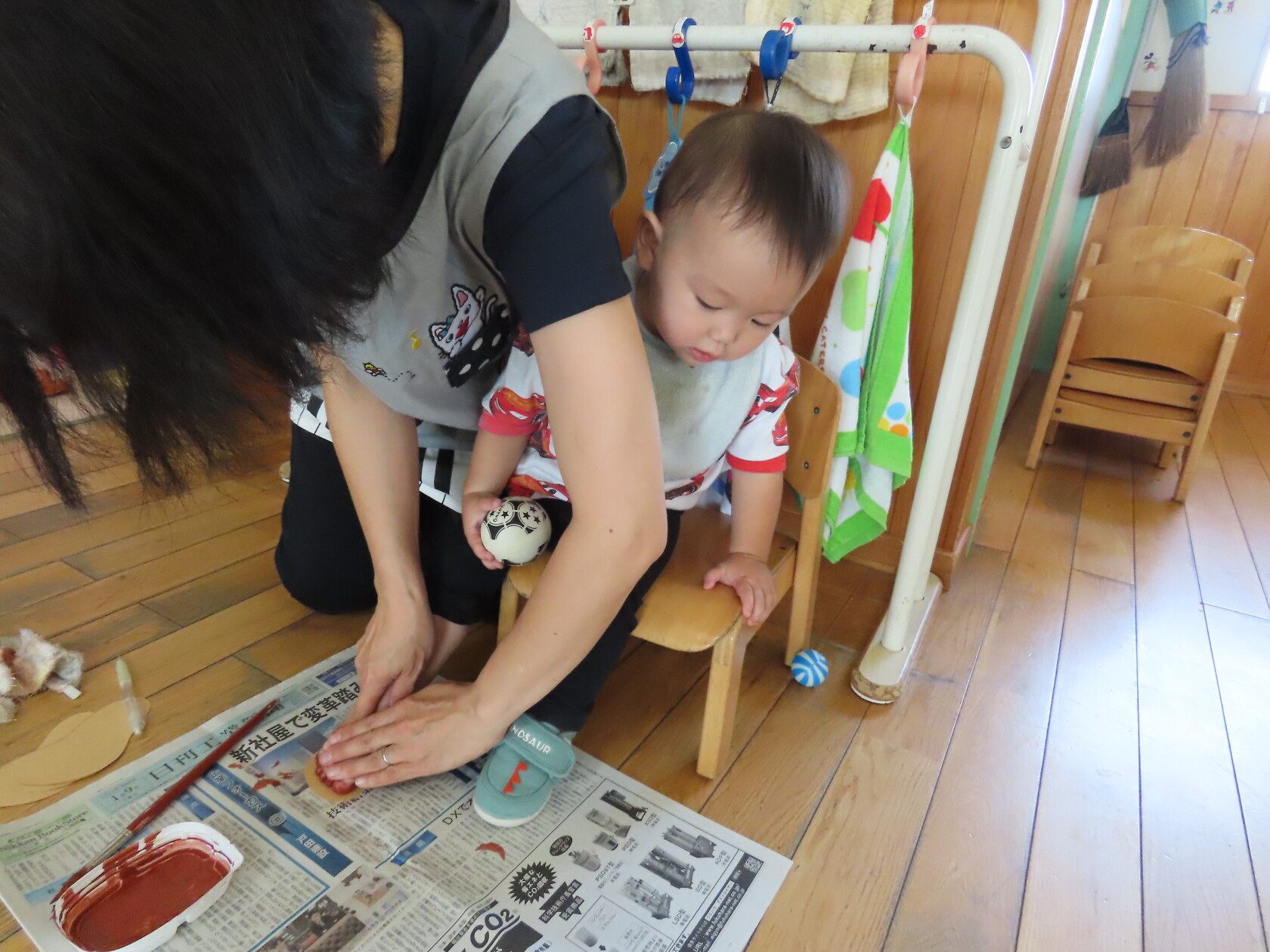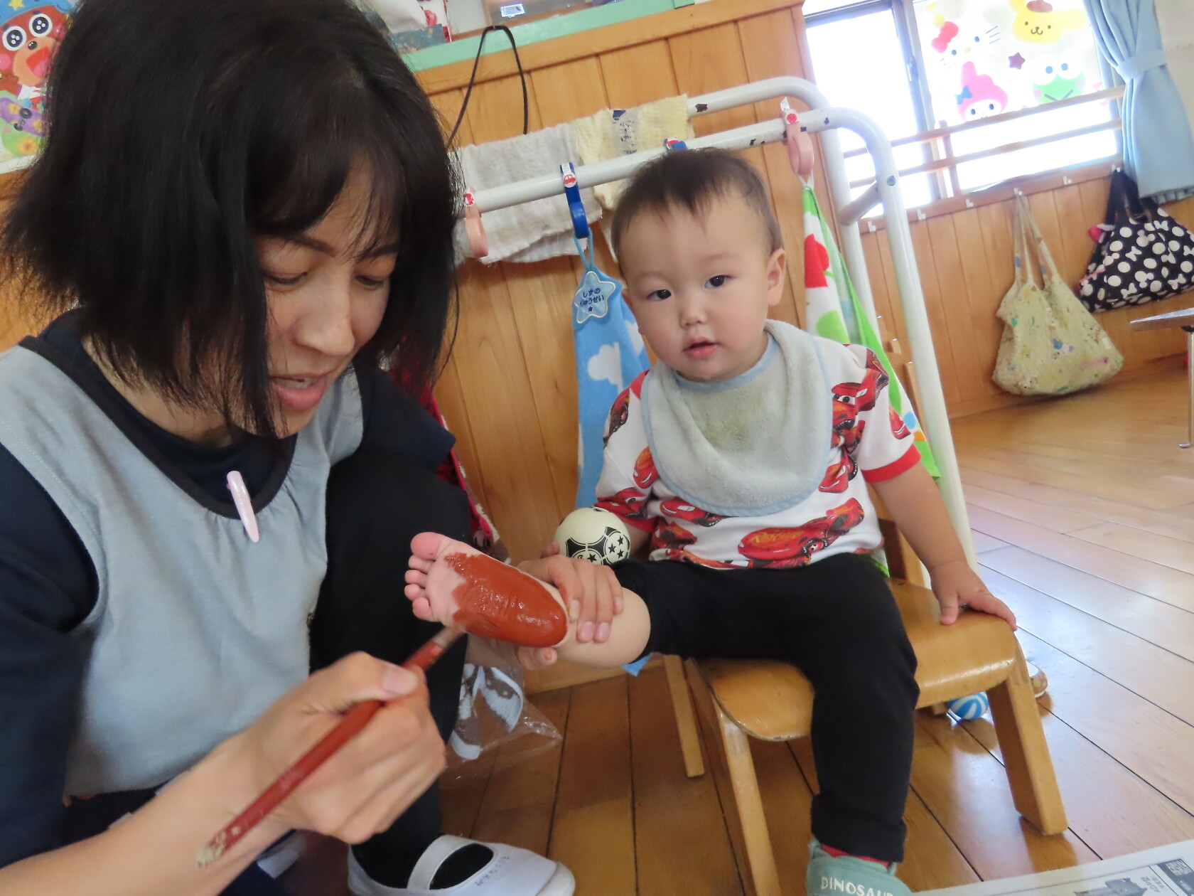 今日のできごと(さくら) 公開済み: 2024年6月11日更新: 2024年6月11日 今日は、父の日の製作で足形をとりました😊 筆で塗ってからの足形とりは初めてだったので、くすぐったくて笑ったり、ないてしまったり、気にならなかったり、色々な表情を見せてくれたさくら組さんでした🎵 貴重な体験ができました😆 素敵なプレゼントを、お楽しみに🎁