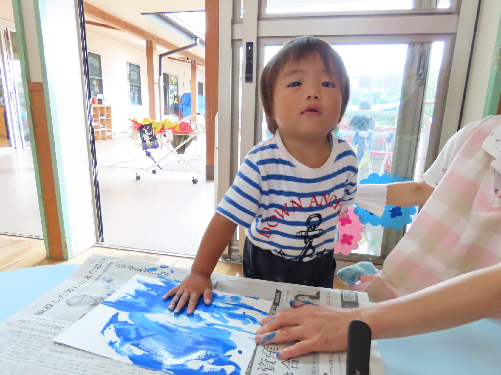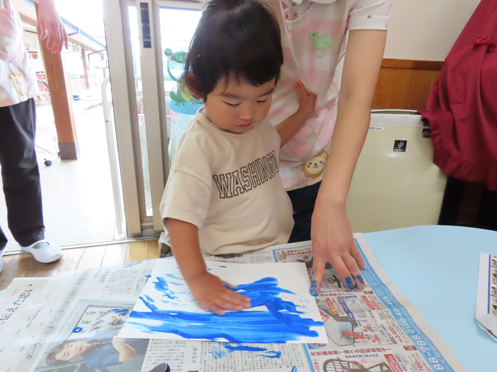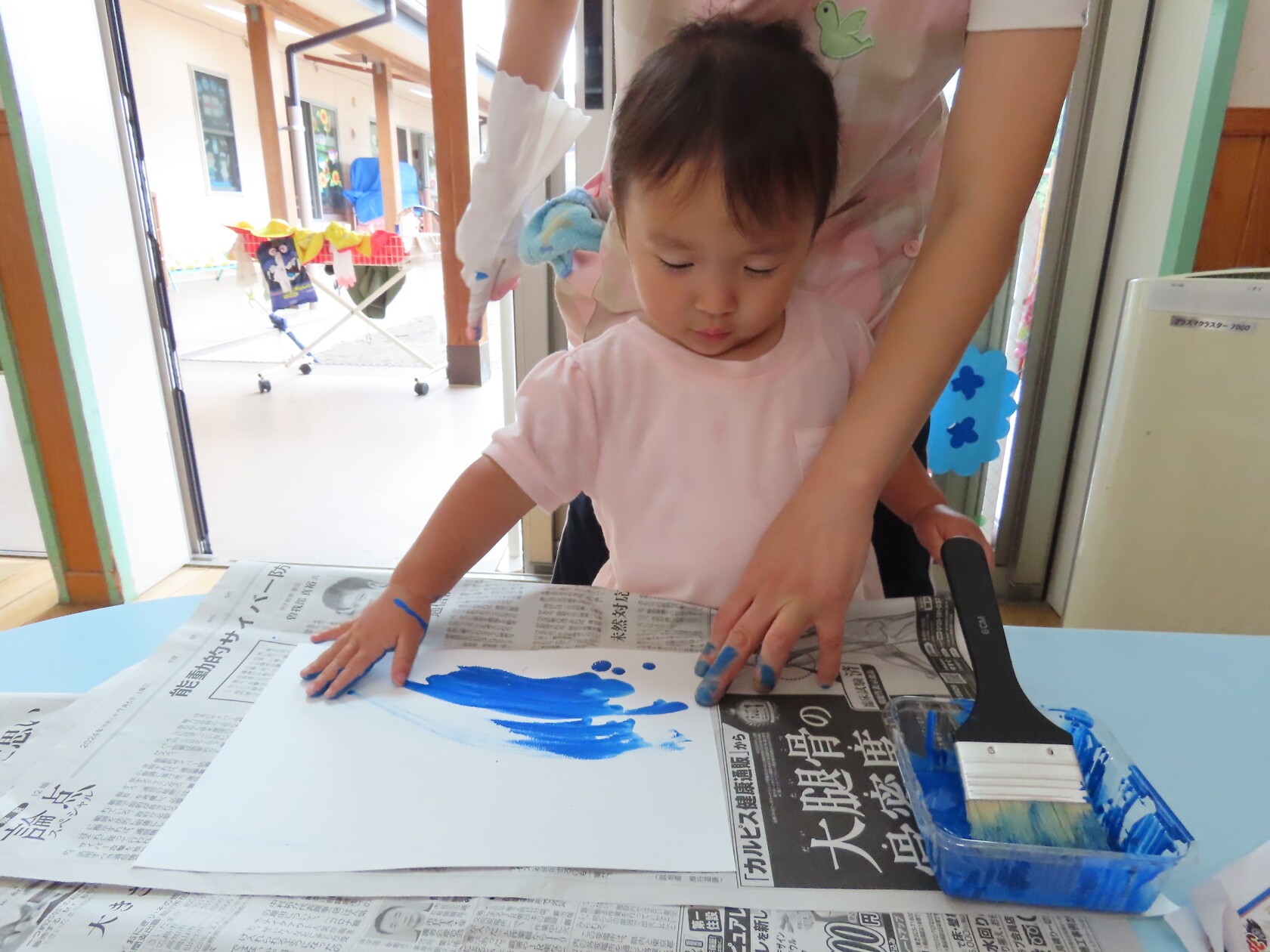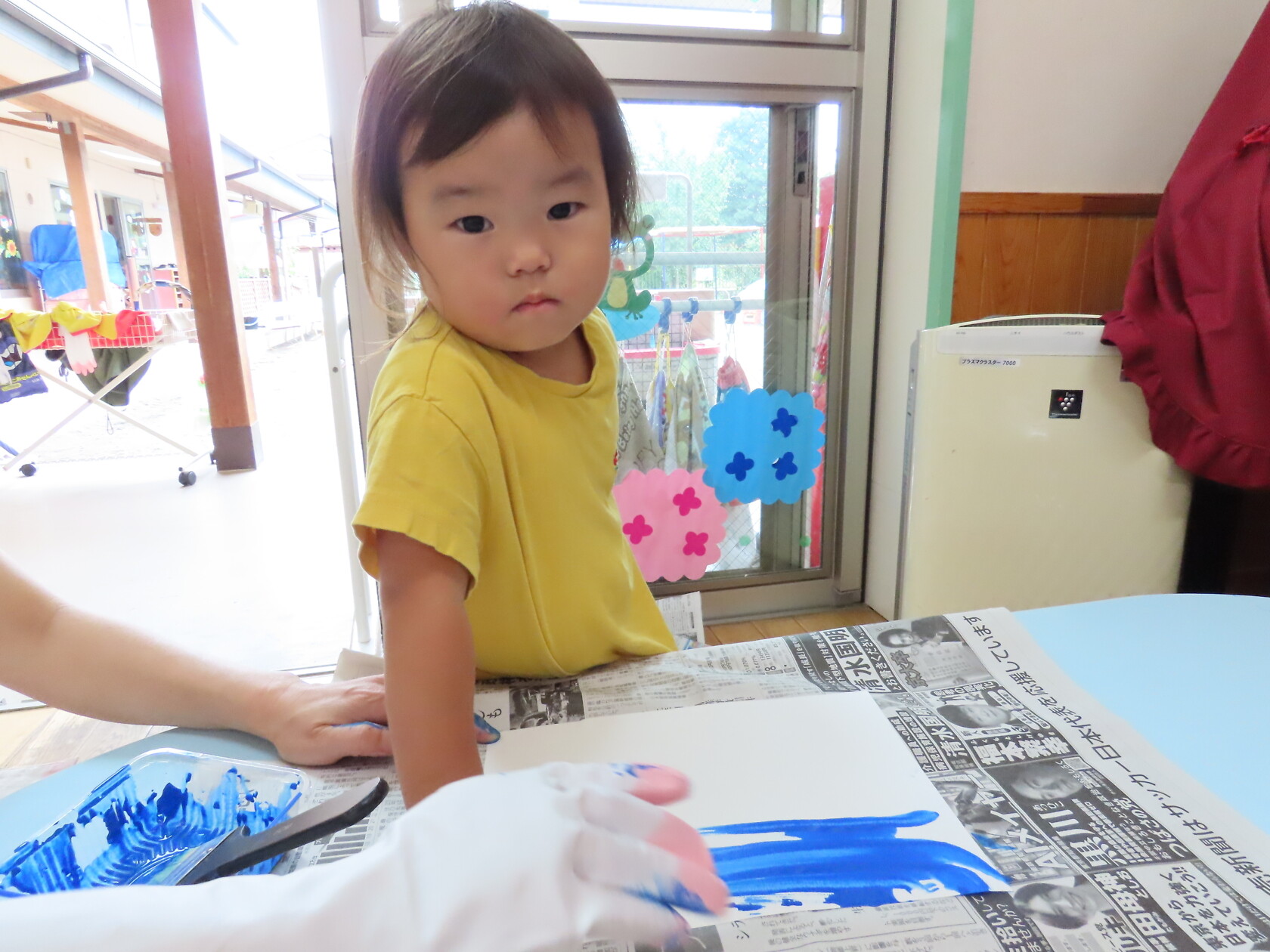今日のできごと(ちゅうりっぷ) 公開済み: 2024年7月16日更新: 2024年7月16日 今日は曇り空で、いつもより過ごしやすい天気でした☁ 子ども達は元気いっぱい友達と楽しく過ごしました🎵 うちわの製作では、手にいっぱい絵の具をつけ、自由に画用紙に色を塗りました😊 どんなうちわができるかな⁉ 楽しみですね🎼