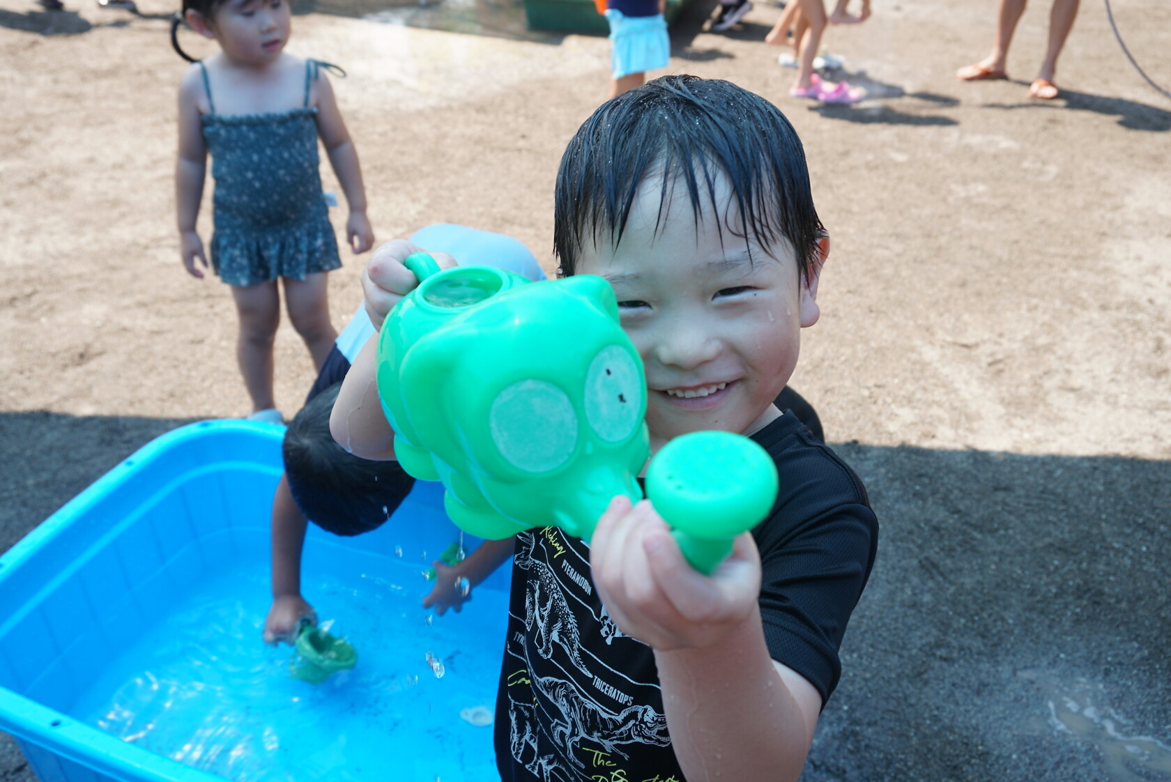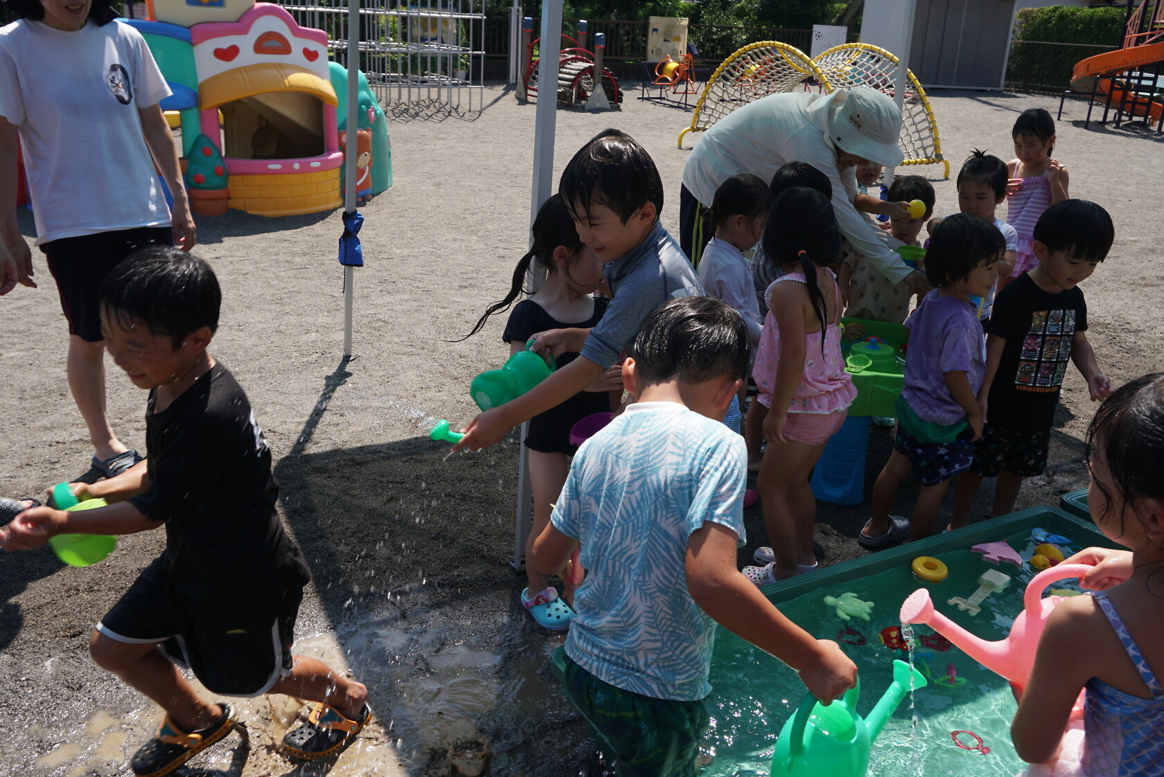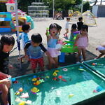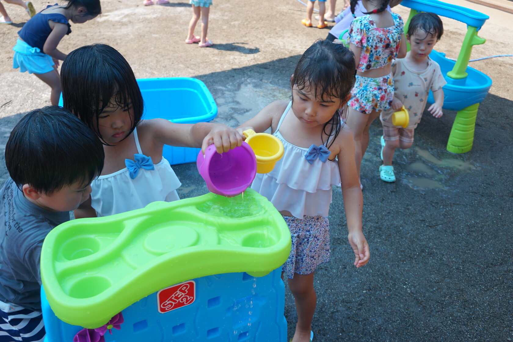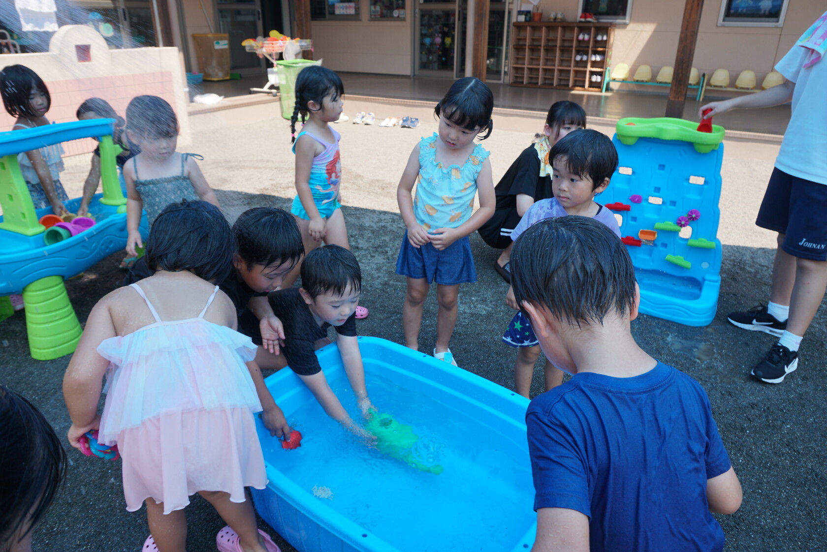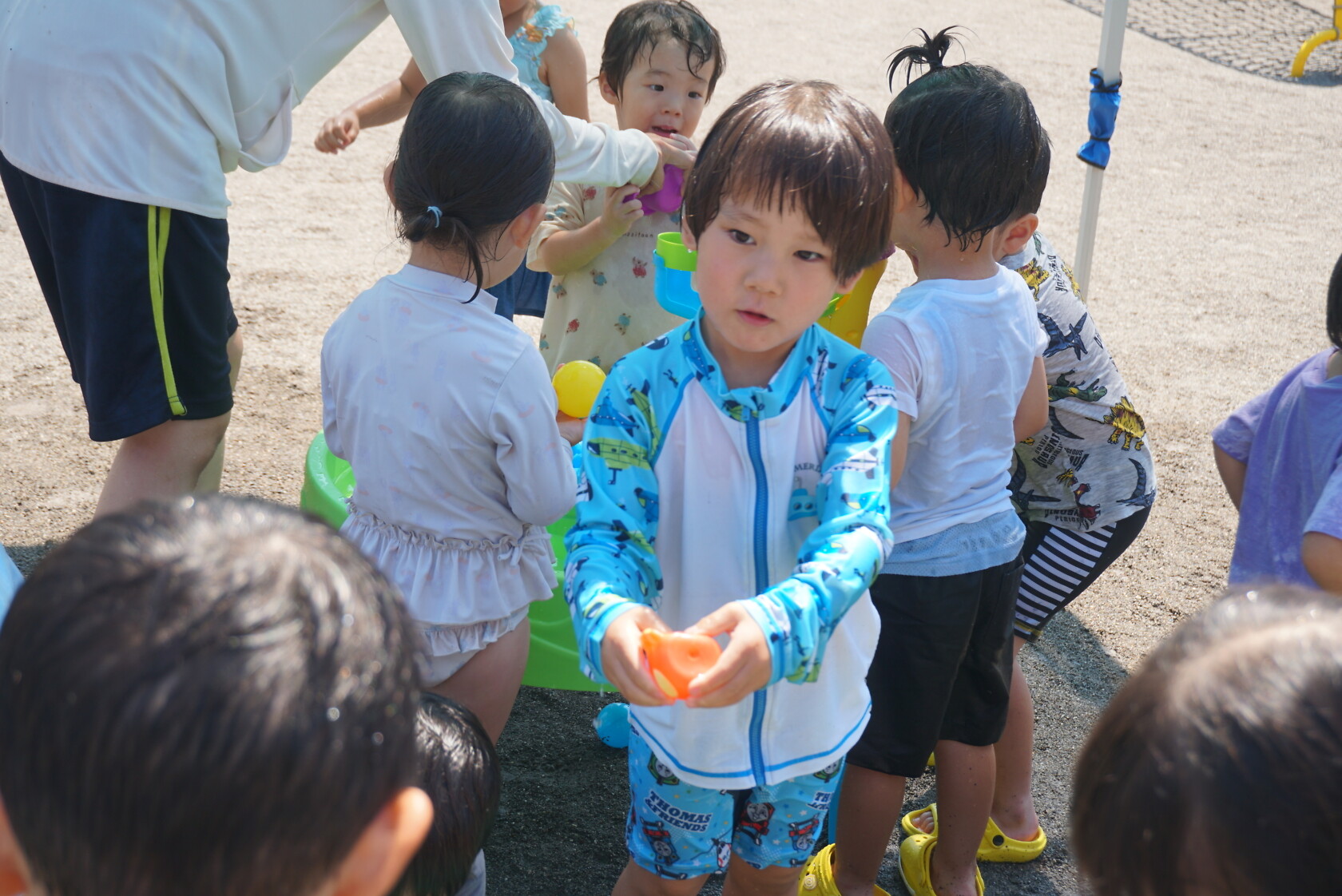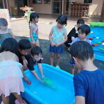今日のできごと(以上児) 公開済み: 2024年7月22日更新: 2024年7月22日 今日から待ちに待った水遊びが始まりました! 気温は暑かったですが、冷たい水で気持ちよさそうに遊び、楽しそうにしていました😊 「先生達にもかけちゃうぞ~」「頭からかけて~」と思い切り水をかぶって遊ぶ子もいれば、静かにおもちゃで遊んでいる子もいたりとそれぞれ違った遊び方で楽しんでいました😆 また遊びましょうね☺