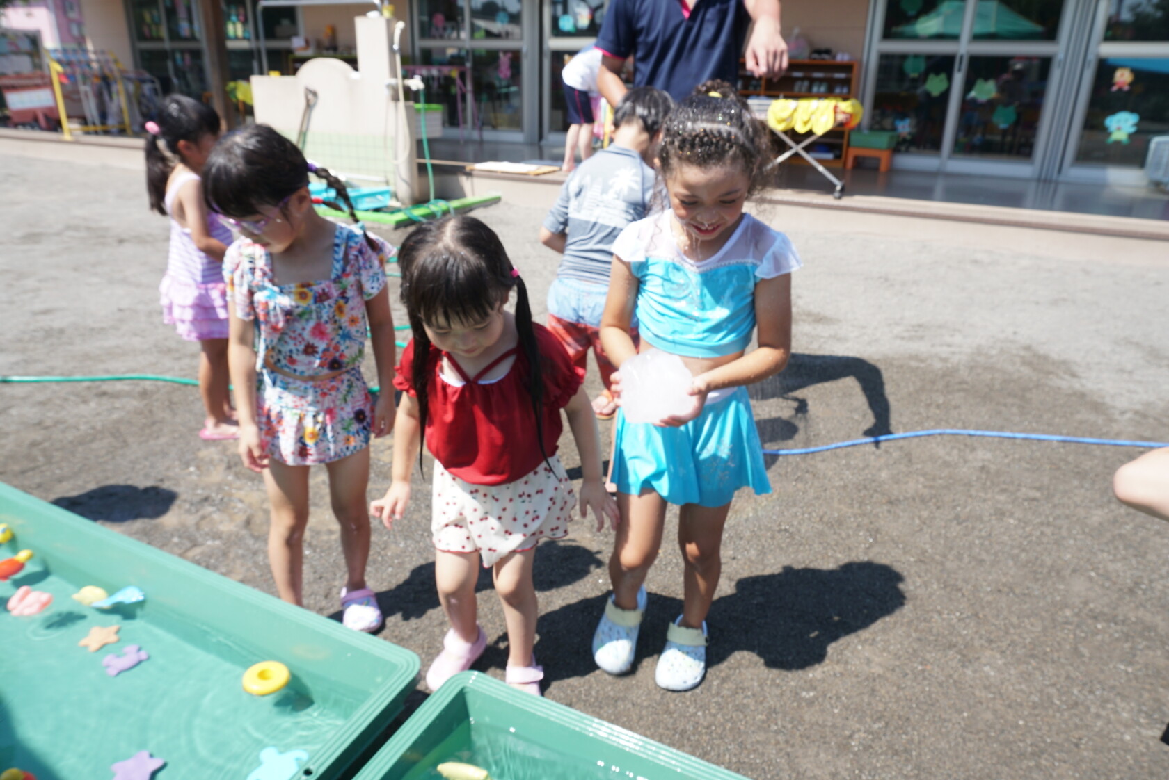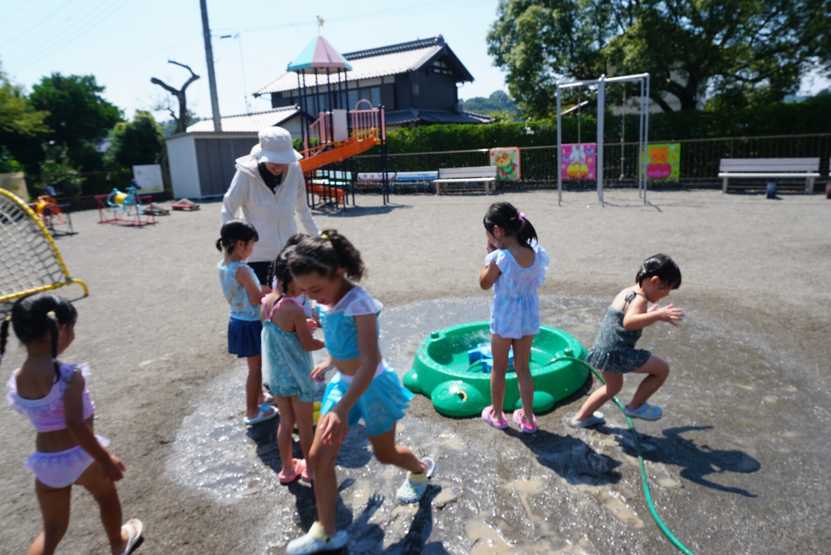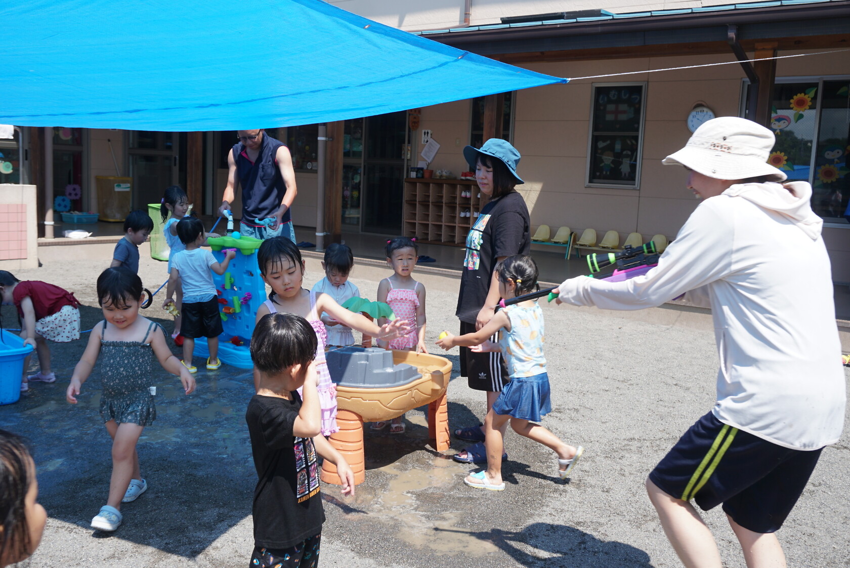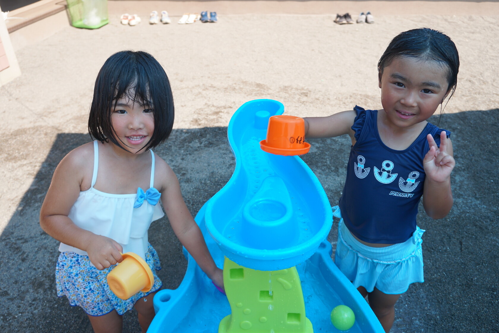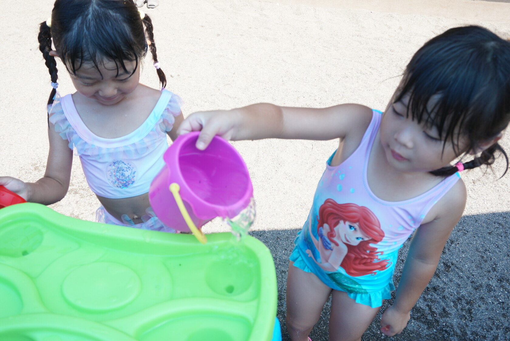 今日のできごと(以上児) 公開済み: 2024年7月22日更新: 2024年7月22日 今日から待ちに待った水遊びが始まりました! 気温は暑かったですが、冷たい水で気持ちよさそうに遊び、楽しそうにしていました😊 「先生達にもかけちゃうぞ~」「頭からかけて~」と思い切り水をかぶって遊ぶ子もいれば、静かにおもちゃで遊んでいる子もいたりとそれぞれ違った遊び方で楽しんでいました😆 また遊びましょうね☺