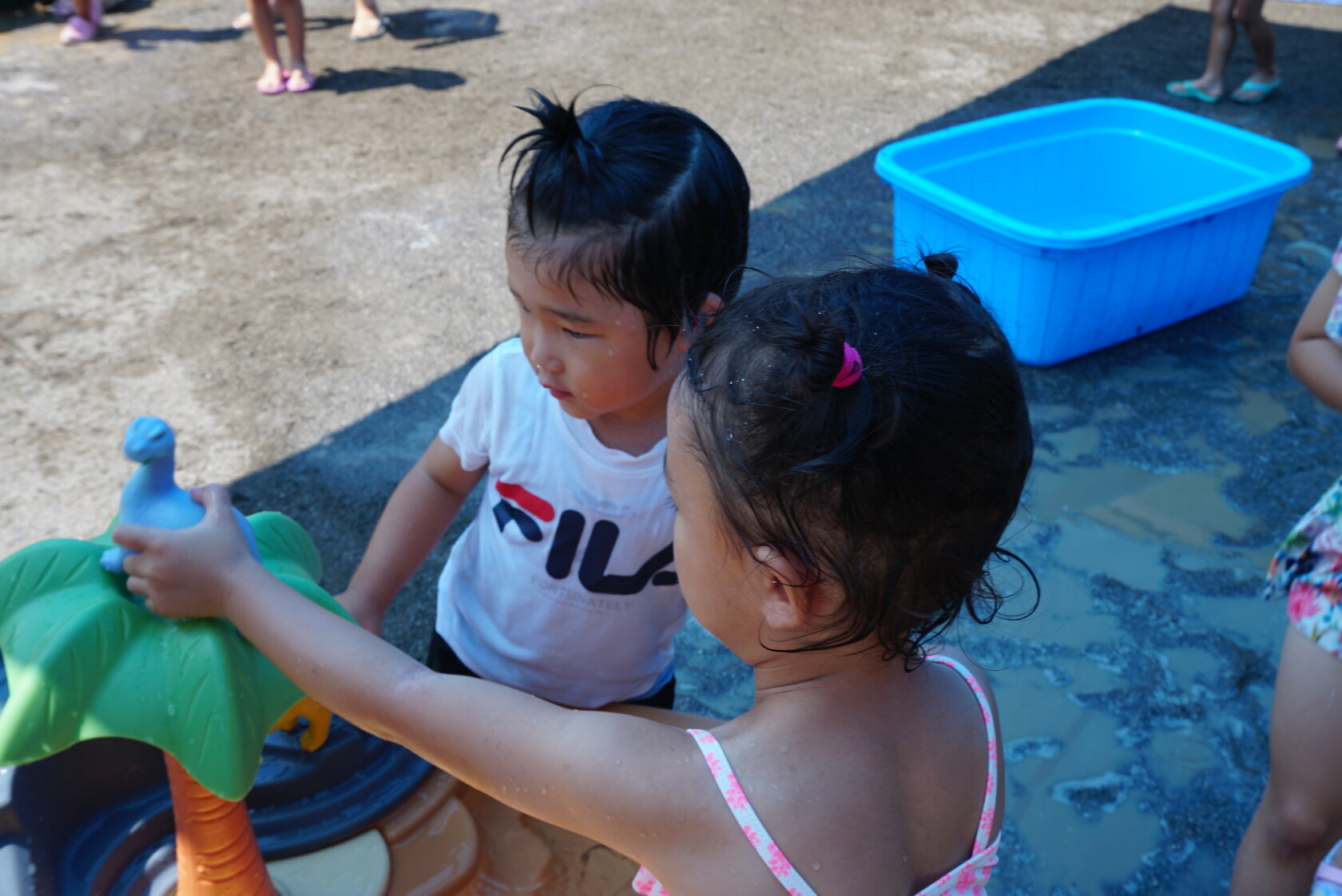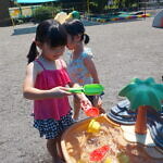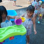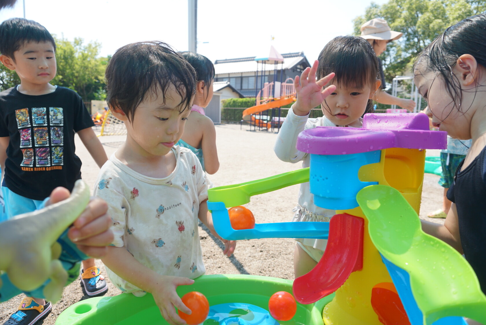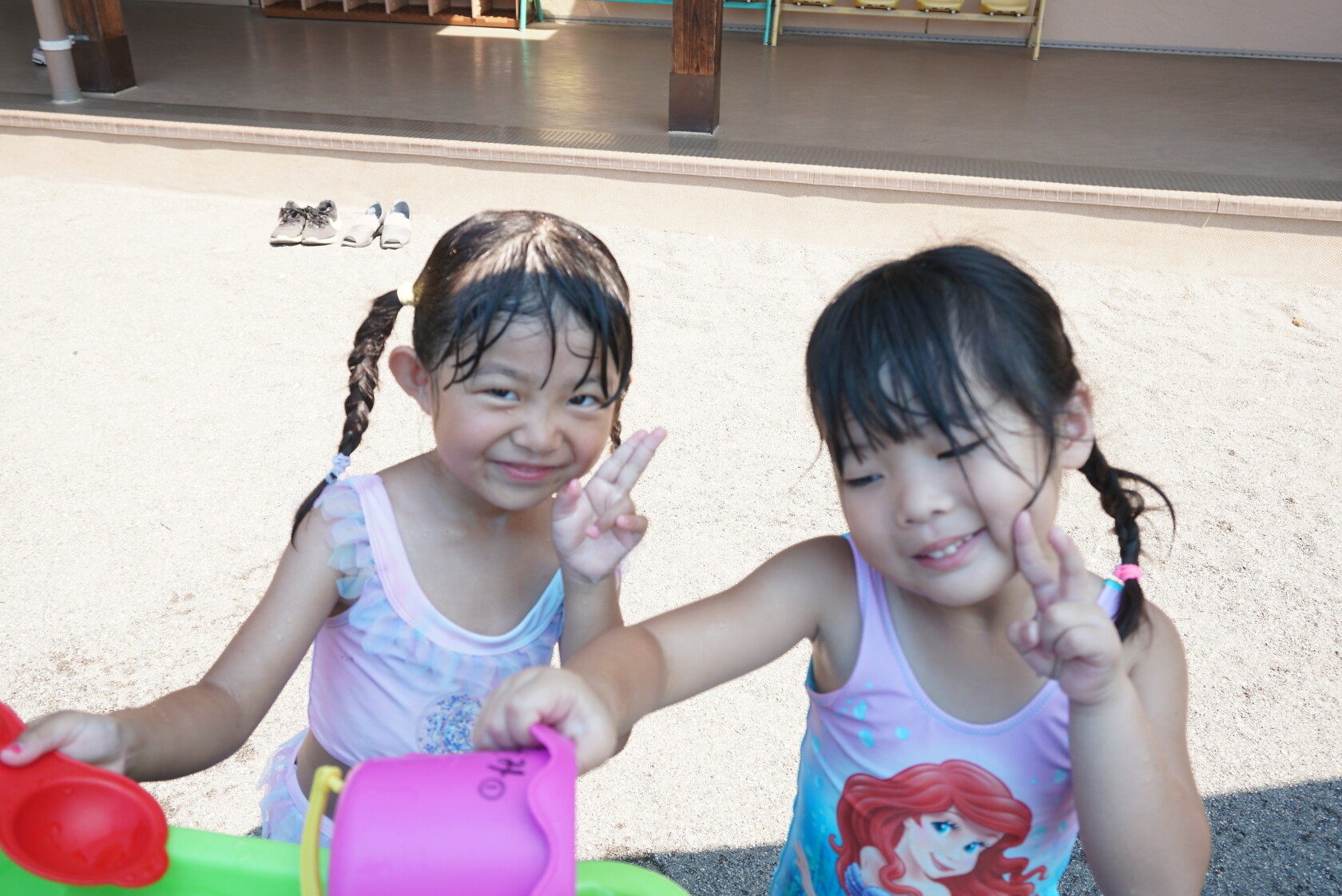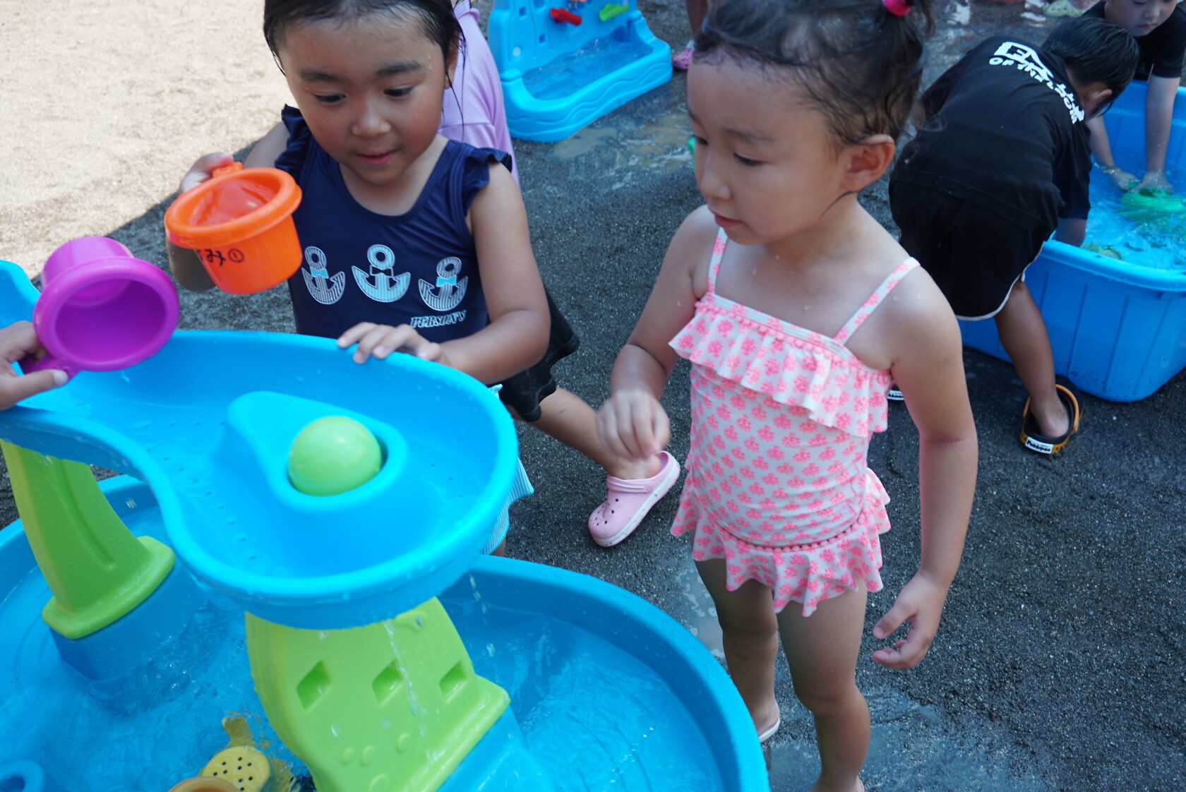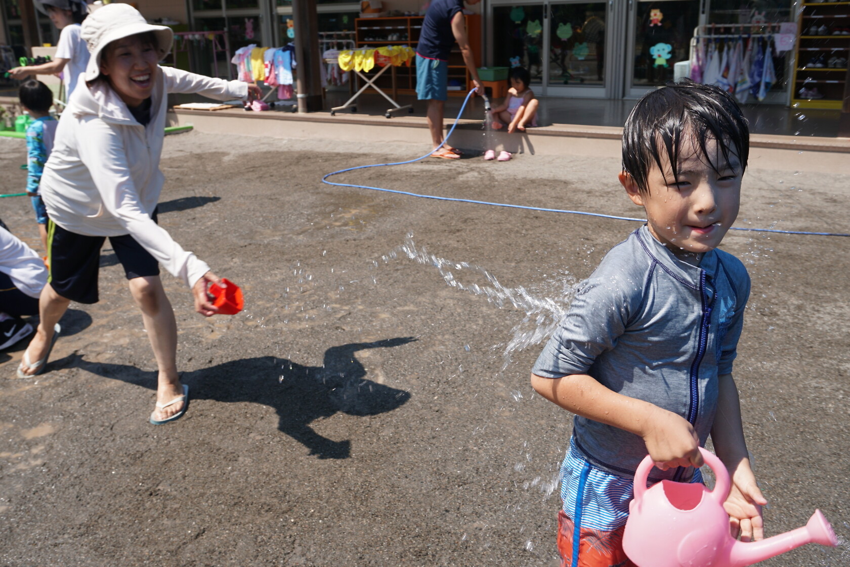 今日のできごと(以上児) 公開済み: 2024年7月22日更新: 2024年7月22日 今日から待ちに待った水遊びが始まりました! 気温は暑かったですが、冷たい水で気持ちよさそうに遊び、楽しそうにしていました😊 「先生達にもかけちゃうぞ~」「頭からかけて~」と思い切り水をかぶって遊ぶ子もいれば、静かにおもちゃで遊んでいる子もいたりとそれぞれ違った遊び方で楽しんでいました😆 また遊びましょうね☺