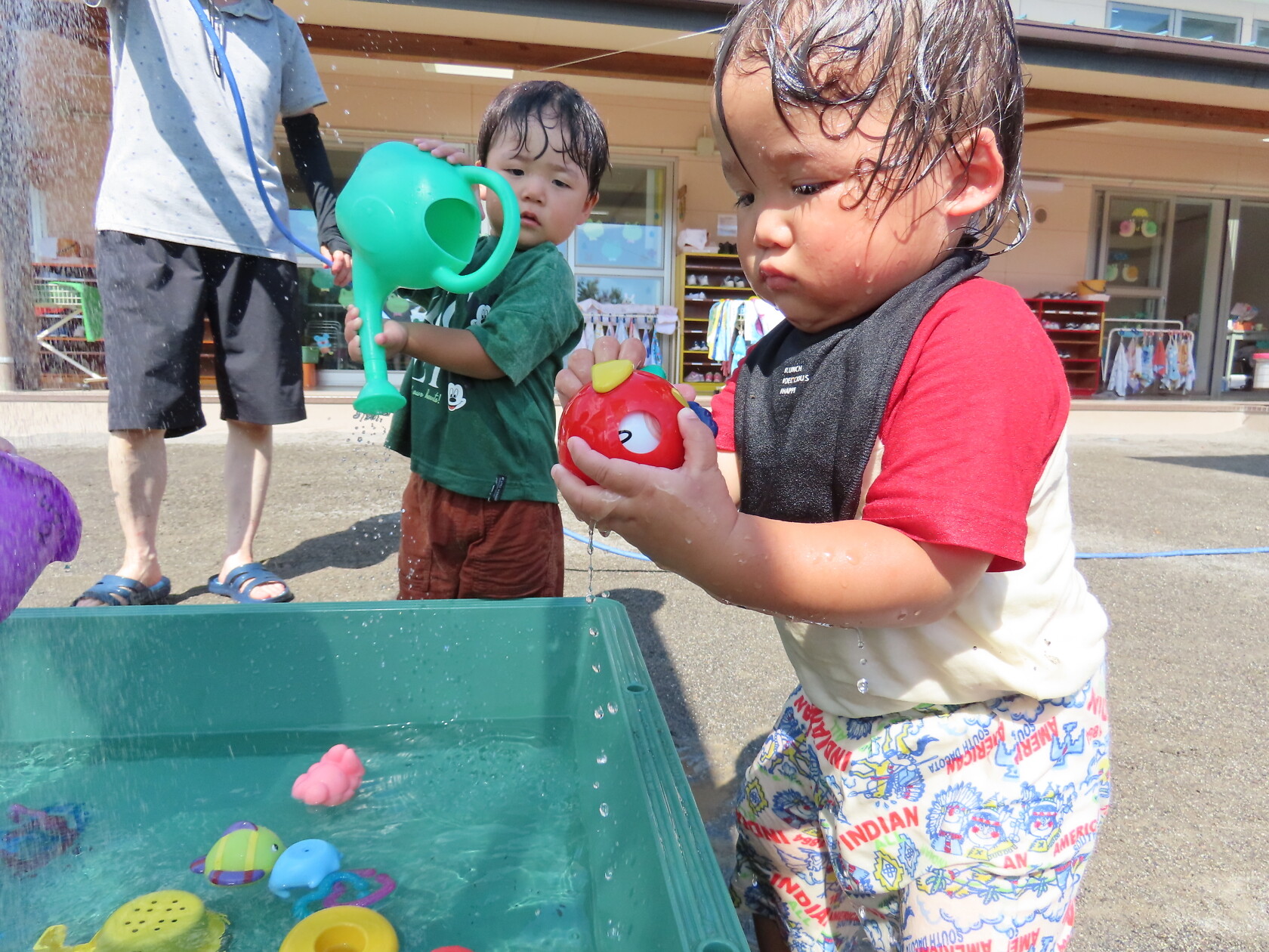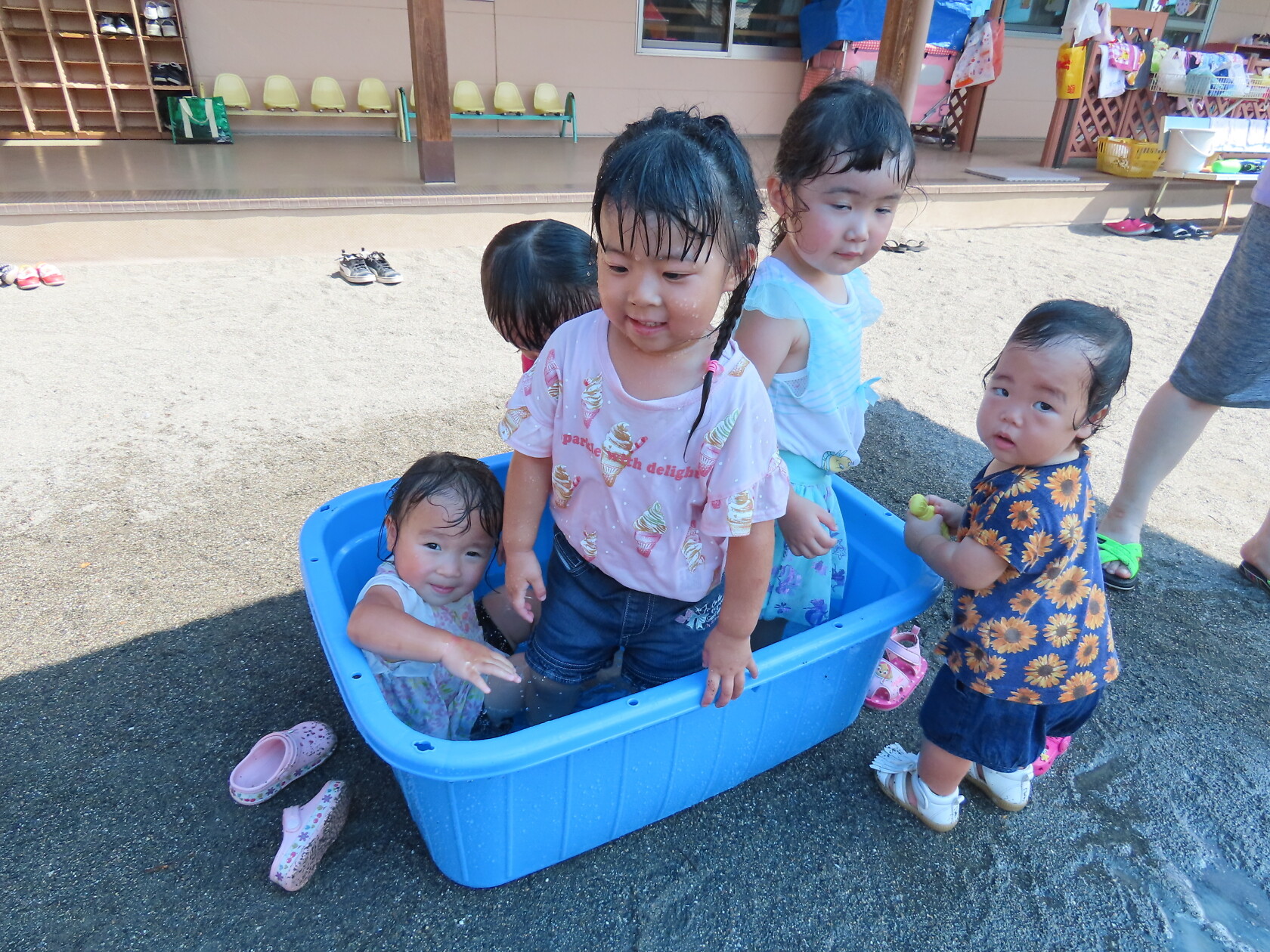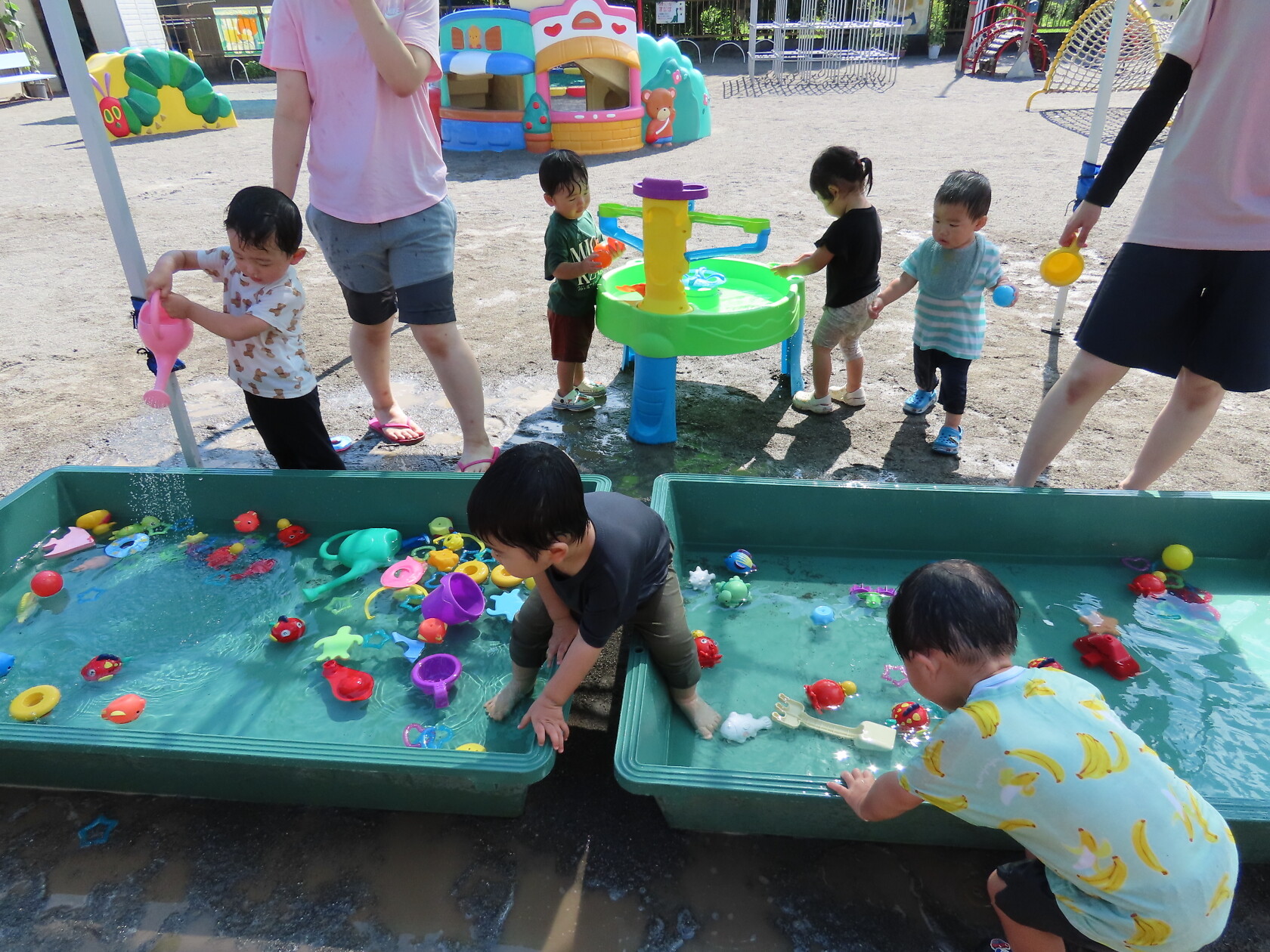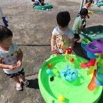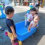 今日のできごと(未満児) 公開済み: 2024年7月23日更新: 2024年7月23日 昨日から、みんなが楽しみに待っていた水遊びが始まりました🎵 未満児の小さいお友達は、順番に沐浴をし、汗をしっかり流してさっぱりと😊 大きいお友達は、顔や頭に水がかかっても泣かないで、みんな笑顔で楽しみました🎼 体調の悪い子も、早く入れるといいですね🌞