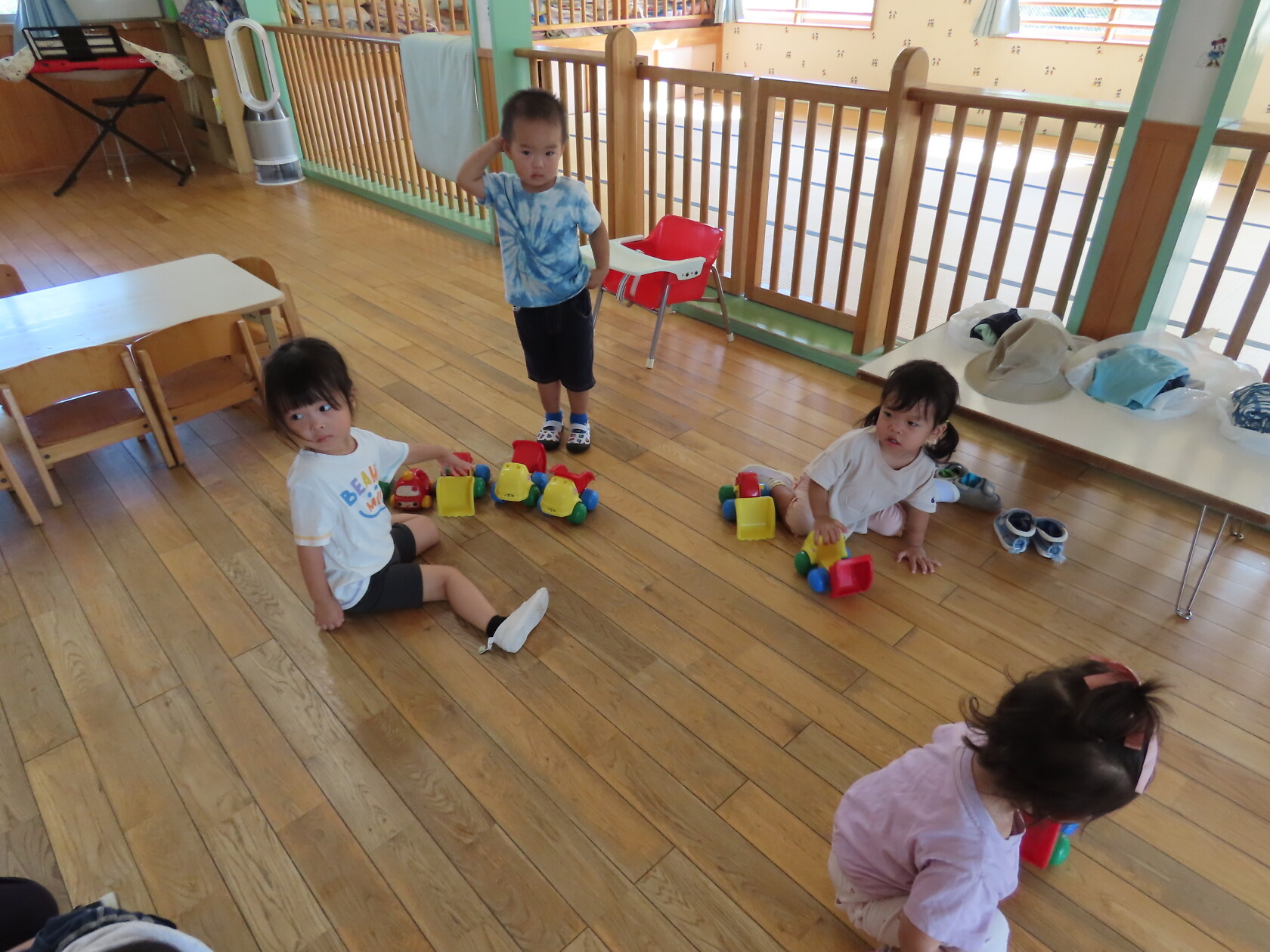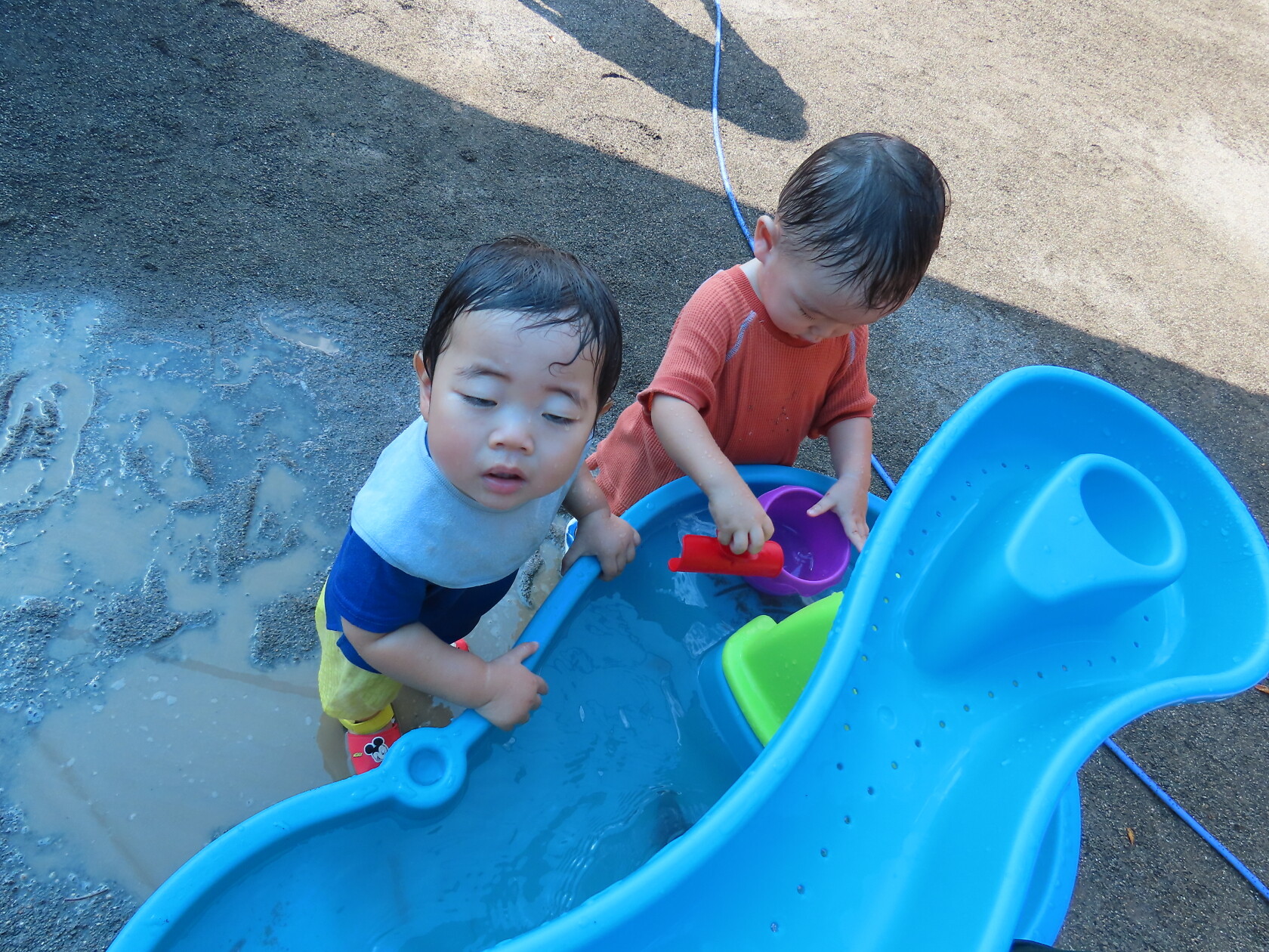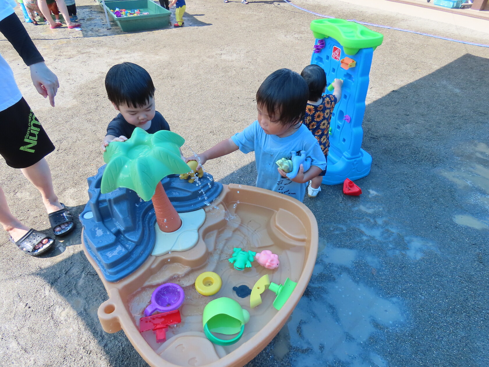 今日のできごと(未満児) 公開済み: 2024年7月23日更新: 2024年7月23日 昨日から、みんなが楽しみに待っていた水遊びが始まりました🎵 未満児の小さいお友達は、順番に沐浴をし、汗をしっかり流してさっぱりと😊 大きいお友達は、顔や頭に水がかかっても泣かないで、みんな笑顔で楽しみました🎼 体調の悪い子も、早く入れるといいですね🌞