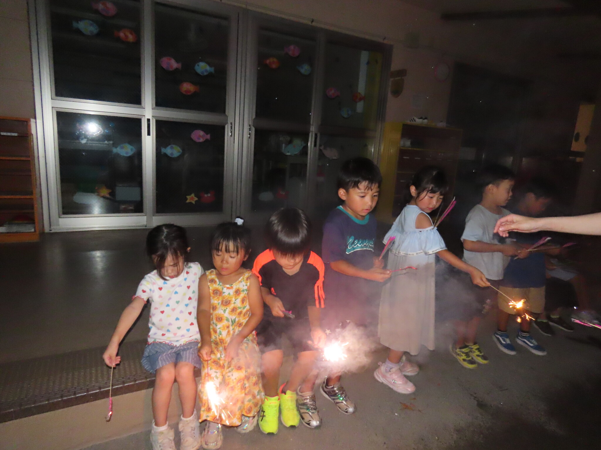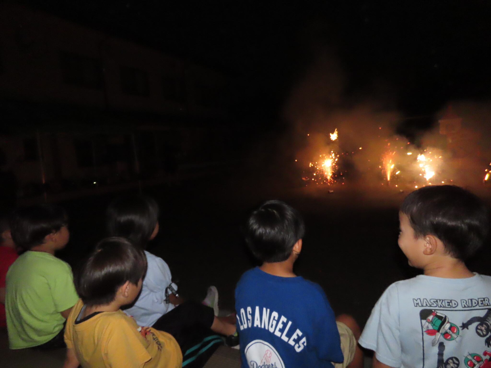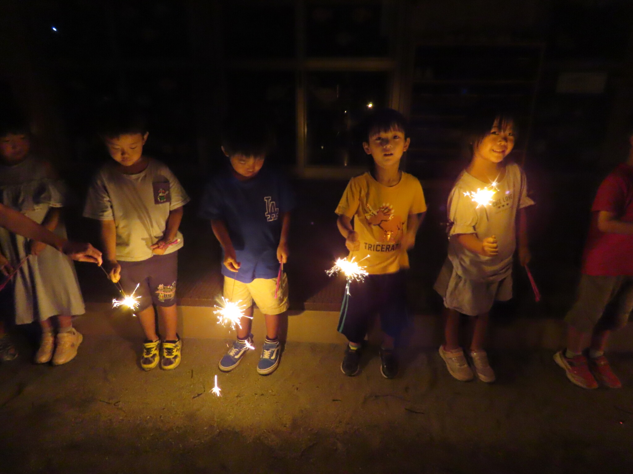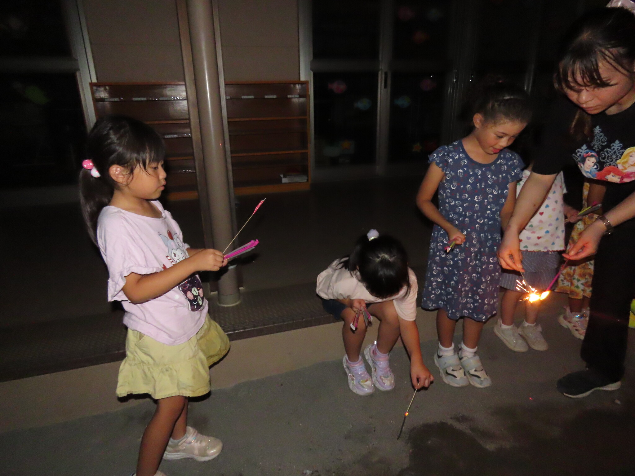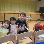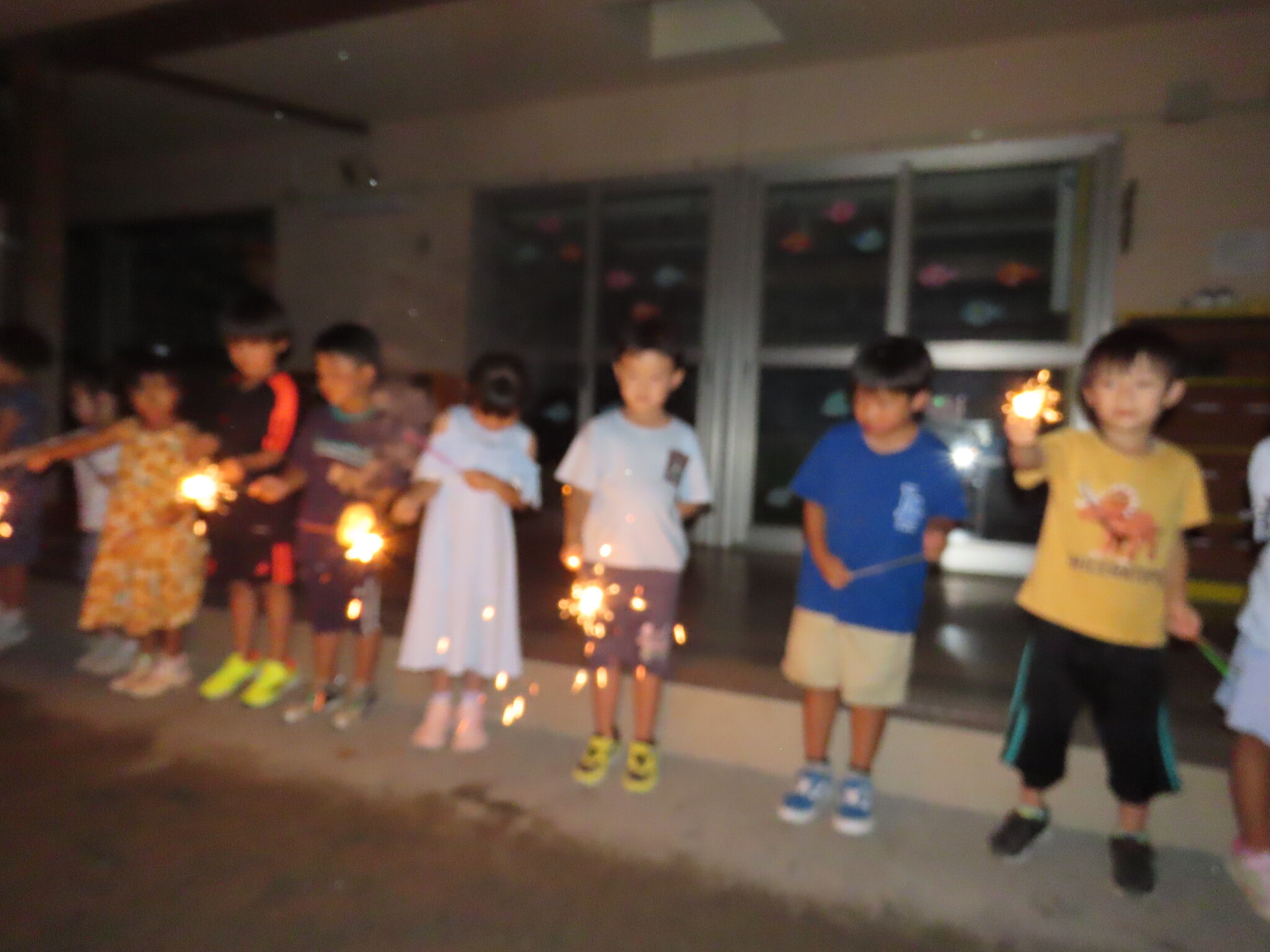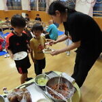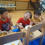 夕涼み会④ 公開済み: 2024年7月26日更新: 2024年7月26日 保育園に帰ってきた後は夕ご飯をたべました!! みんなが買ってきた食材はカレー、焼き肉、サラダ、みかんになりました!! 本当だと園庭でピクニック風に食べる予定でしたが雨のため叶わず、、、代わりにホールでたべました😁 給食のあとは待ちに待った花火の時間!! 雨の為、キャンプファイヤーはできませんでしたが、花火はできました!! 雨の為全て計画通りには行きませんでしたが楽しい時間が過ごせました😁