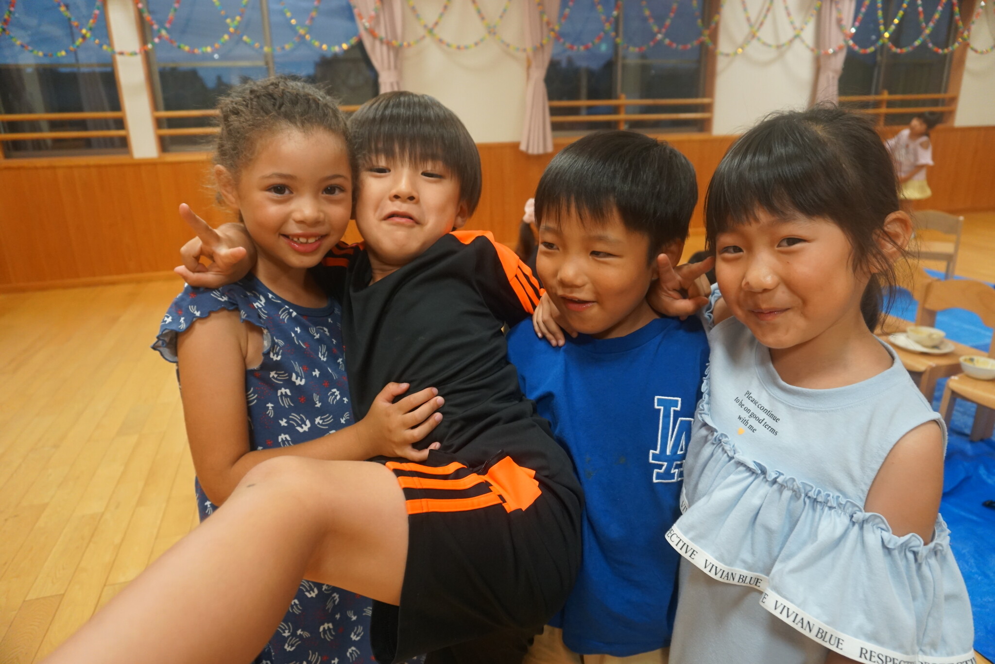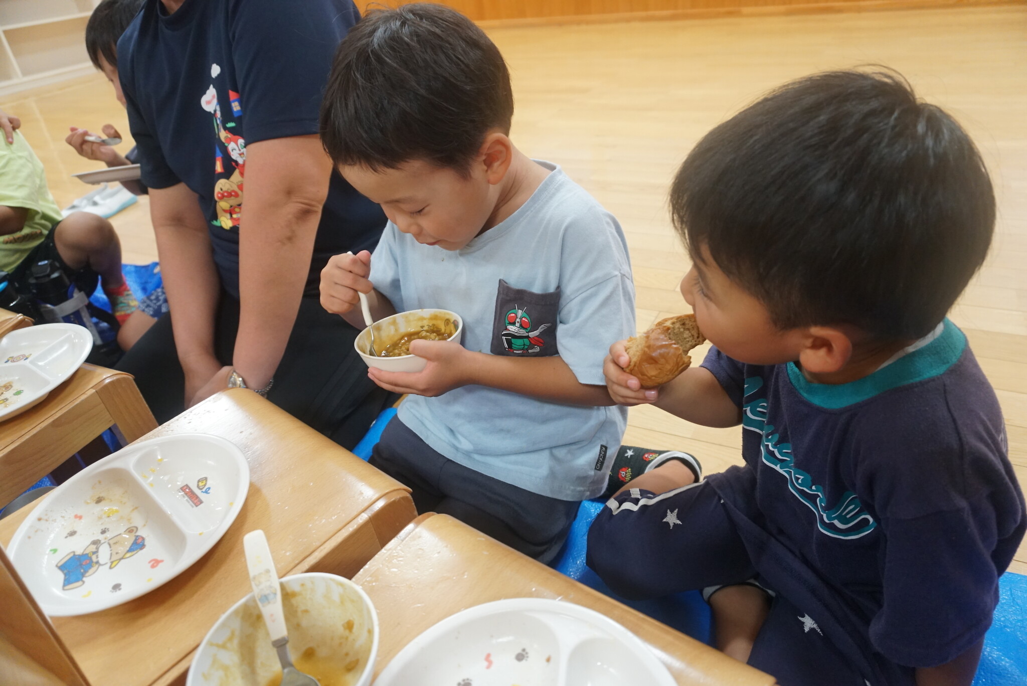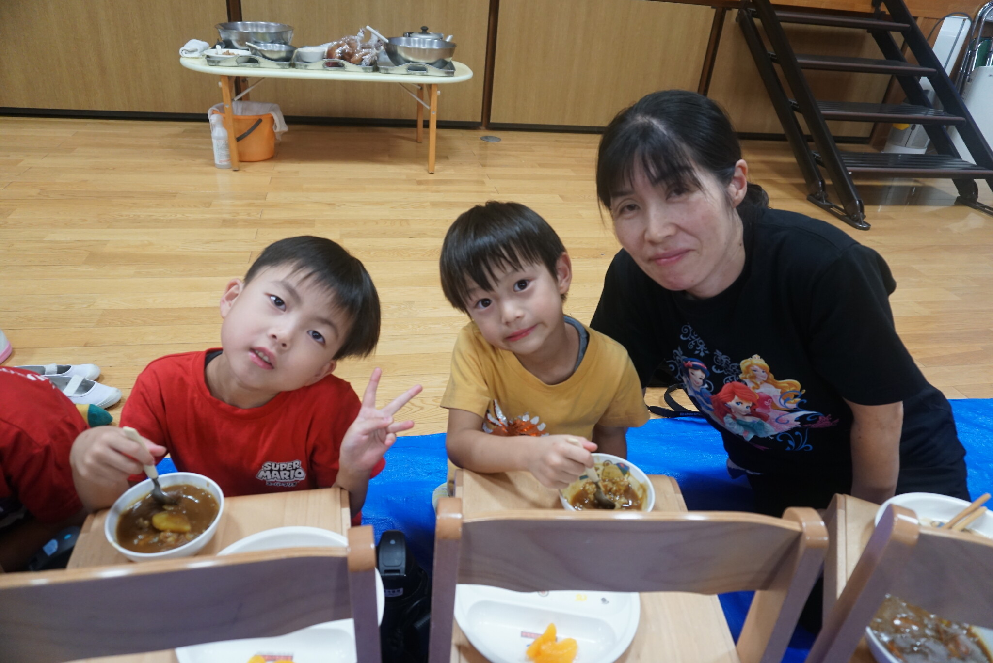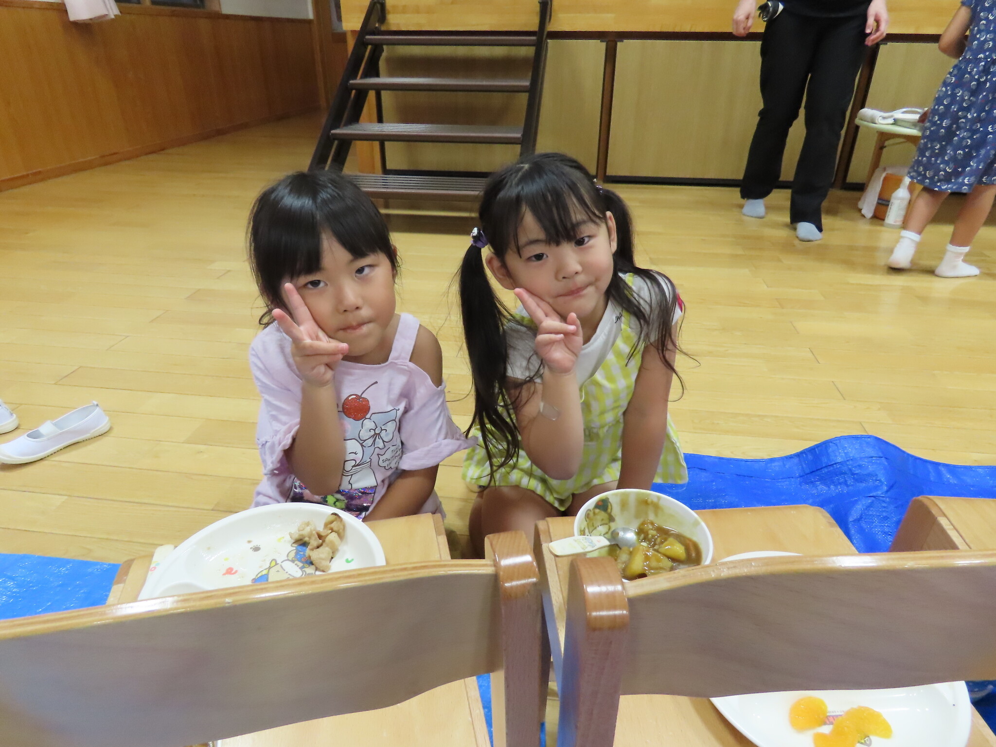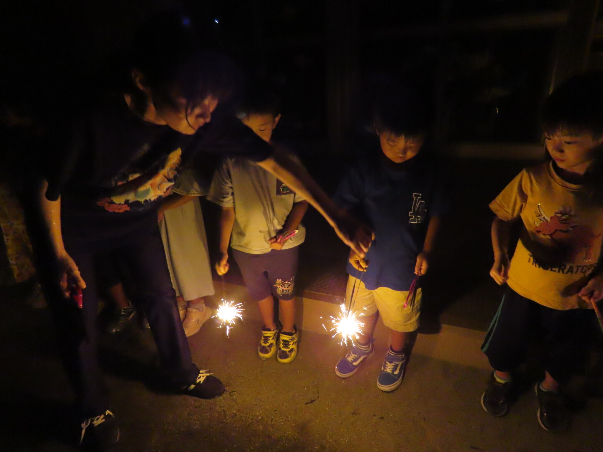 夕涼み会④ 公開済み: 2024年7月26日更新: 2024年7月26日 保育園に帰ってきた後は夕ご飯をたべました!! みんなが買ってきた食材はカレー、焼き肉、サラダ、みかんになりました!! 本当だと園庭でピクニック風に食べる予定でしたが雨のため叶わず、、、代わりにホールでたべました😁 給食のあとは待ちに待った花火の時間!! 雨の為、キャンプファイヤーはできませんでしたが、花火はできました!! 雨の為全て計画通りには行きませんでしたが楽しい時間が過ごせました😁
