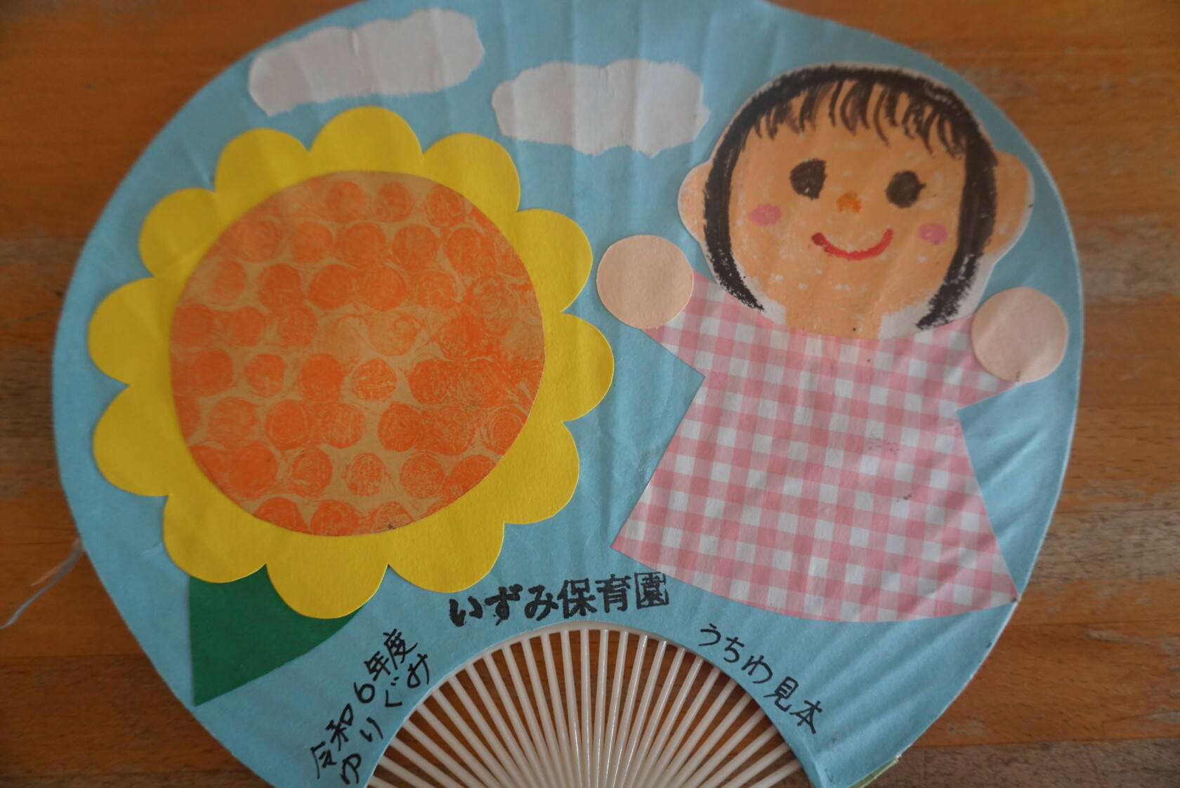 うちわ製作持ち帰り(ゆり) 公開済み: 2024年7月31日更新: 2024年7月31日 今日はうちわの持ち帰りです✨ クラゲの足はスズランテープを子ども達がゆっくり丁寧にちぎりました。 また、ひまわりの種の部分はプチプチで模様をつけるなど子ども達も楽しんで製作をしました🎵 是非、お家でも飾ったり使って下さいね😊