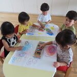 今日は秋の窓飾りのとんぼをクレヨンを使って作りました。 描いたあと「もっと書きた~い!」と言う子ども達からの こえを聞き、みんなで大きな紙に絵を描いて楽しみまし […]