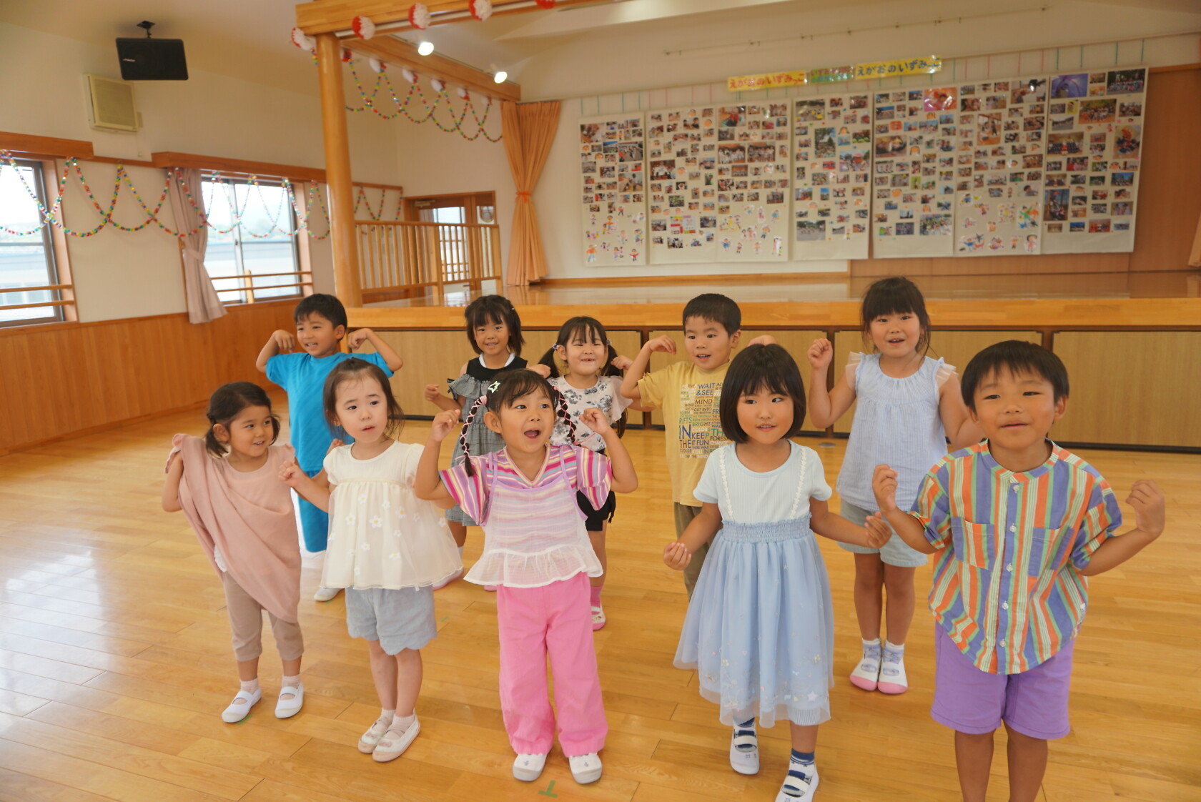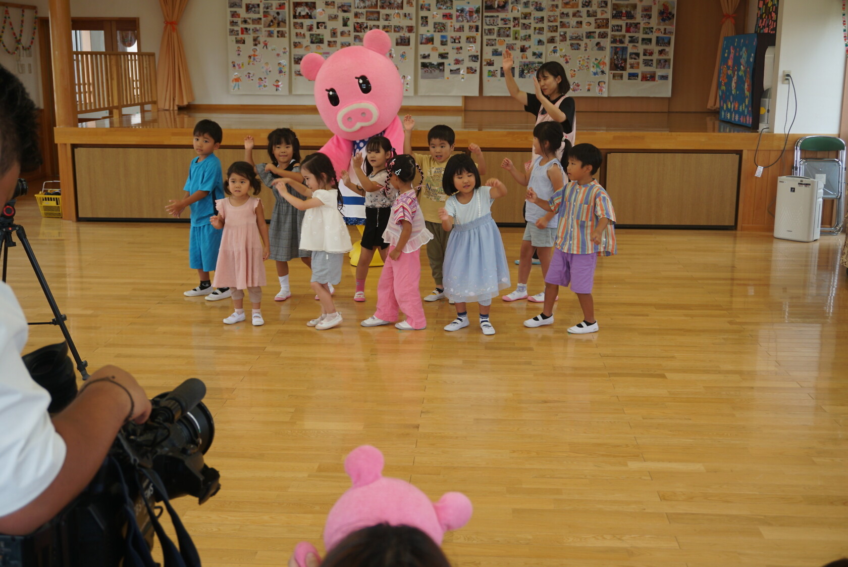 TBS「あし天ダンス」の撮影がはいりました!! 公開済み: 2024年8月7日更新: 2024年8月7日 4月頃子ども達がやりたいと申し込んだ「あし天ダンス」、選考の結果出られることに!! 今日、「あし天ダンス」の撮影がはいりました😁 準備のあいだはニコニコだったひまわり、ゆり組さん、ホールで撮影がはじまると緊張した顔に…。 3班に分かれて順番に撮りました!! 終わった後はブーナちゃんと触れあったり集合写真をとったりと楽しい時間を過ごせました! 放映日は決まり次第連絡します!