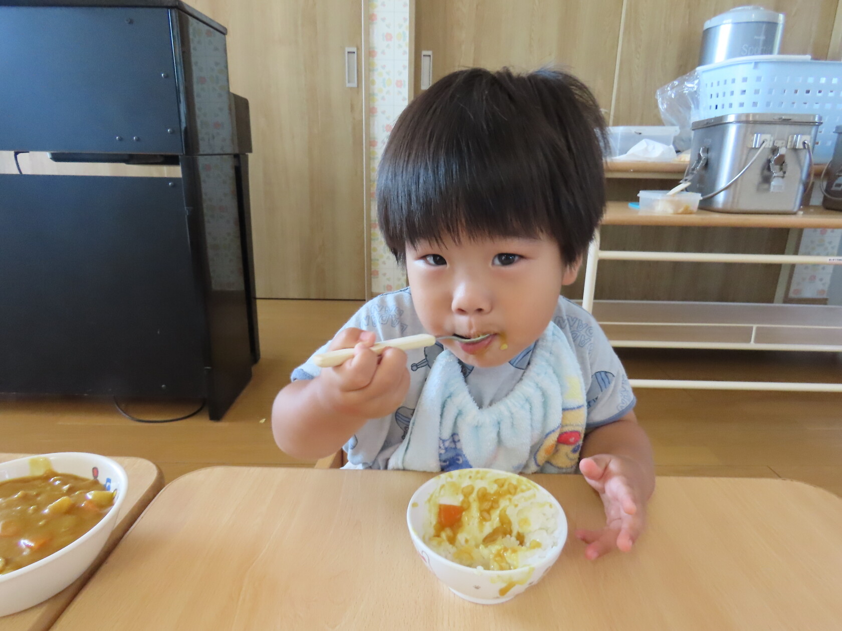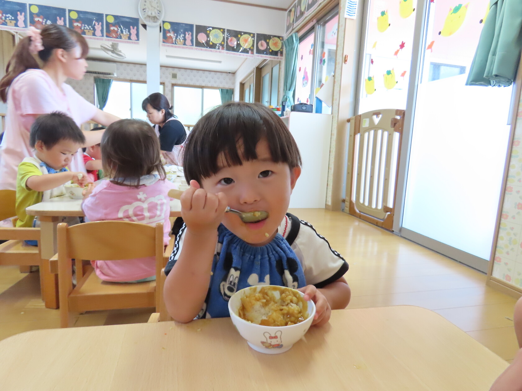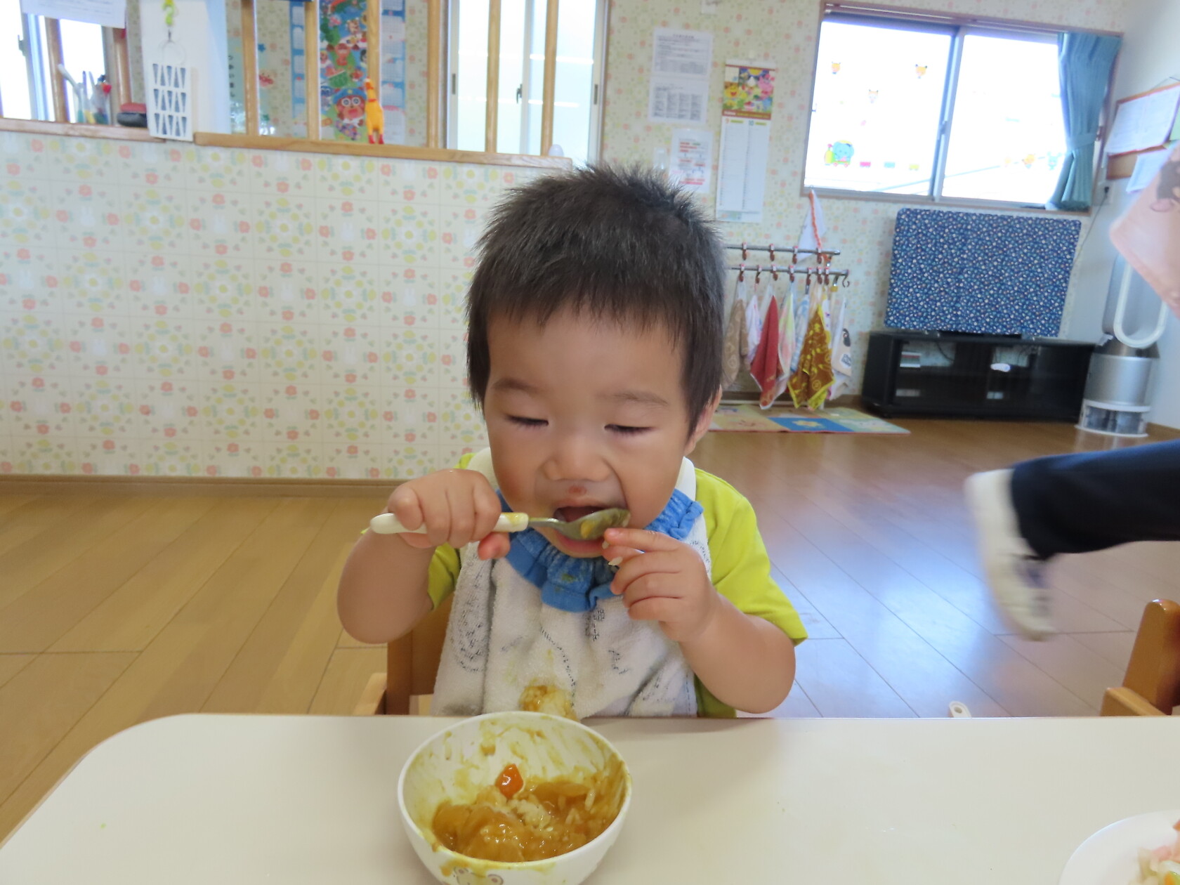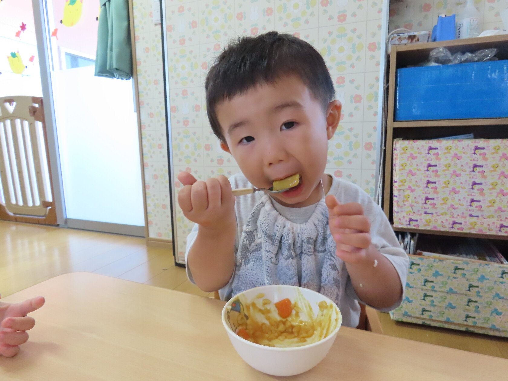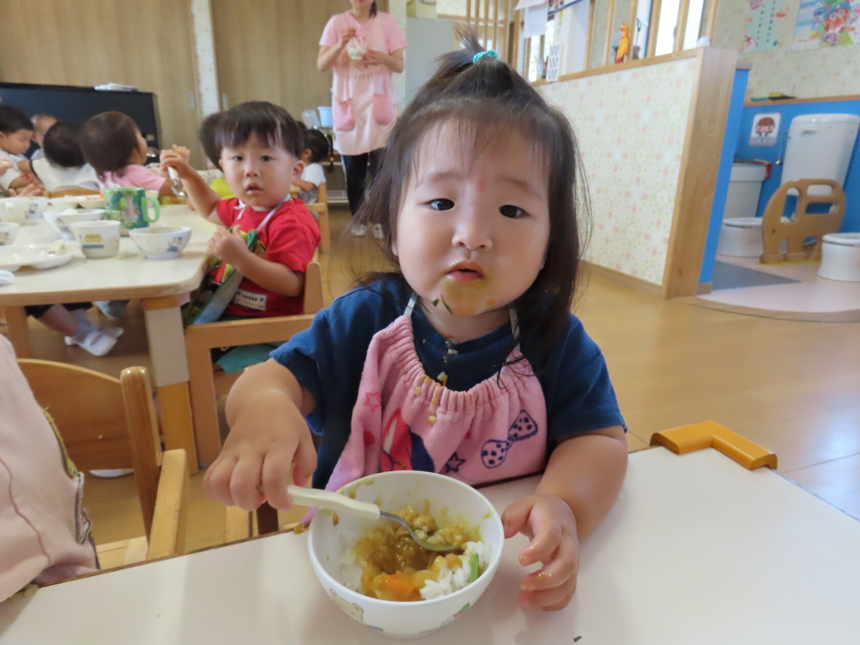 今日のできごと(小規模ちゅうりっぷ、さくら) 公開済み: 2024年9月11日更新: 2024年9月11日 今日の給食のメニューは、みんな大好き、カレーライス!! 「いただきます!」と元気よく挨拶をすると、みんな勢いよく食べ始めました😆 子ども達を見ると、口の周りはカレーだらけ・・・💦 ナプキンが汚れてしまいましたが、みんな自分で頑張って食べたので、許してくださいね👏😋