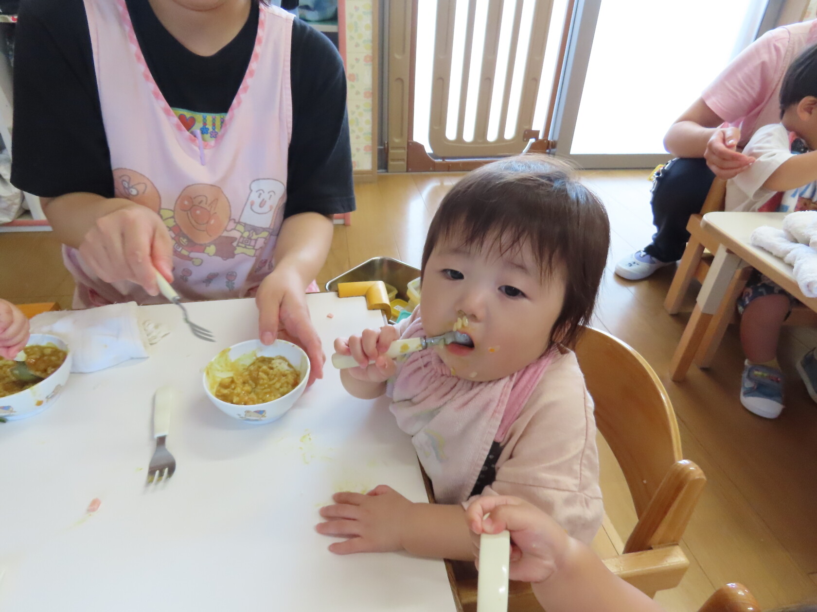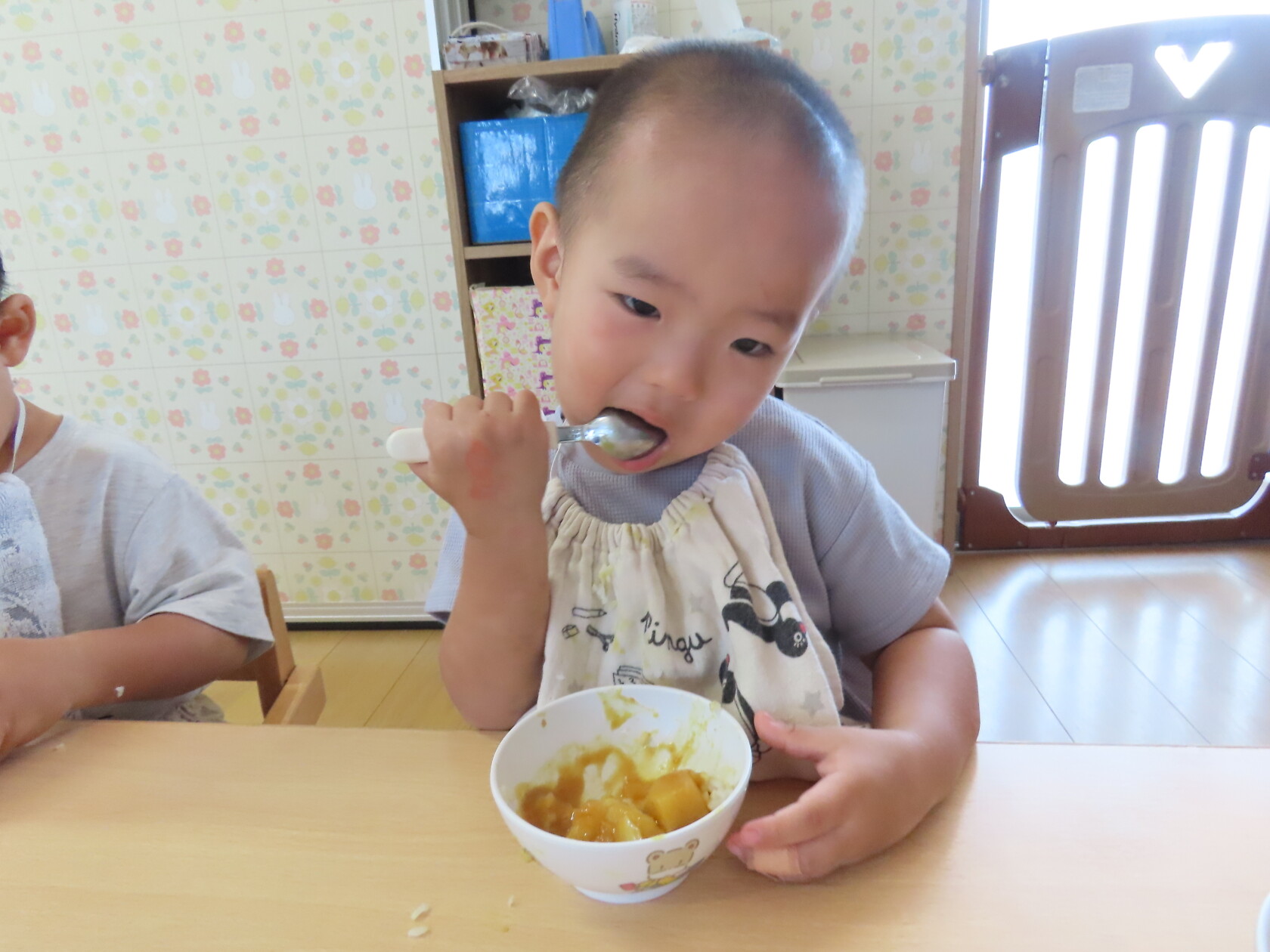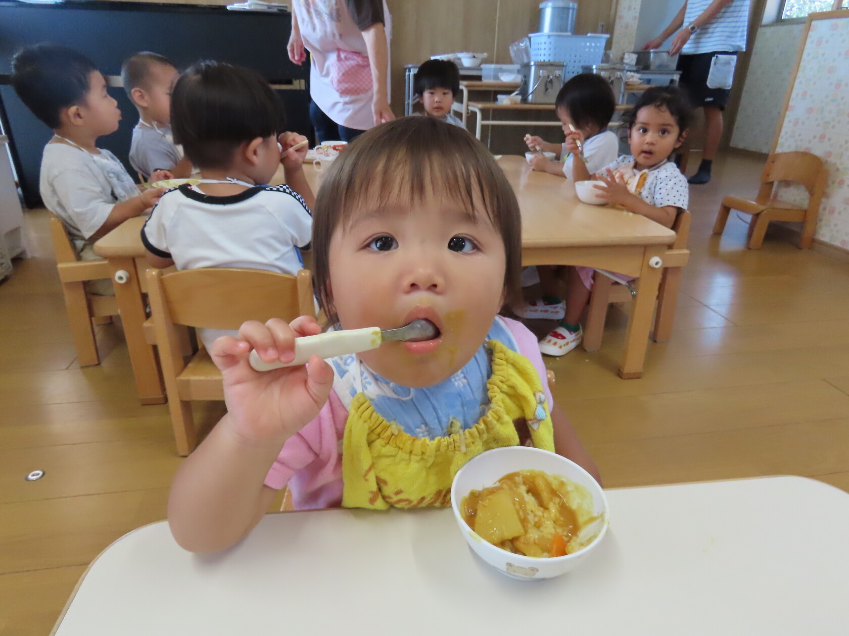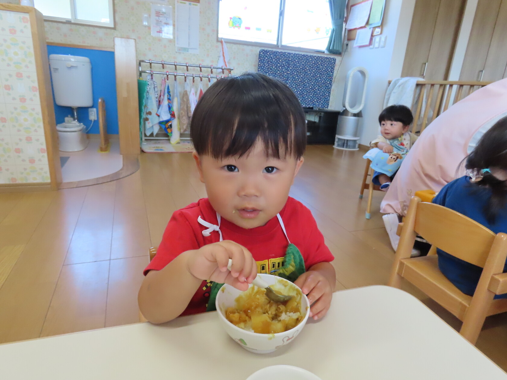 今日のできごと(小規模ちゅうりっぷ、さくら) 公開済み: 2024年9月11日更新: 2024年9月11日 今日の給食のメニューは、みんな大好き、カレーライス!! 「いただきます!」と元気よく挨拶をすると、みんな勢いよく食べ始めました😆 子ども達を見ると、口の周りはカレーだらけ・・・💦 ナプキンが汚れてしまいましたが、みんな自分で頑張って食べたので、許してくださいね👏😋