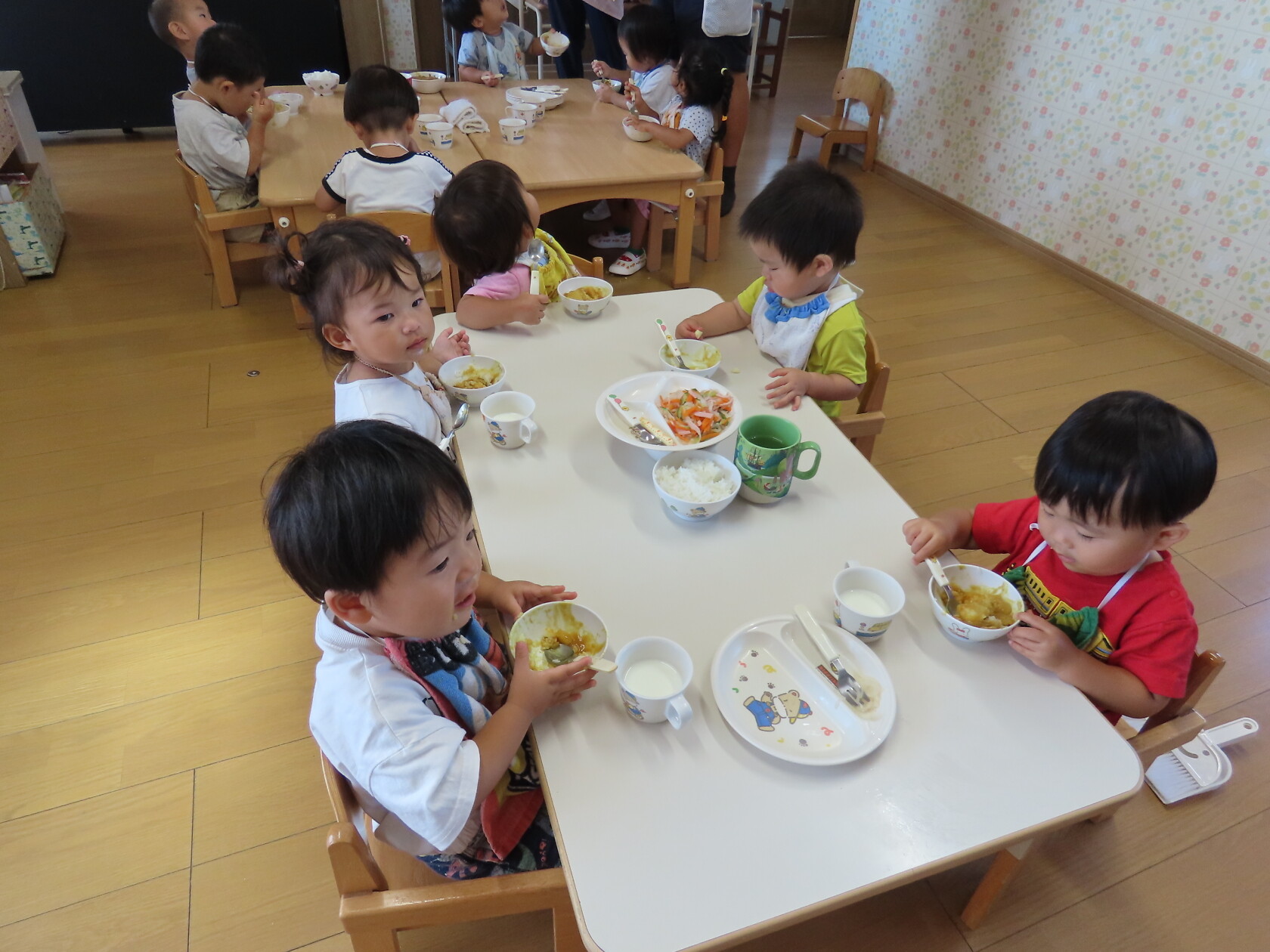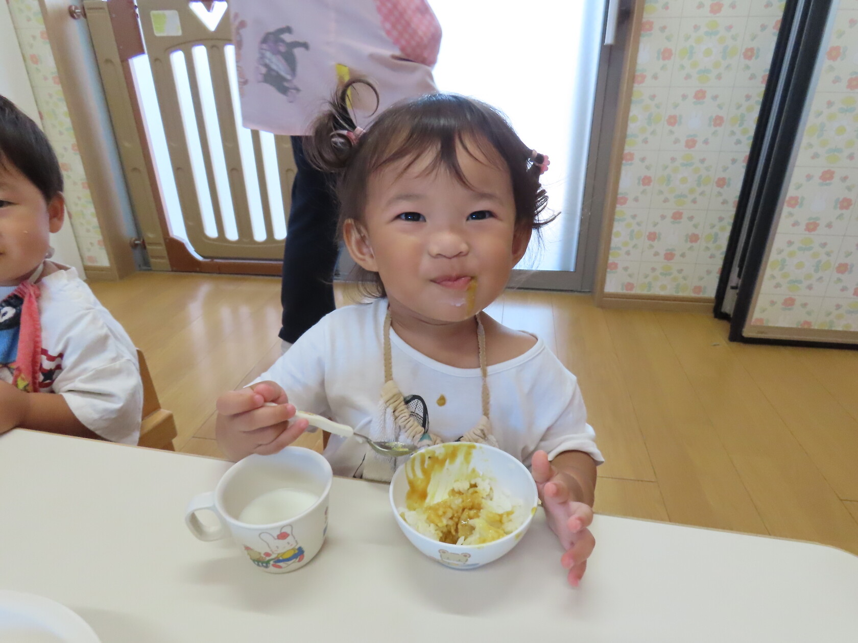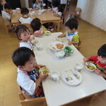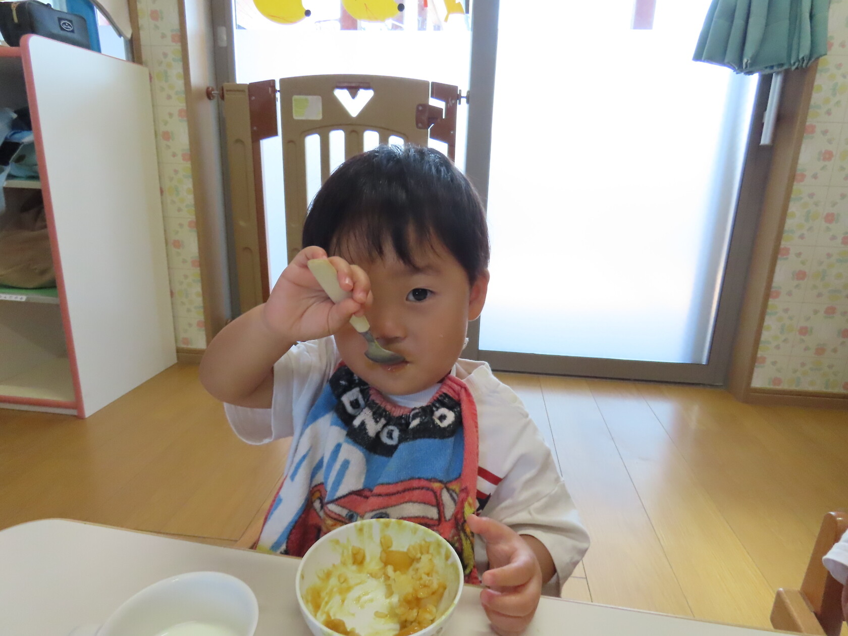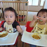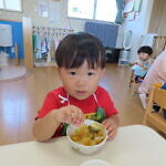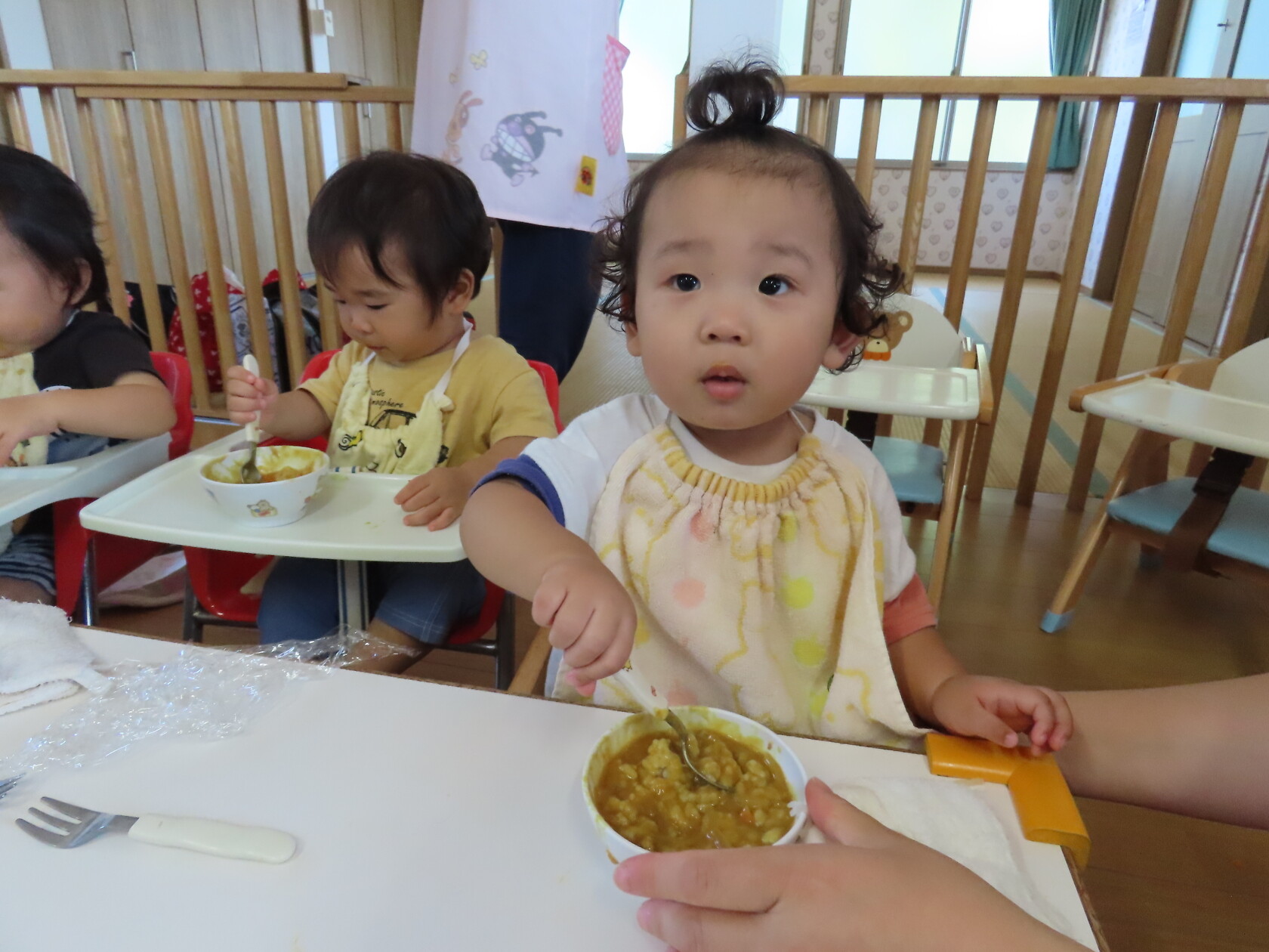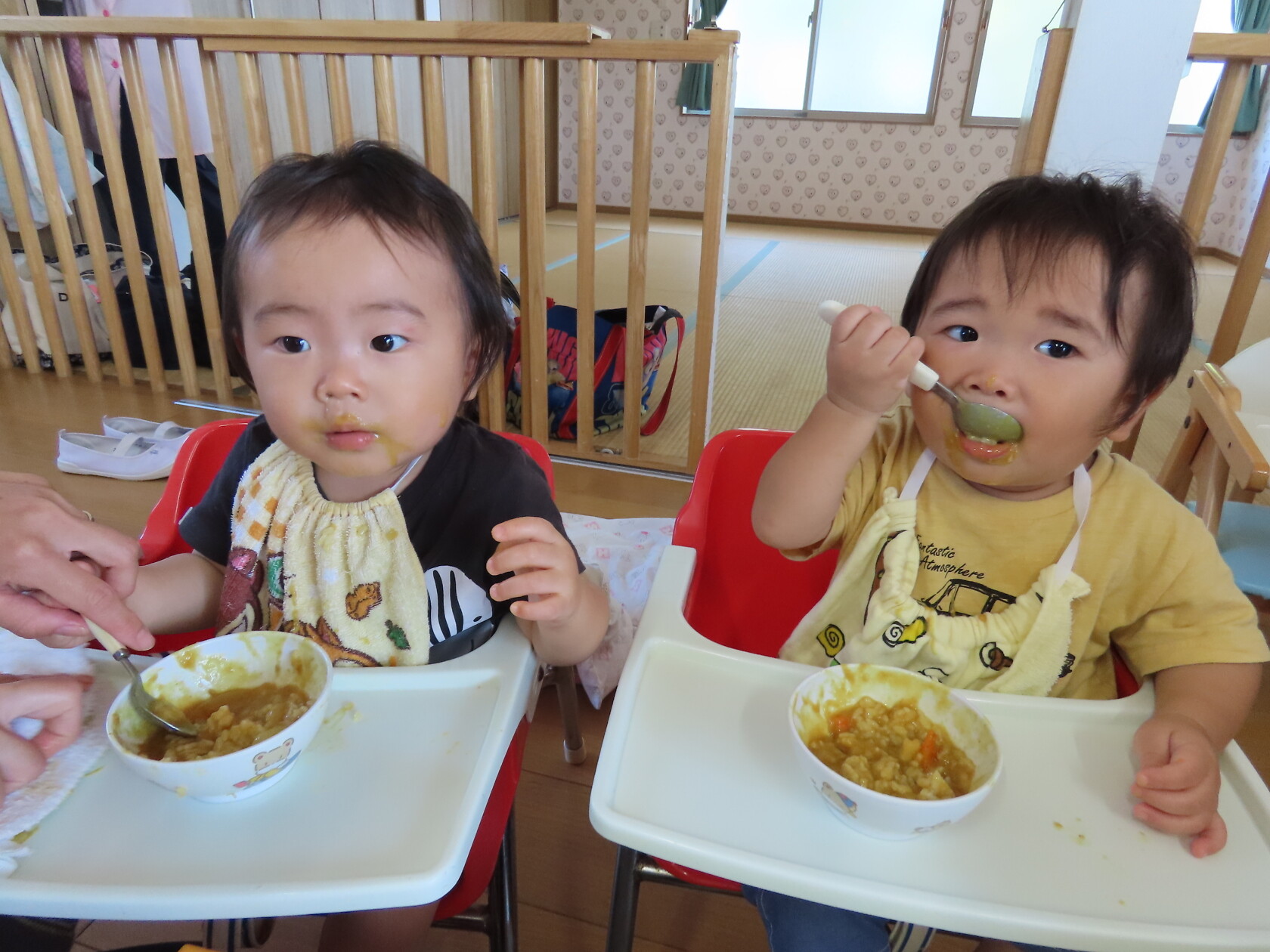 今日のできごと(小規模ちゅうりっぷ、さくら) 公開済み: 2024年9月11日更新: 2024年9月11日 今日の給食のメニューは、みんな大好き、カレーライス!! 「いただきます!」と元気よく挨拶をすると、みんな勢いよく食べ始めました😆 子ども達を見ると、口の周りはカレーだらけ・・・💦 ナプキンが汚れてしまいましたが、みんな自分で頑張って食べたので、許してくださいね👏😋
