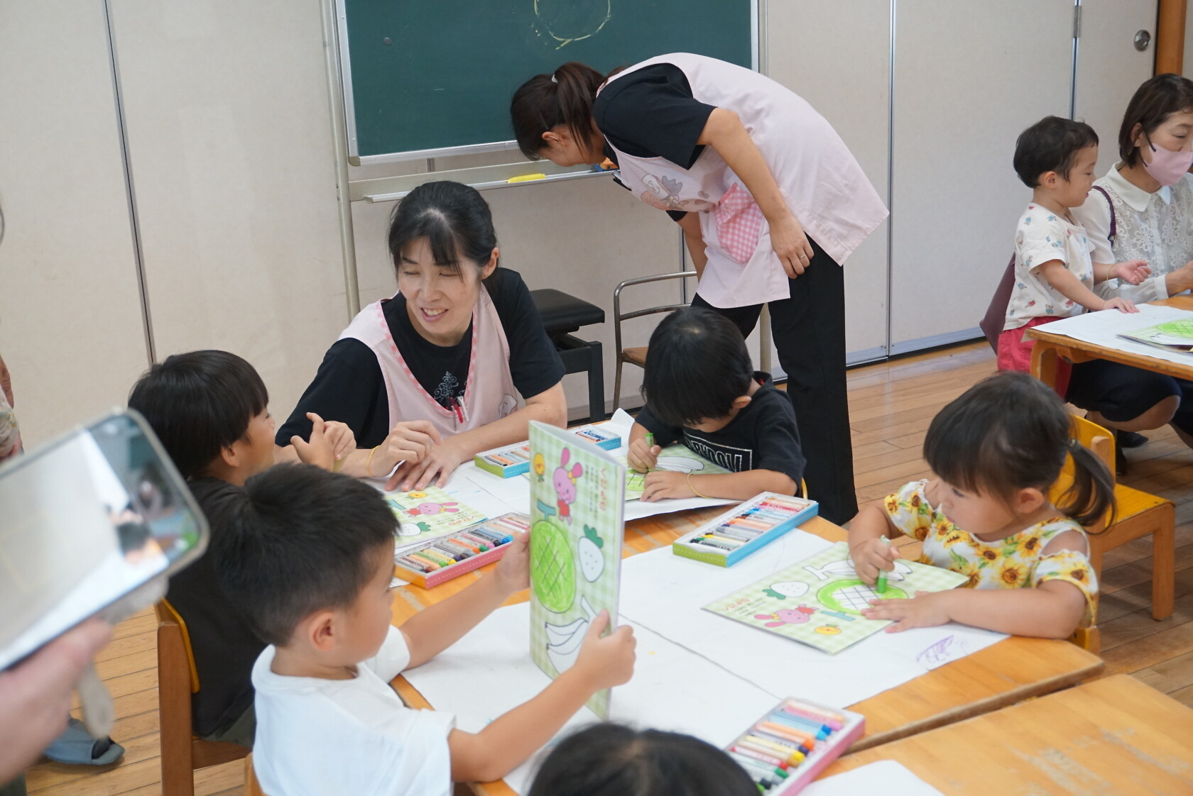 お歌の発表や、クレヨンあそびの様子をみてもらい、いつも以上に張り切っていたすみれぐみさん😊