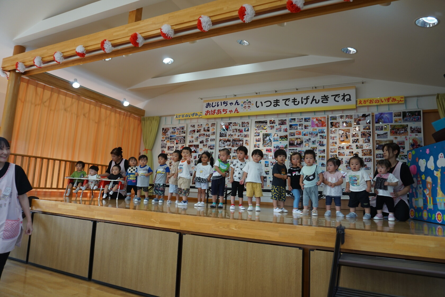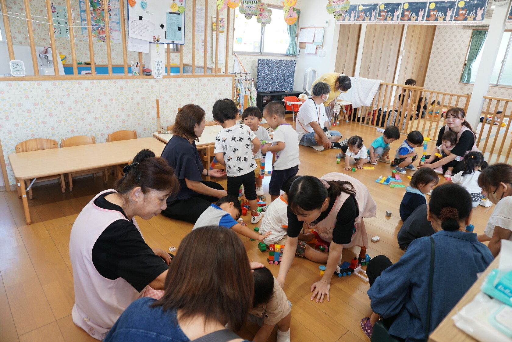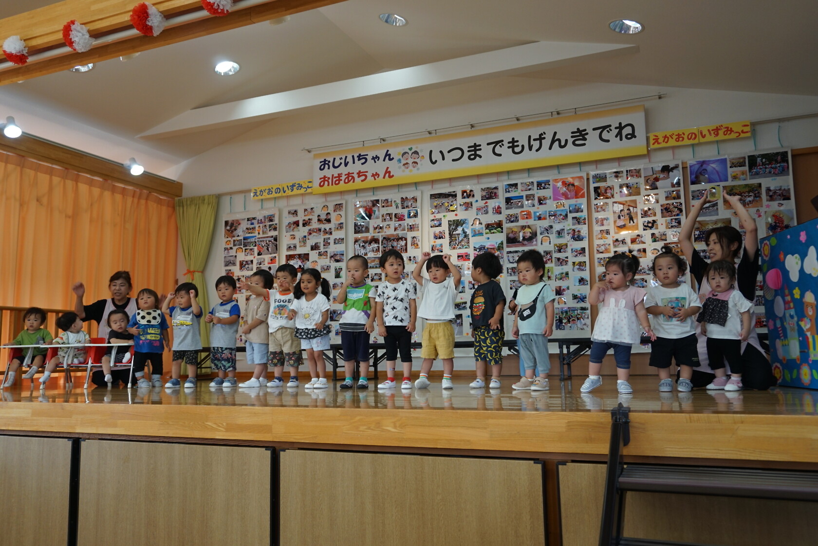 祖父母参観(小規模ちゅうりっぷ、小規模さくら) 公開済み: 2024年9月13日更新: 2024年9月13日 今日は、お忙しい中、祖父母参観にお越し頂き、ありがとうございました💕 歌の発表では「ひまわり」「コブタヌキツネコ」を歌いました🎵 沢山のお客さんの前でしたが、泣くことはなく楽しそうに歌い、上手に発表できました☺ お部屋では朝の会の様子から見て頂き、いつもと違う雰囲気に緊張をしてしまう子もいましたが、挨拶はや歌、出席調べ等、ご家庭では見られない姿を見て頂けたことと思います💫 その後はおじいちゃんやおばあちゃんと一緒にブロックで遊び、楽しく過ごすことが出来ました💨