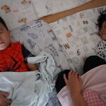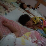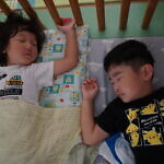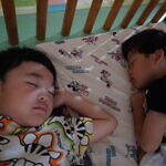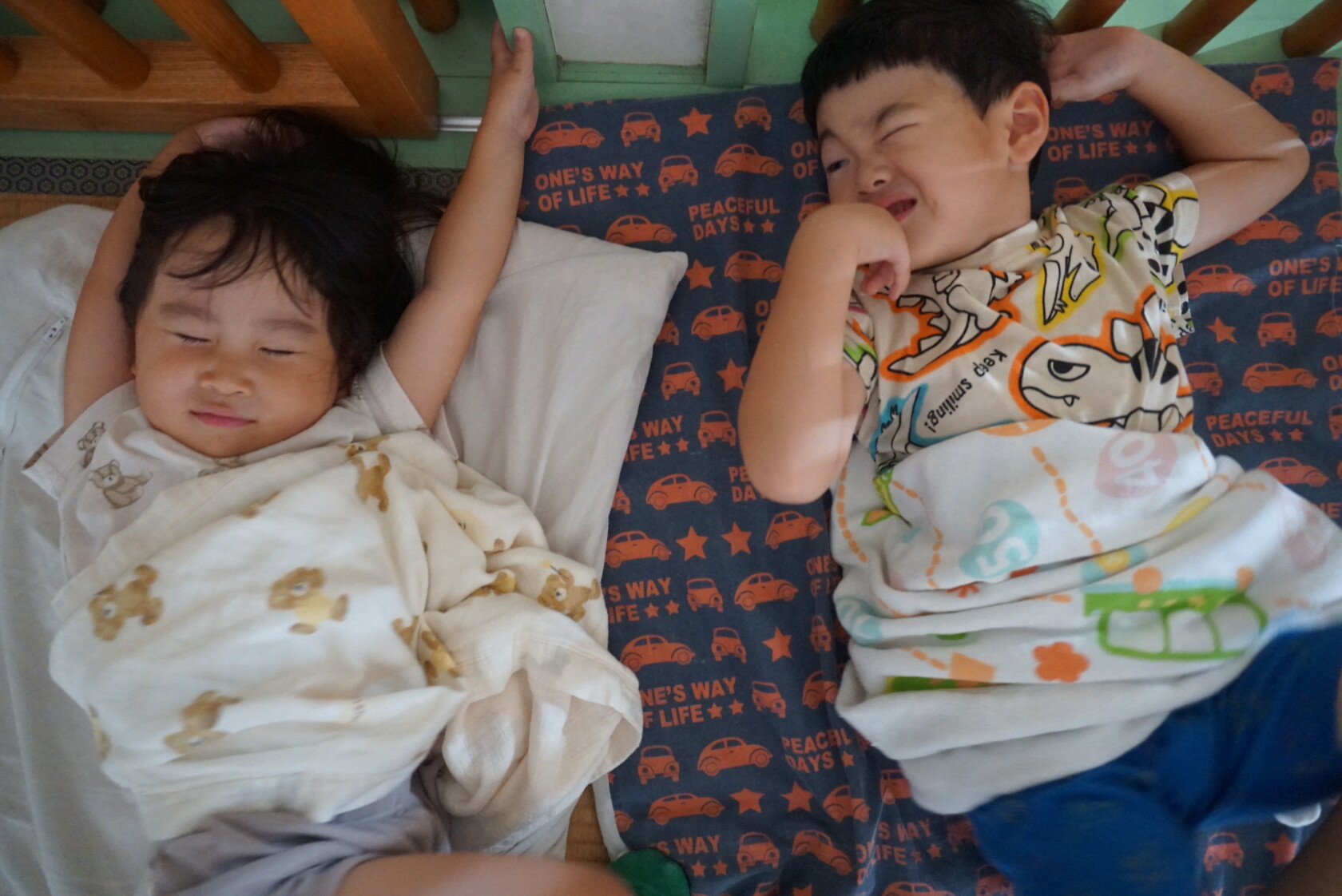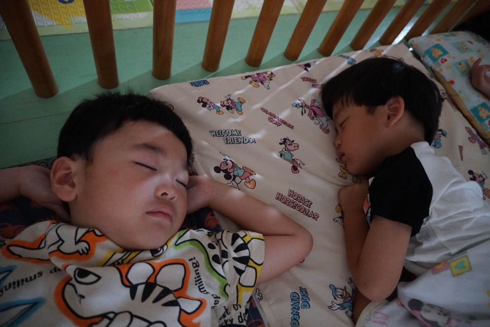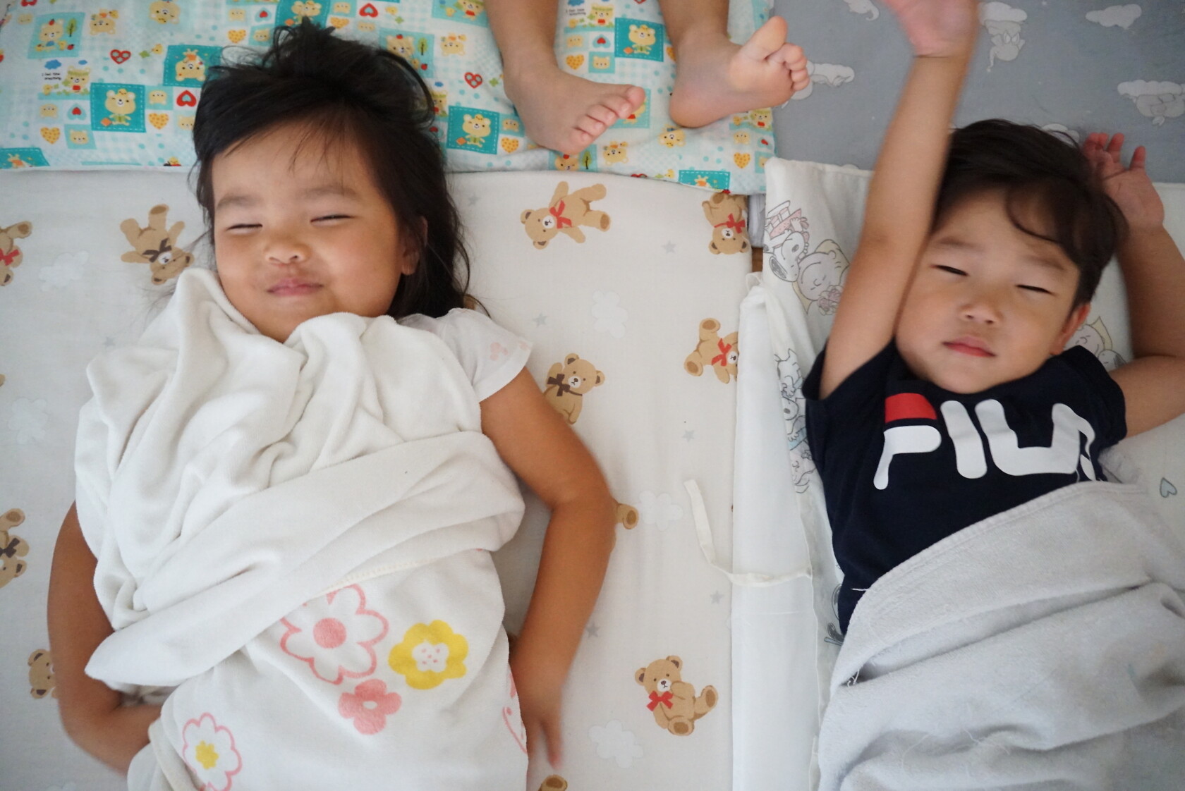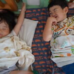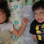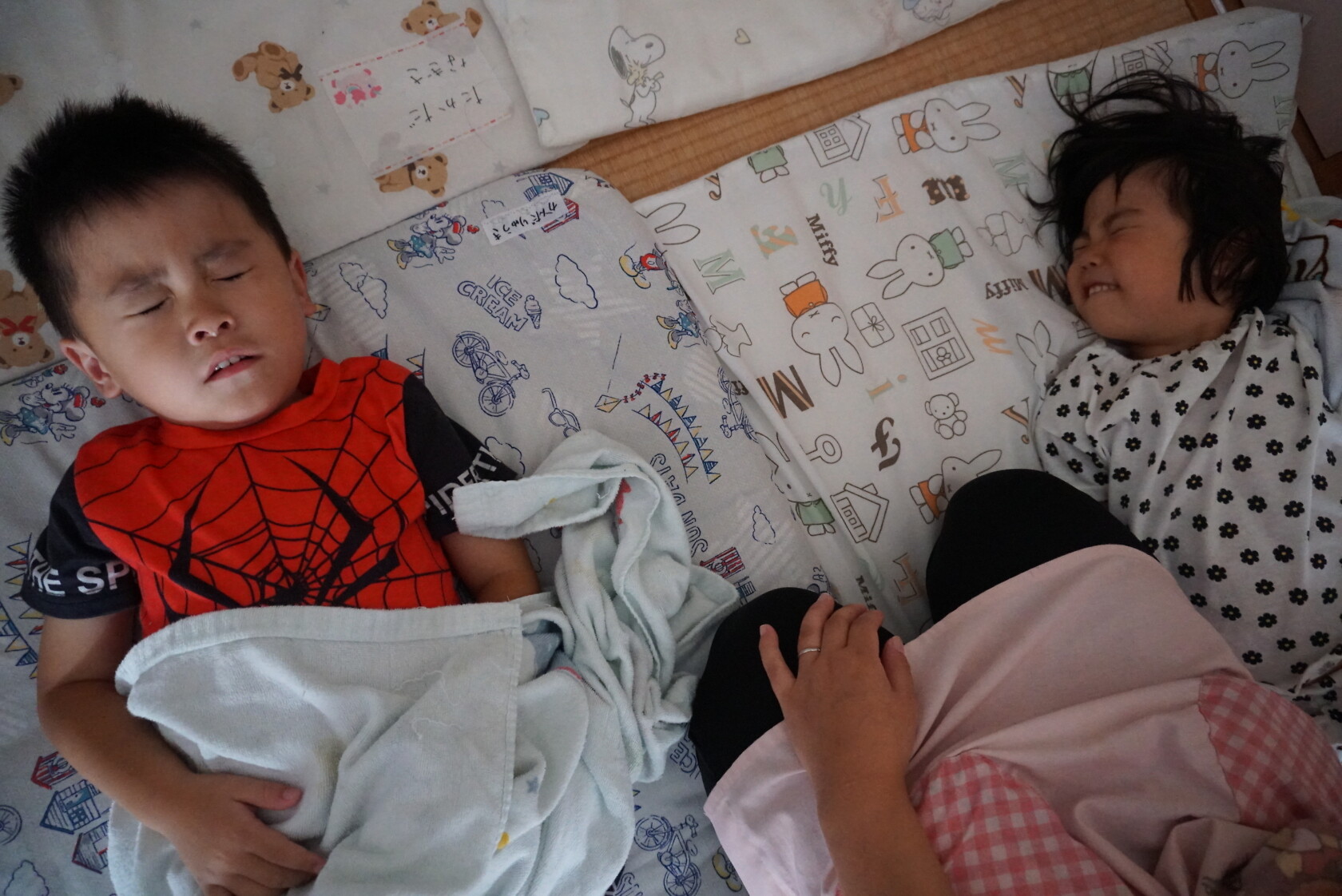 布団に入った子ども達に、「寝てるかな?」とカメラを向けると「先生寝てるよ!!」と目をつぶり用意してくる子も😂